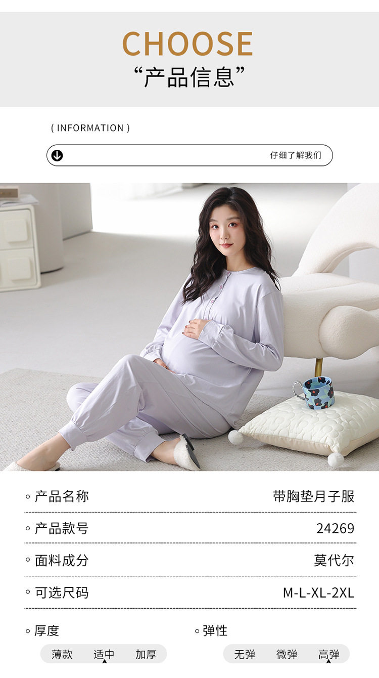 Spring and Autumn New Moon Clothing Women's Belt Chest Pad Pajamas Modal Pregnant Women Postpartum Lactation Adjustable Belt suit