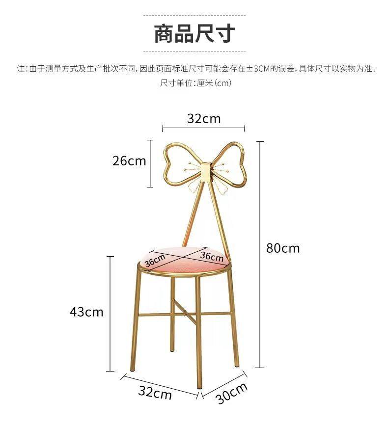 Dressing Stool Backrest Chair Butterfly Chair Makeup Chair Nail Art Shop Light Luxury Internet Trendy Makeup Stool Princess Style Girls Heart Ins