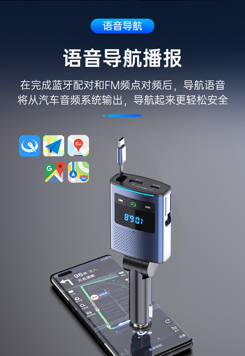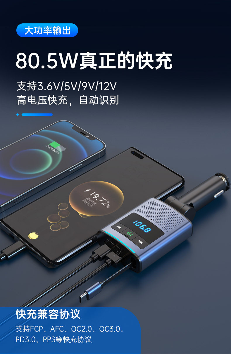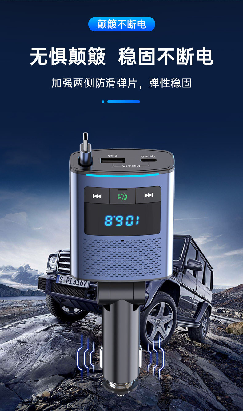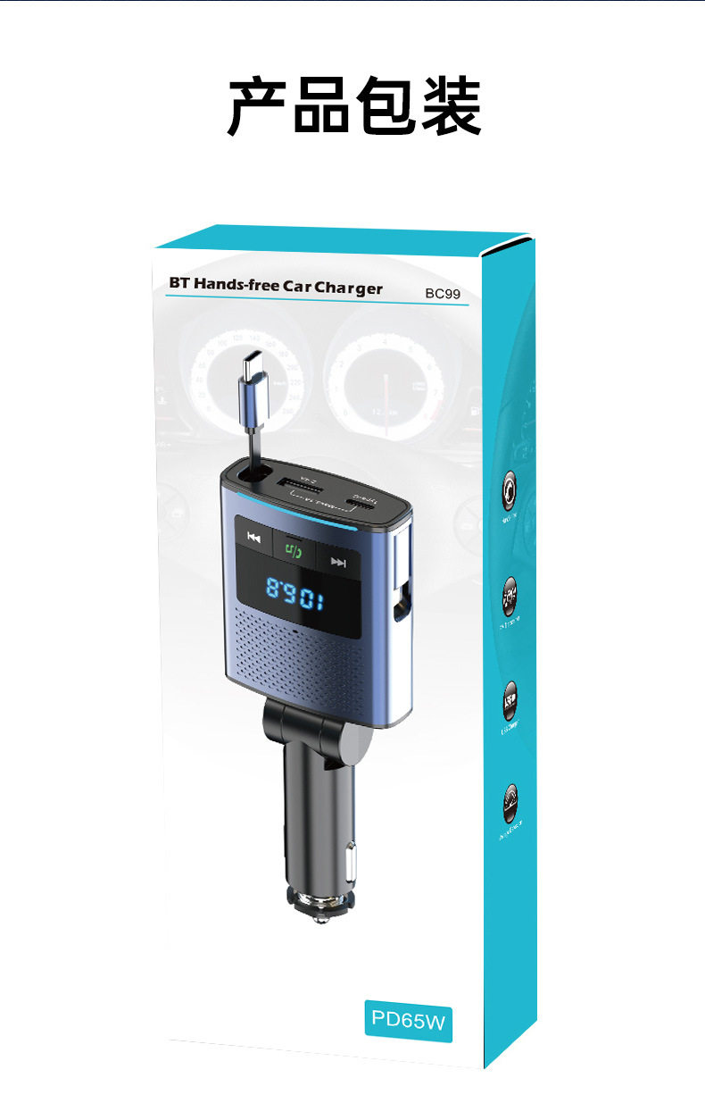 Car Bluetooth retractable line car charger PD65W fast charge rechargeable notebook FM transmitter BC99 car charger