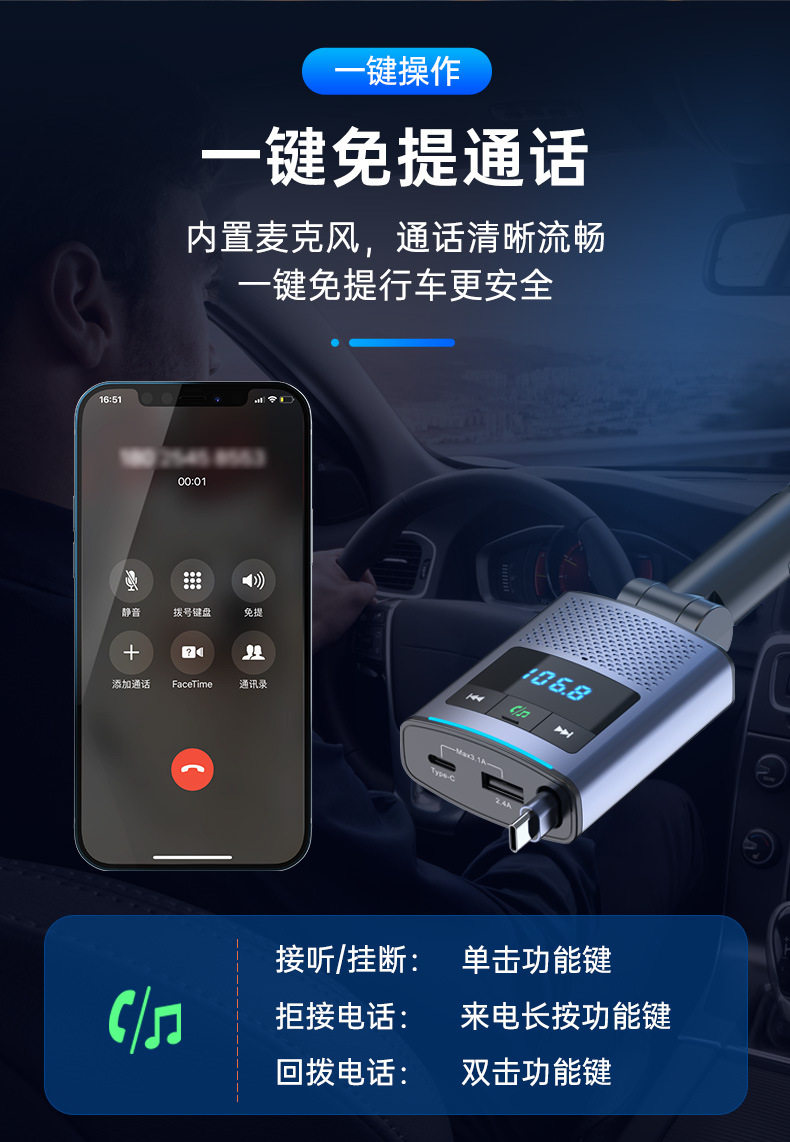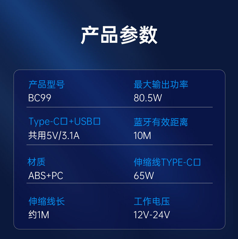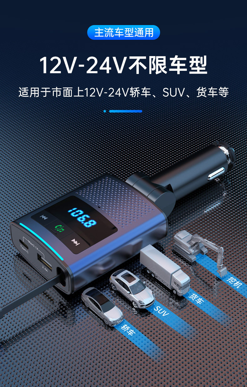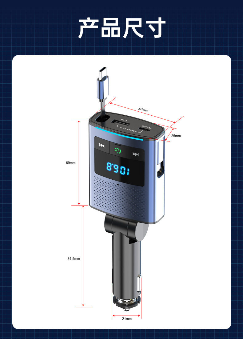Car Bluetooth retractable line car charger PD65W fast charge rechargeable notebook FM transmitter BC99 car charger