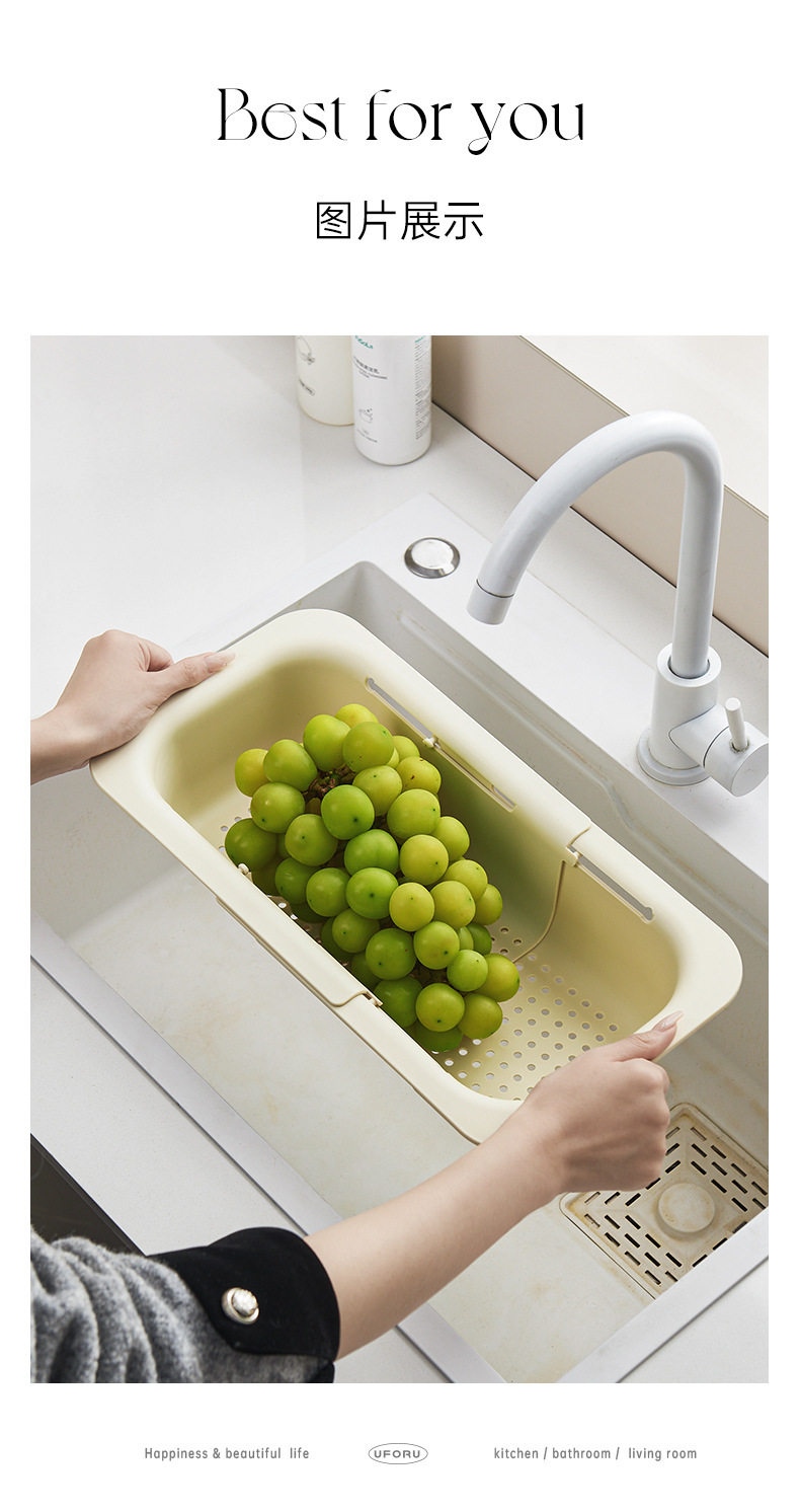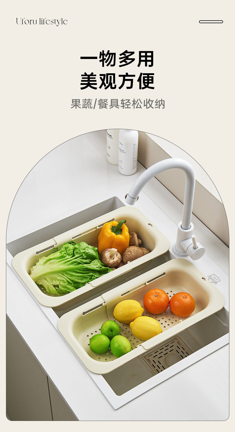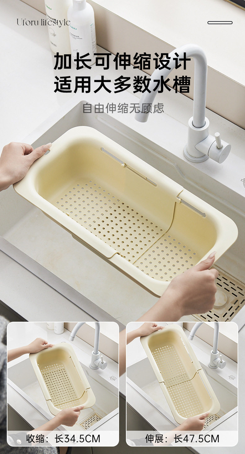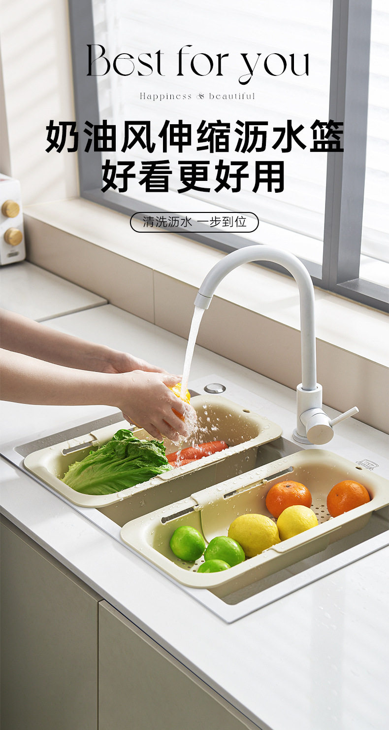 Kitchen Sink Drain Basket, Extendable Vegetable Washing Basin, Multifunctional Household Filter Drain Rack, Double-Layer Large Capacity, Cute Design