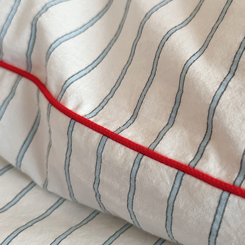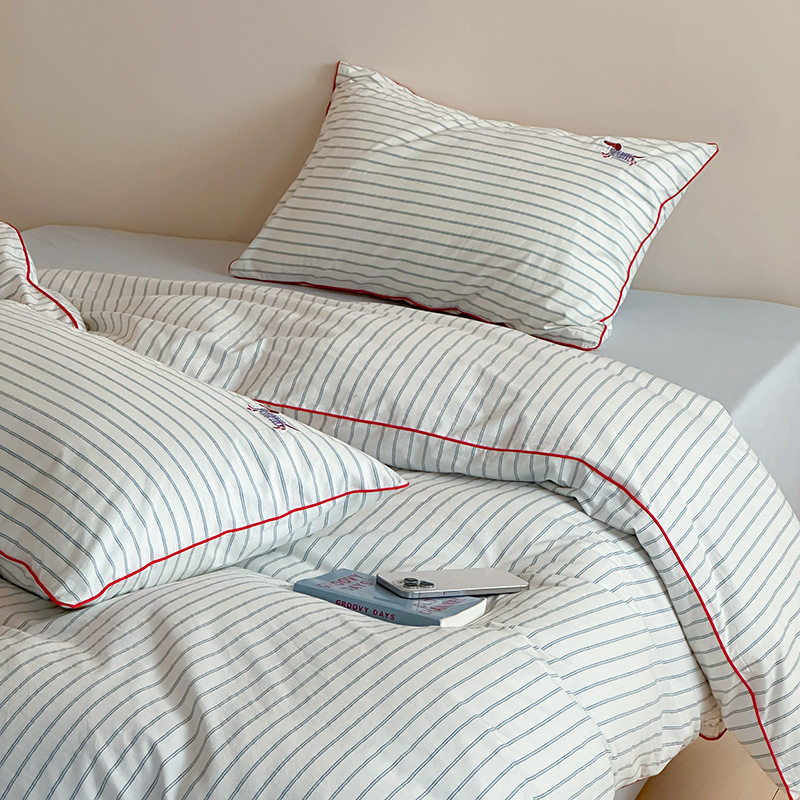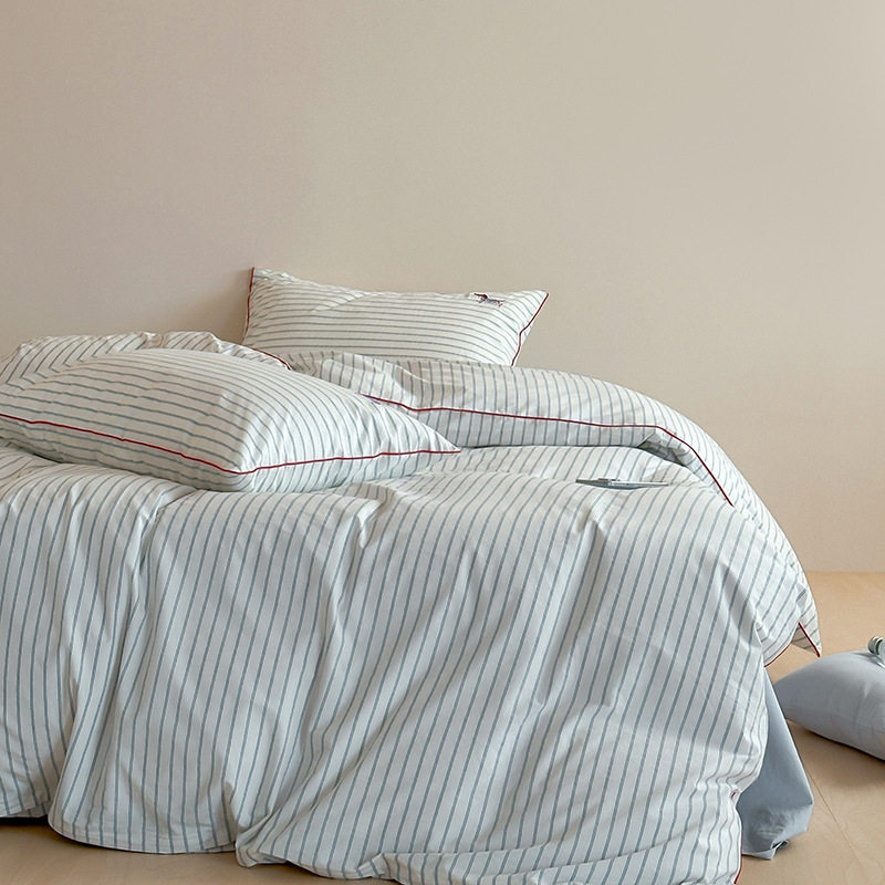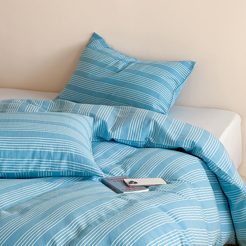 2025 Spring and Summer Blogger Bay Blue and White Striped Cotton Washed Cotton Four-piece Set Cotton Small Fresh Three-piece Set Art