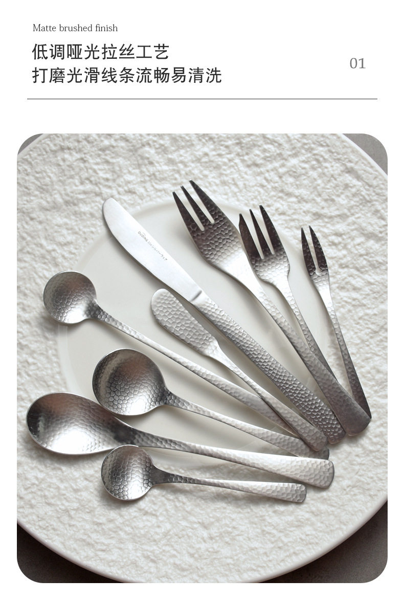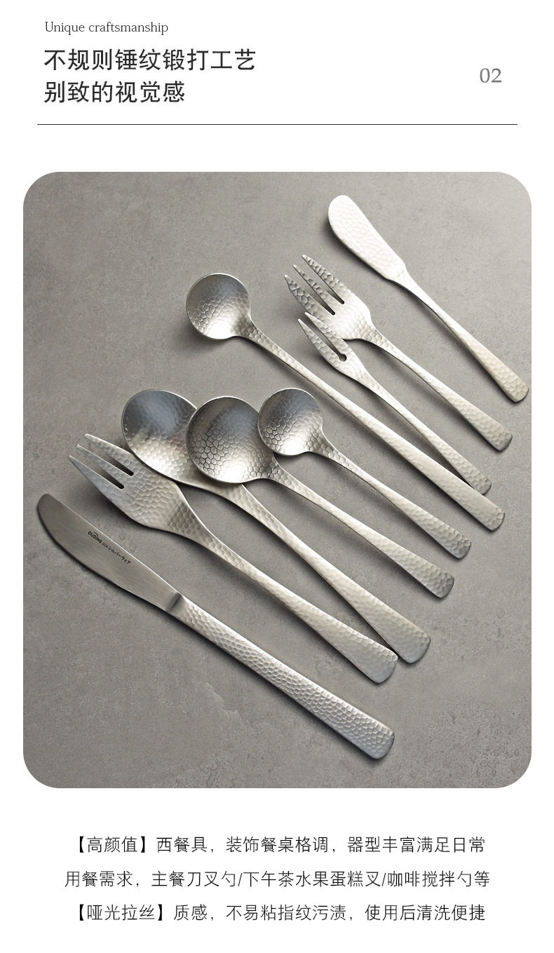 Japanese-style Hammer Pattern Fog Noodles Western-style Tableware Knife and Fork suit Knife and Fork Spoon Snwere Tea Spoon Steak Knife and Fork Spoon Spoon Spoon
