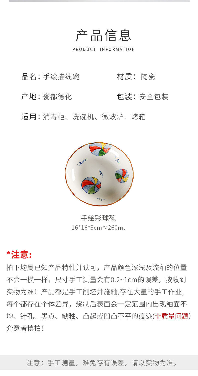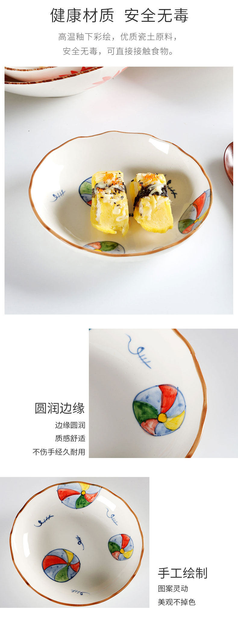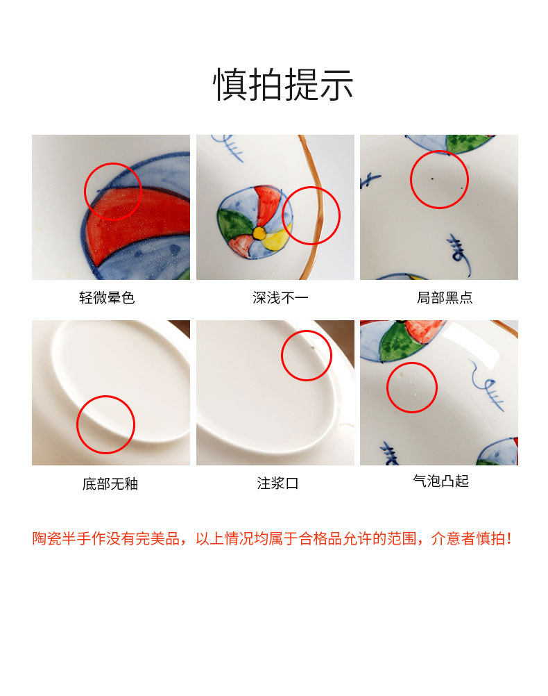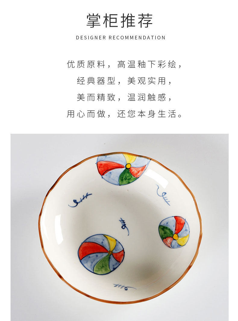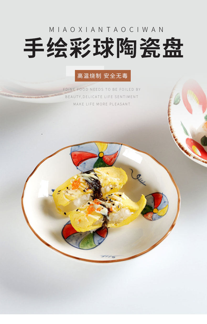 Jiutian Burned Ceramic Plate High Color Value Hand-painted Festive Colorful Ball Snack Dish Underglaze Colorful Front Dish Japanese Tableware