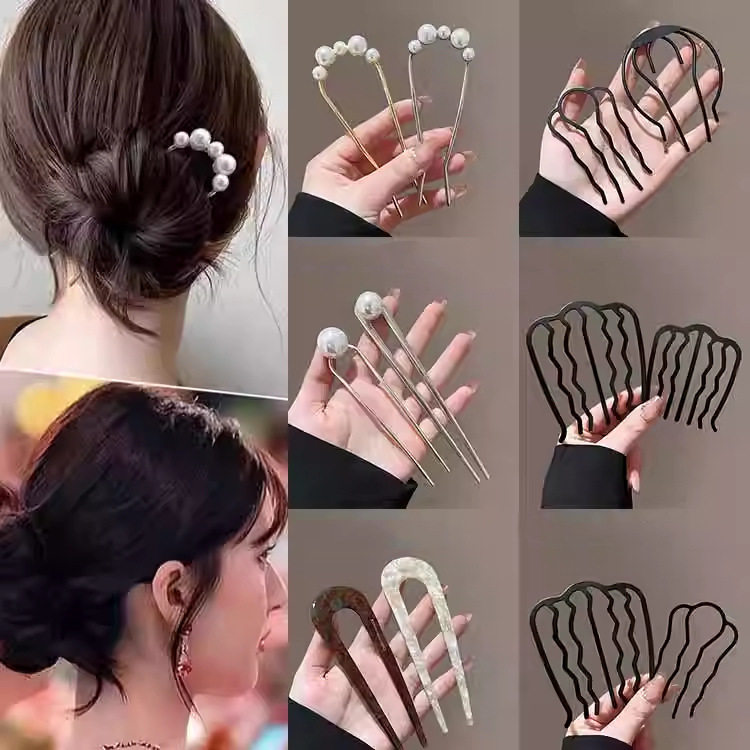 Lazy Person's Hairpin U-Shaped Hairpin for Women's Ball Head Fixing Artifact, High-End Elegant Comb, Hairpin Headband for the Back of the Head