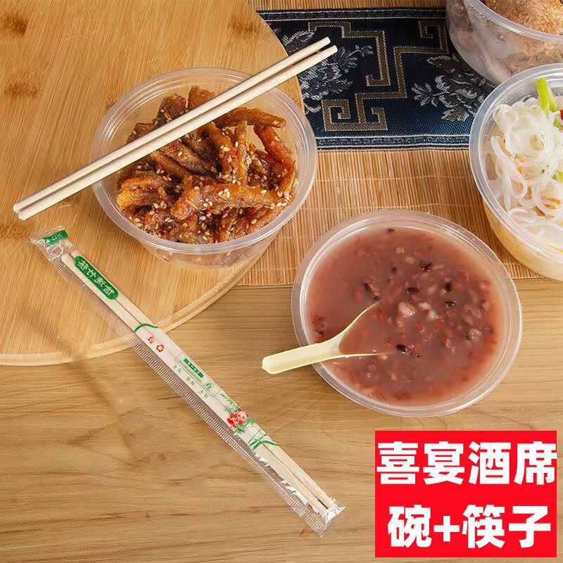 Disposable Bowl and Chopsticks suit Tableware Household Thickened New Year Wedding Dining Table Plastic Rice Bowl with Chopsticks with Lid High Temperature Resistance