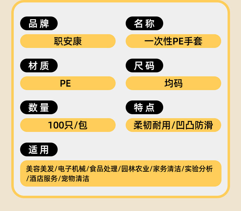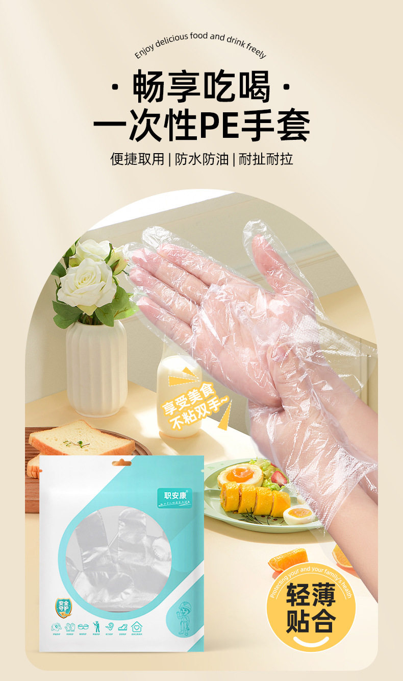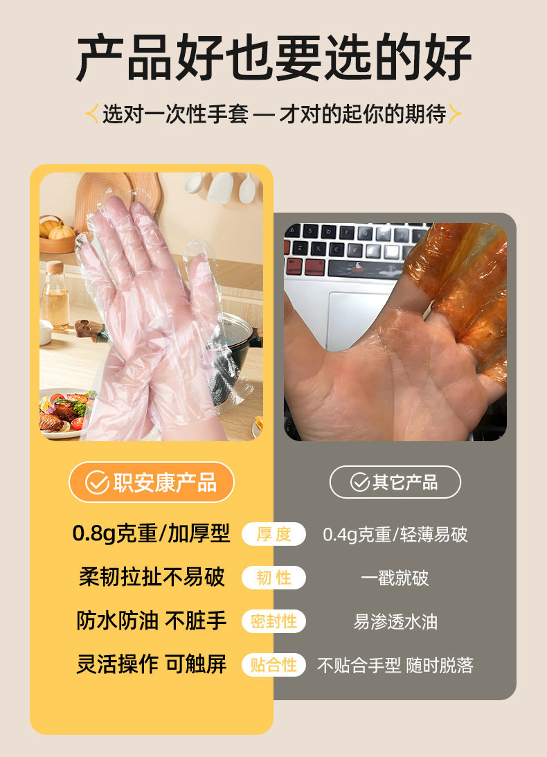 Job Ankang disposable protective PE gloves thickened clean beauty food processing waterproof oil special gloves wholesale