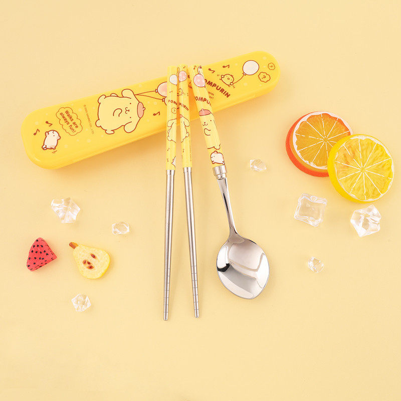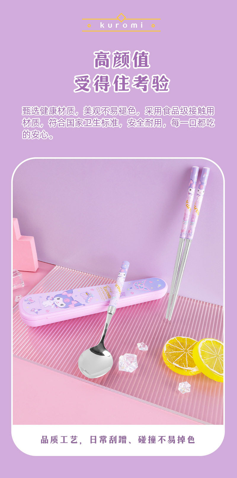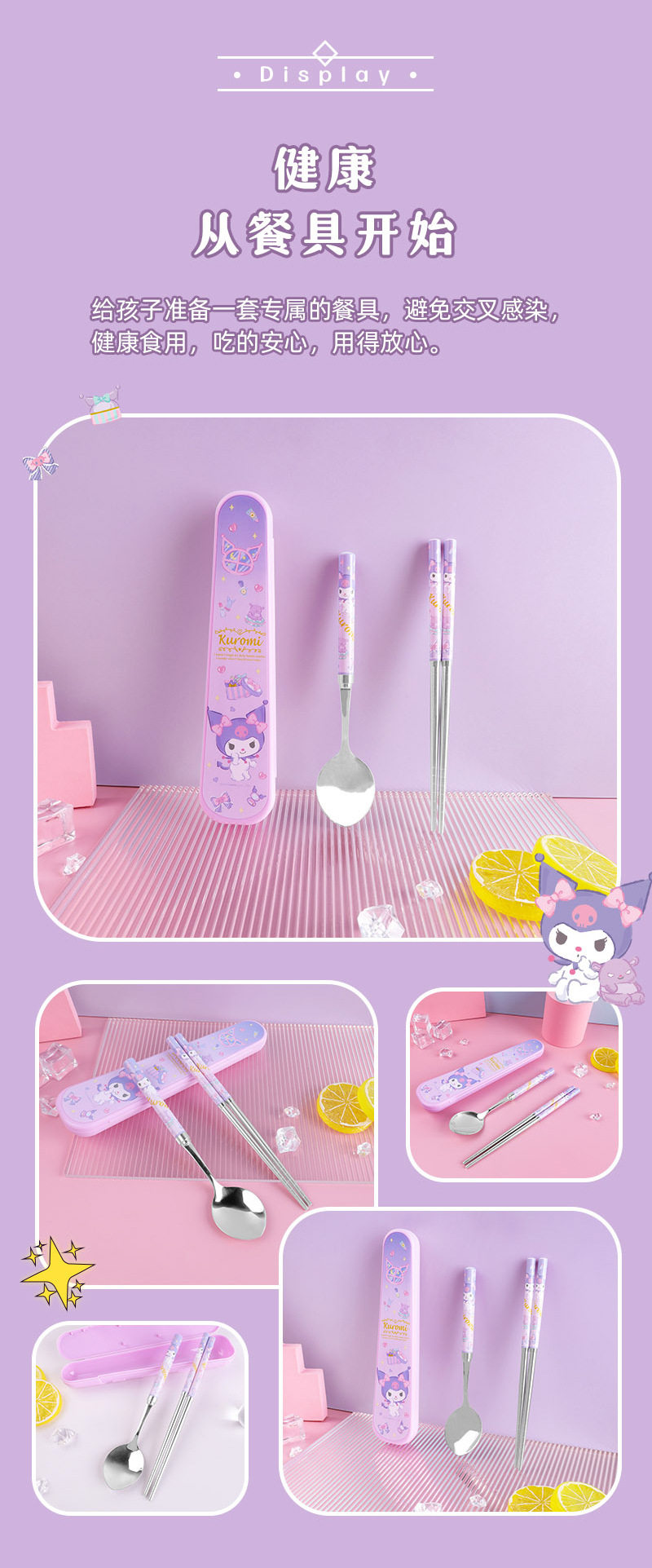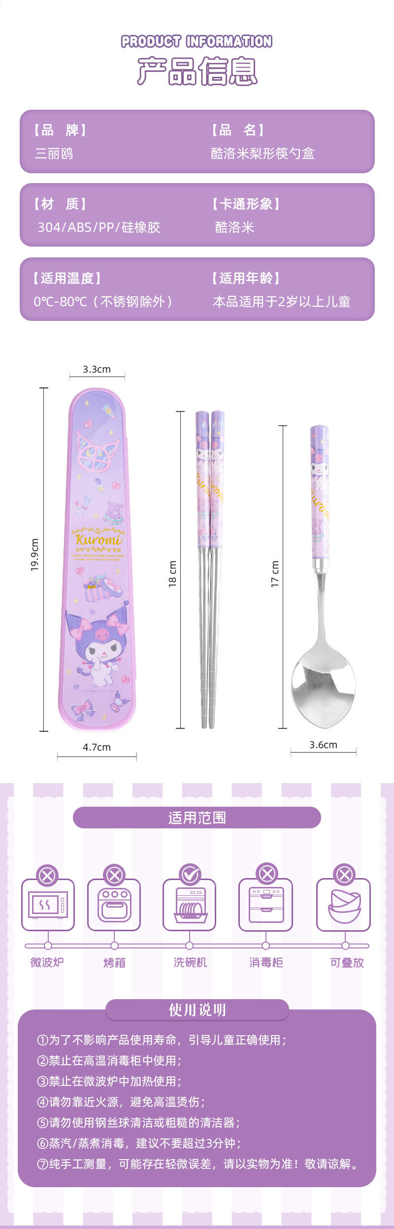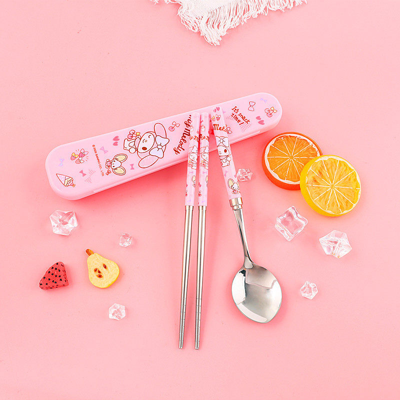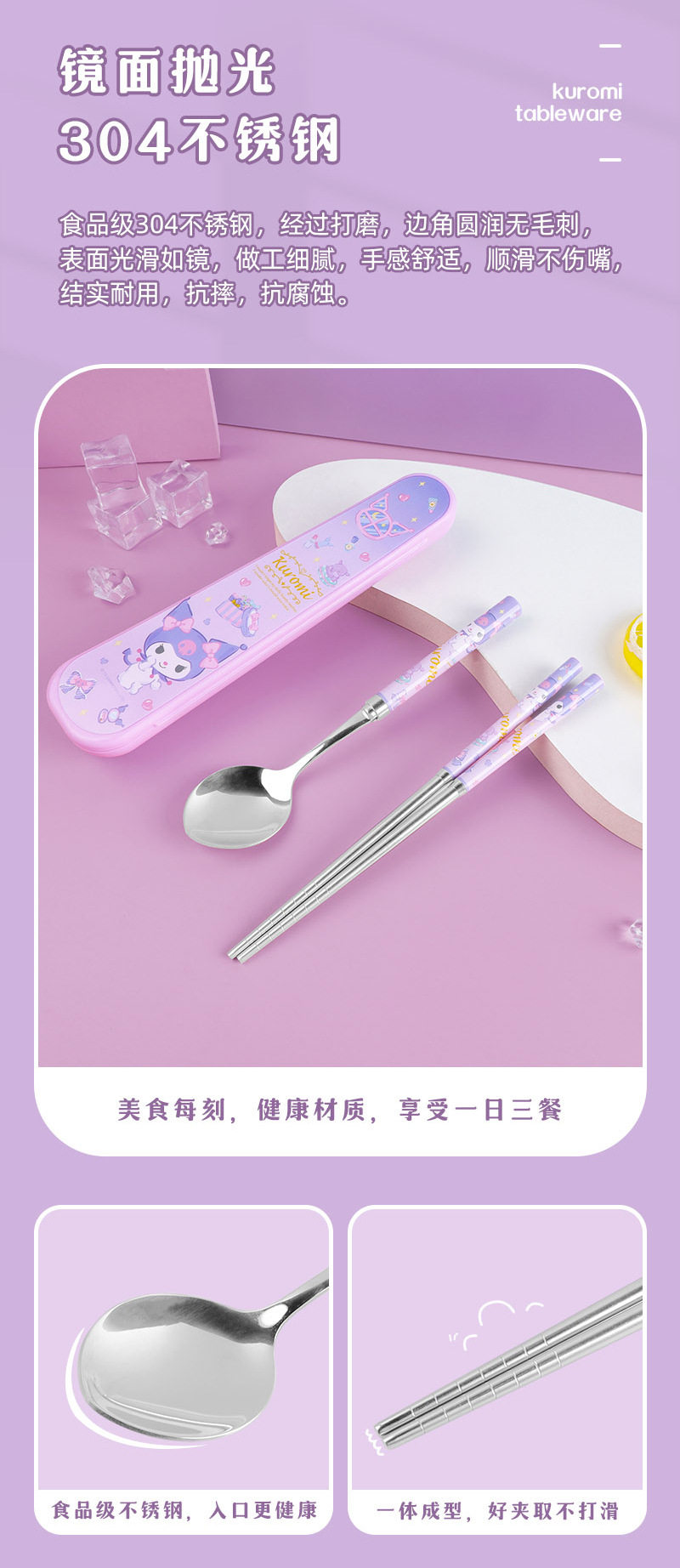 Sanrio Chopsticks Spoon suit Cartoon Storage Box Tableware Children's Primary School Girls School Three-Piece Set for One Person