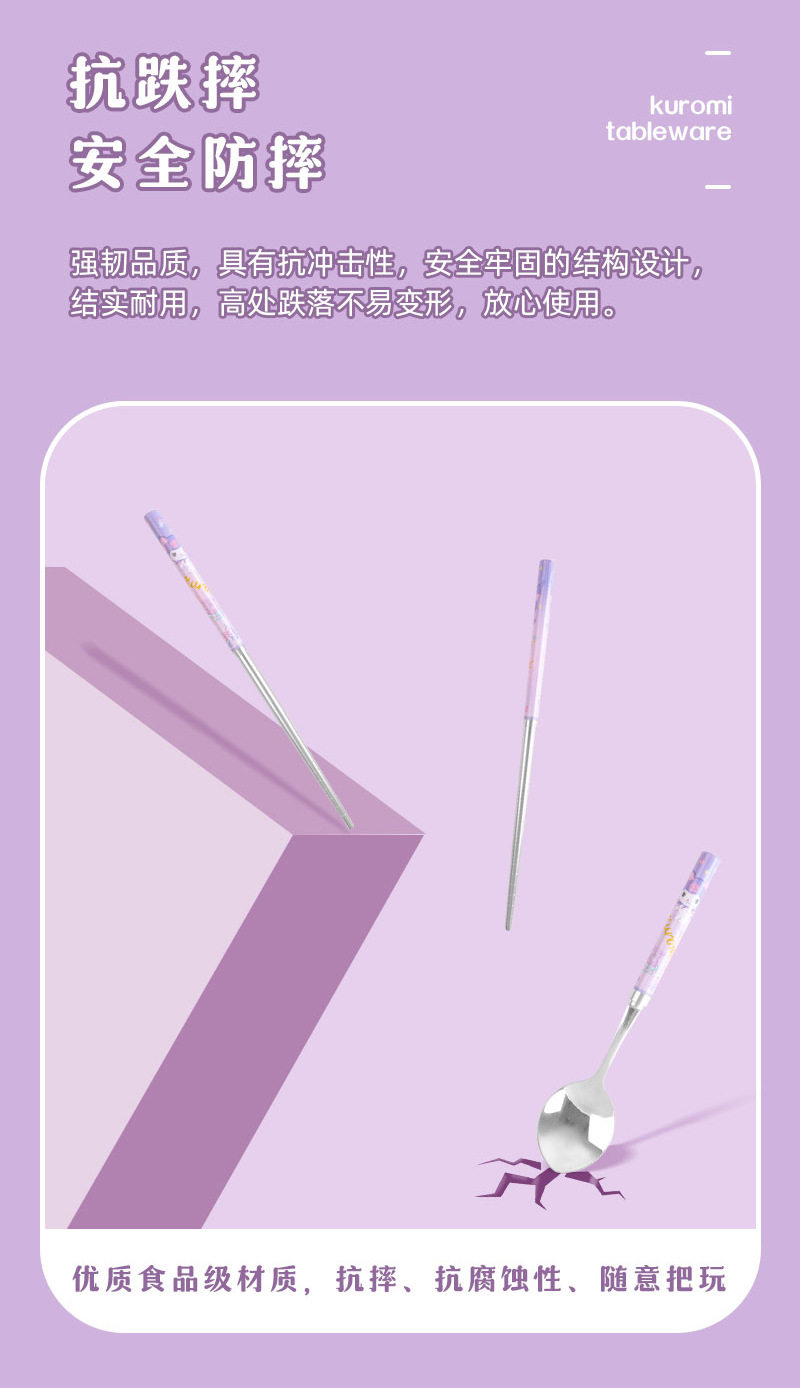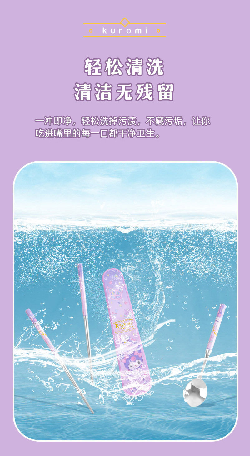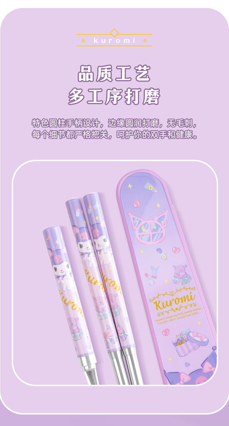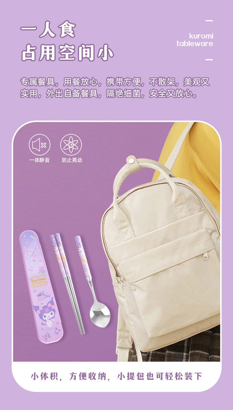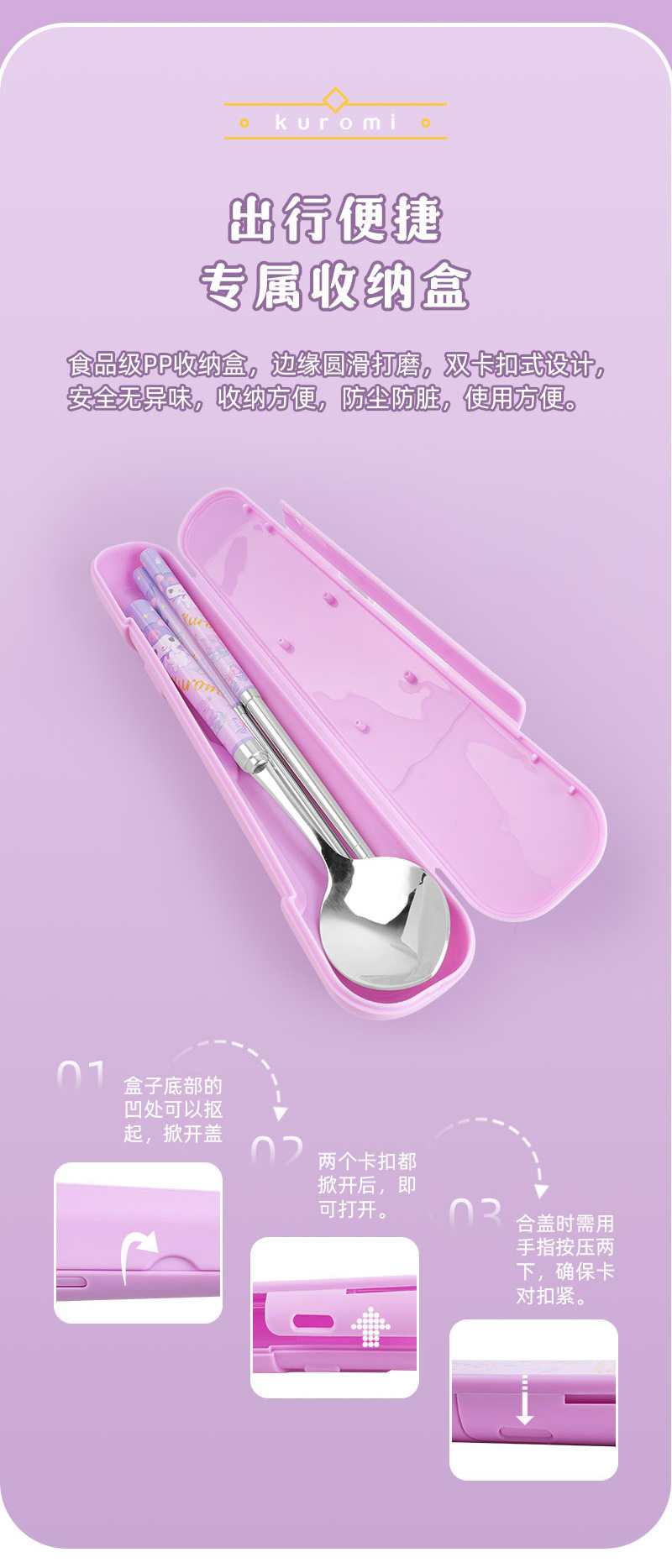 Sanrio Chopsticks Spoon suit Cartoon Storage Box Tableware Children's Primary School Girls School Three-Piece Set for One Person