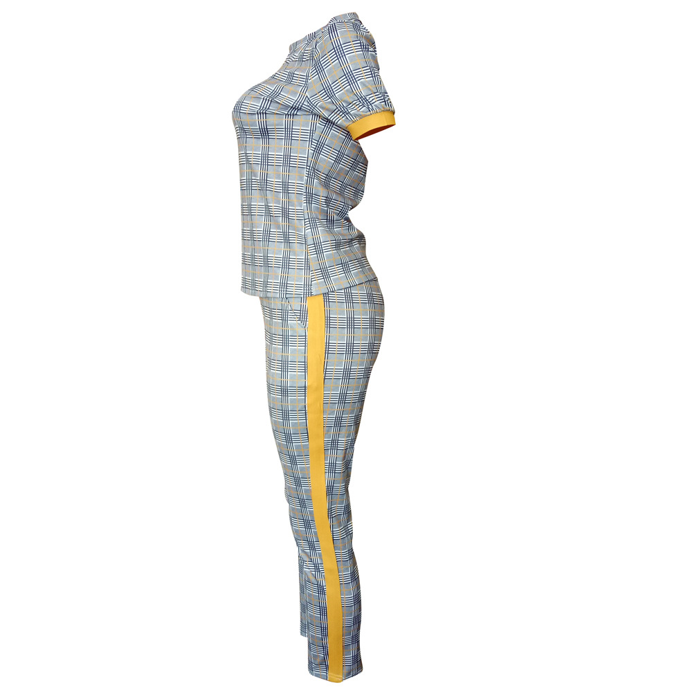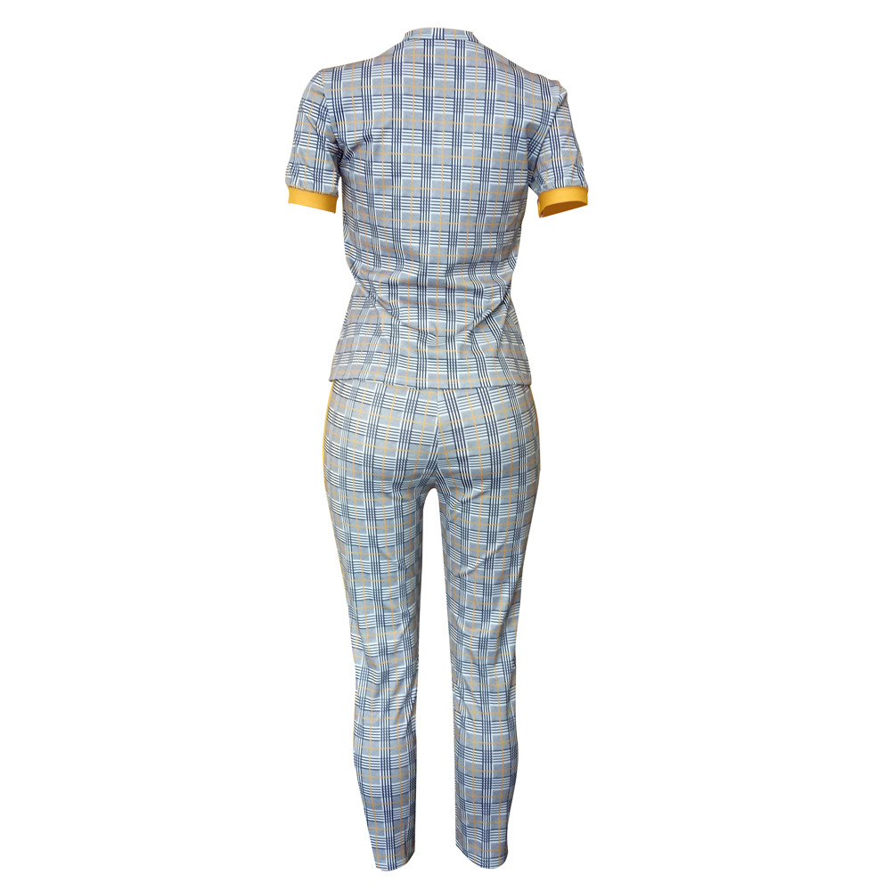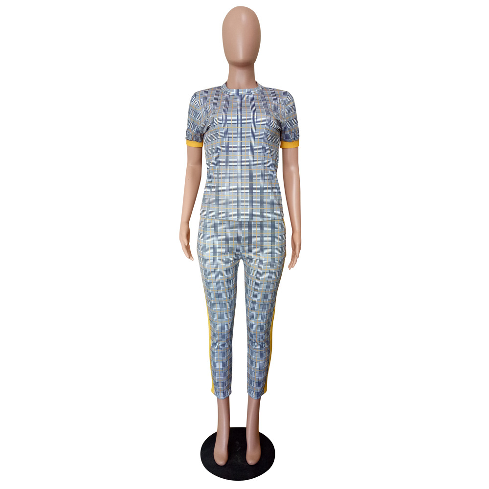 LS8031 European and American Women's Spring and Autumn New Fashion Slim-fit Printed Short-sleeved Pants Set Two-piece Set