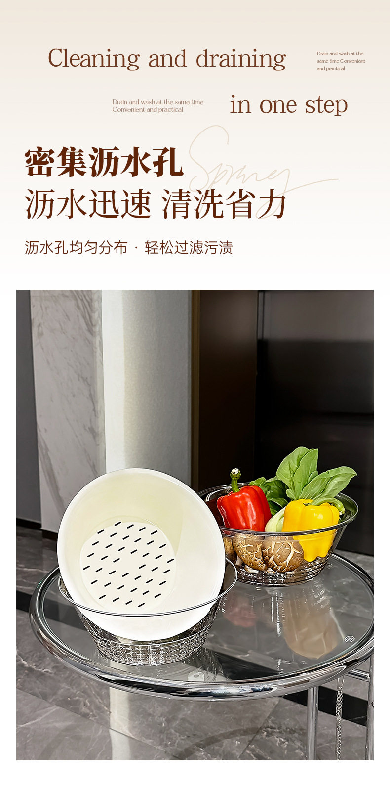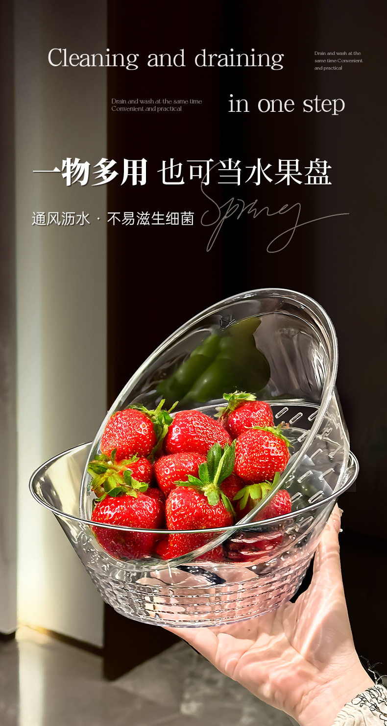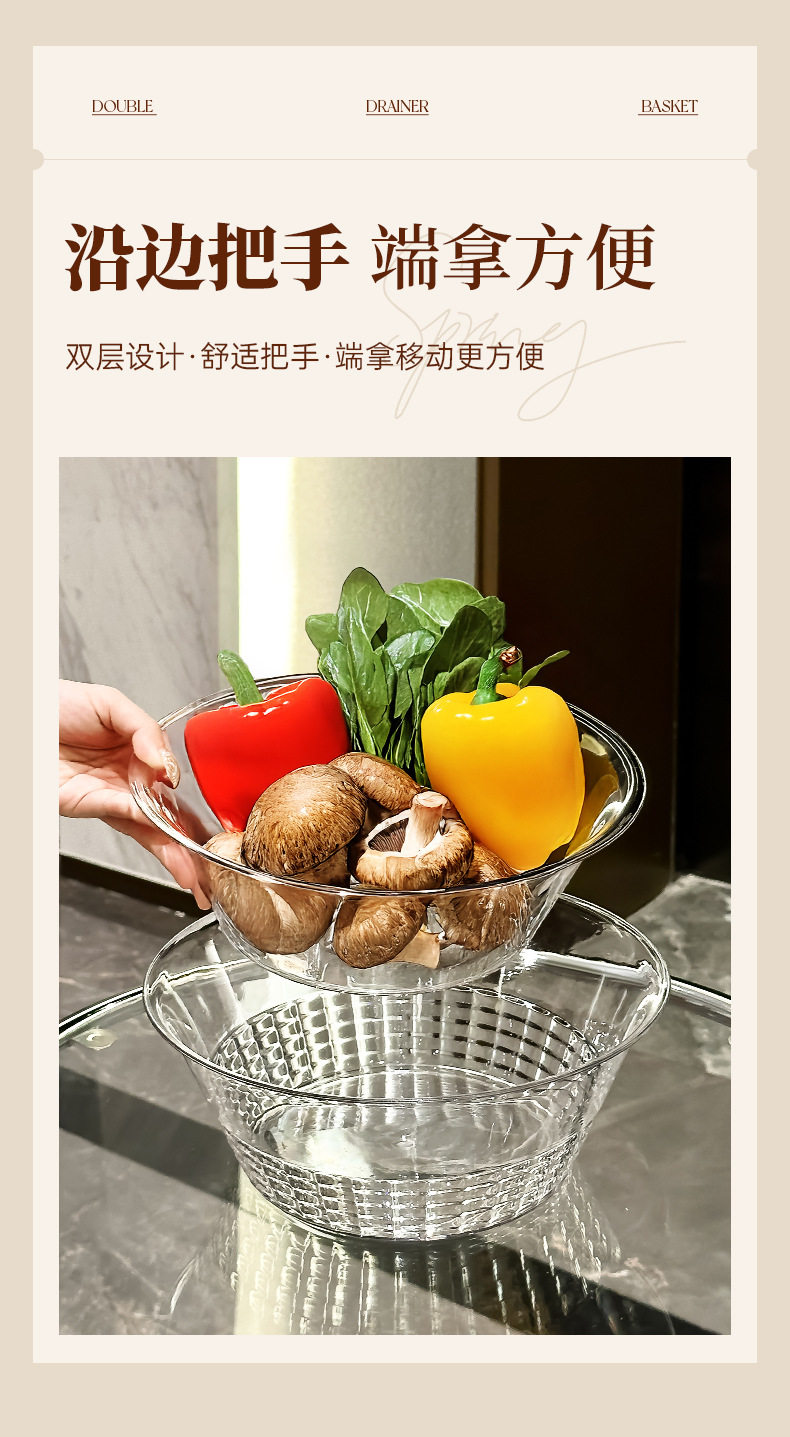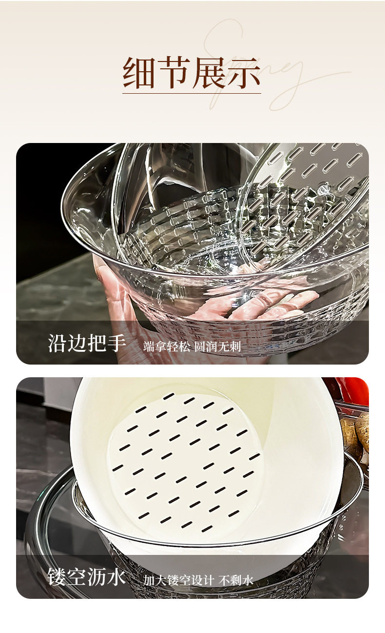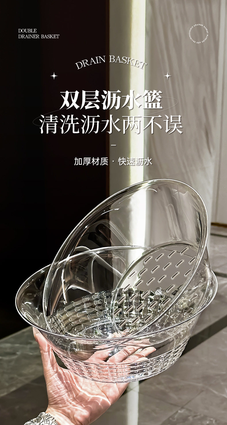 Double-layer Thickened Draining Basket Kitchen Household Cleaning Water Filtering Two-in-one Thickened Fruit Plate Amoy Vegetable Basket Fruit Plate Basin