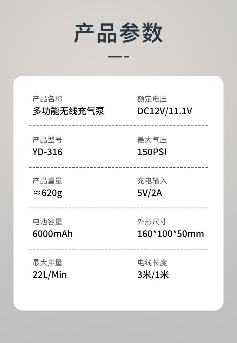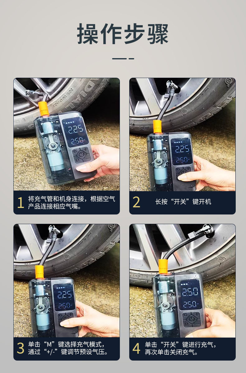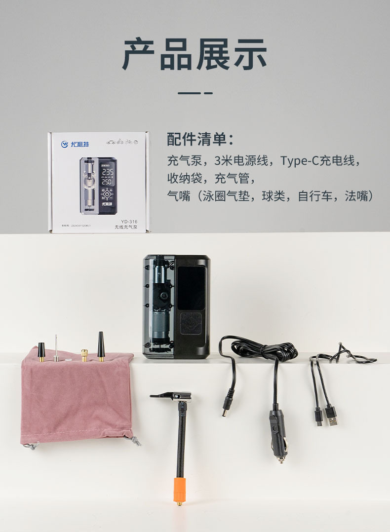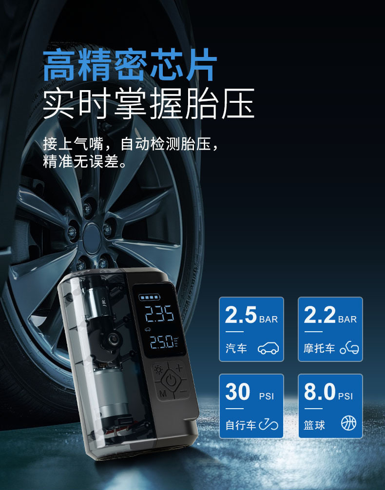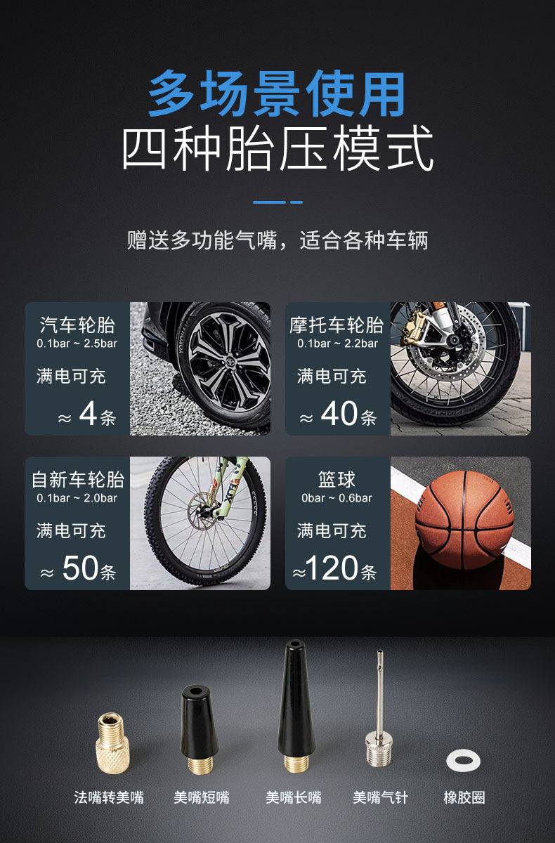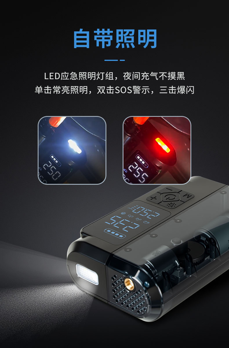 | Additional functions | Lighting,Tire pressure gauge,Warning light,Usb charging |