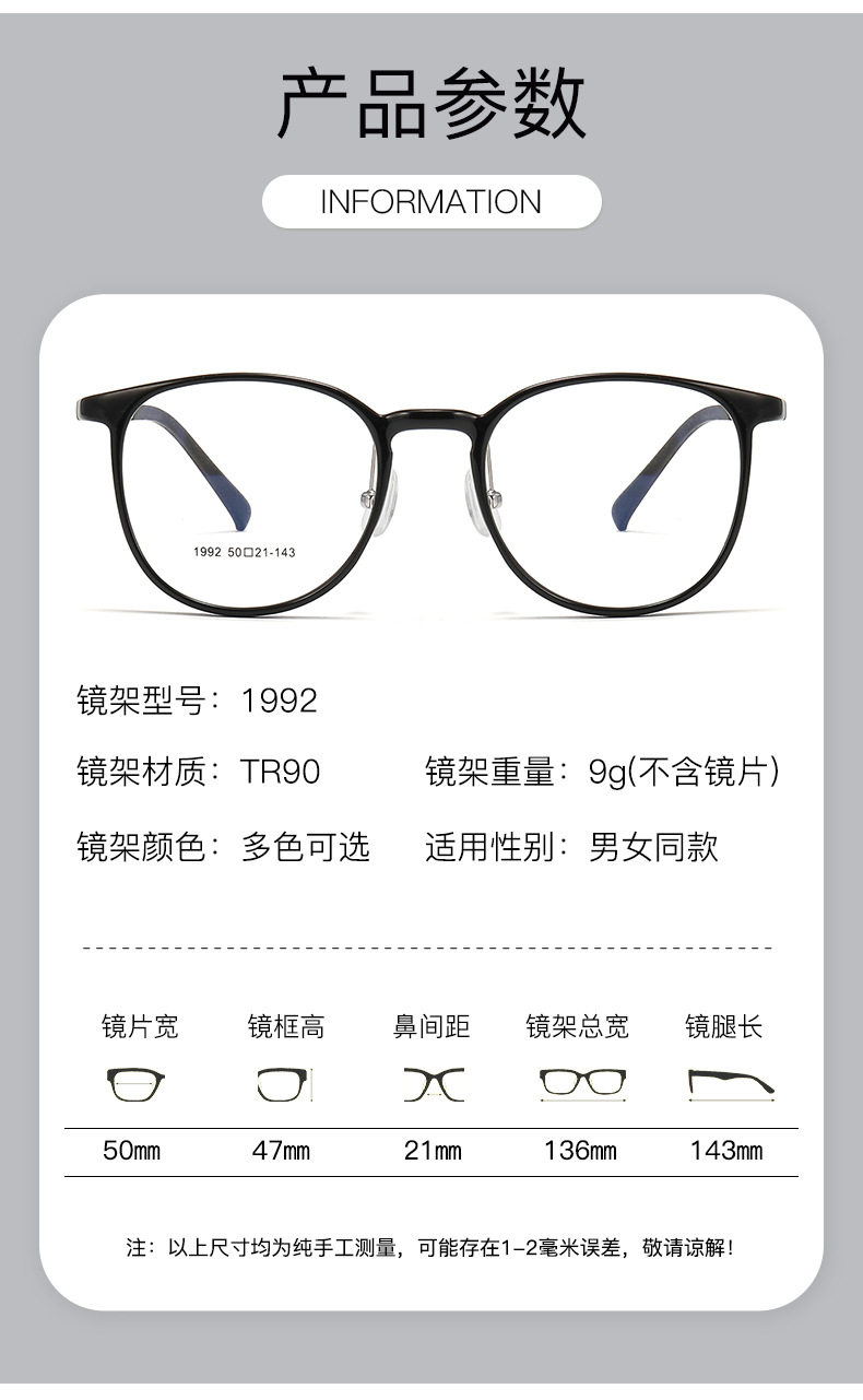 | Frame color | Glossy black,Transparent white,Transparent gray,Transparent powder,Gradient tea,Gradient olive green |