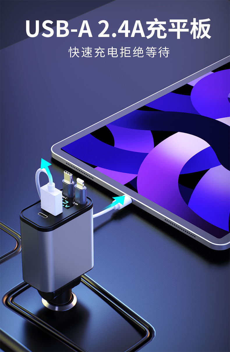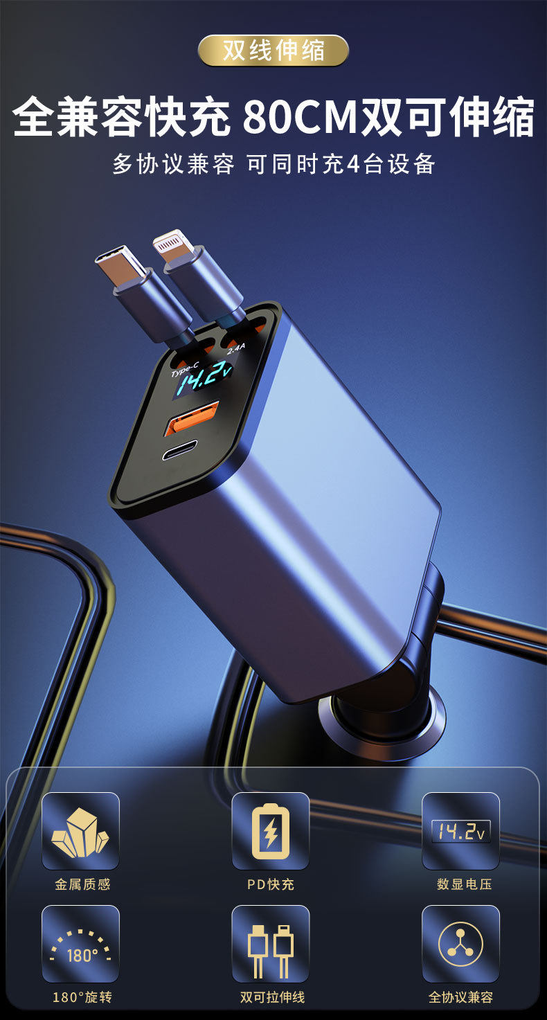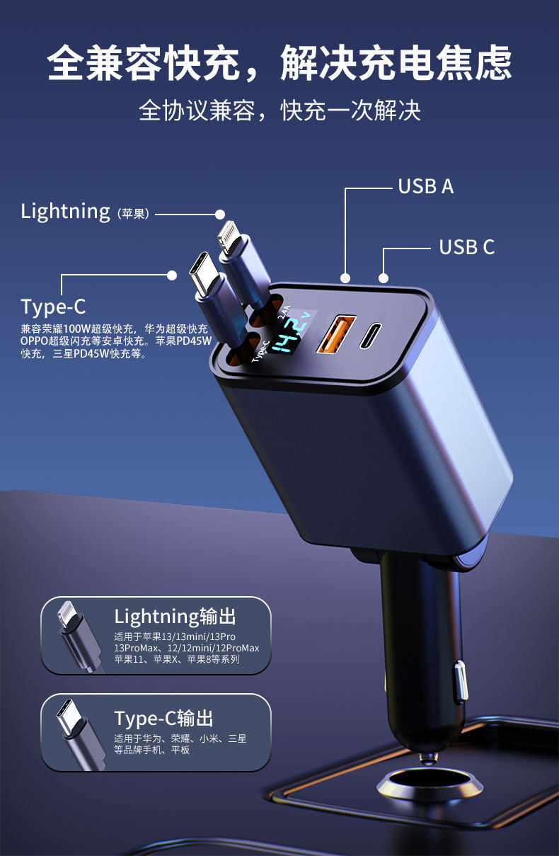 Model [240w super fast charge/pd45w] dual type-c [support apple 15/16] dual retractable cable,[120w super fast charging] type-c + apple dual retractable cable,[120w super fast charging] single retractable cable + dual cigarette lighter holes + pd fast charging/super fast charging