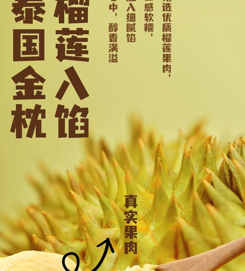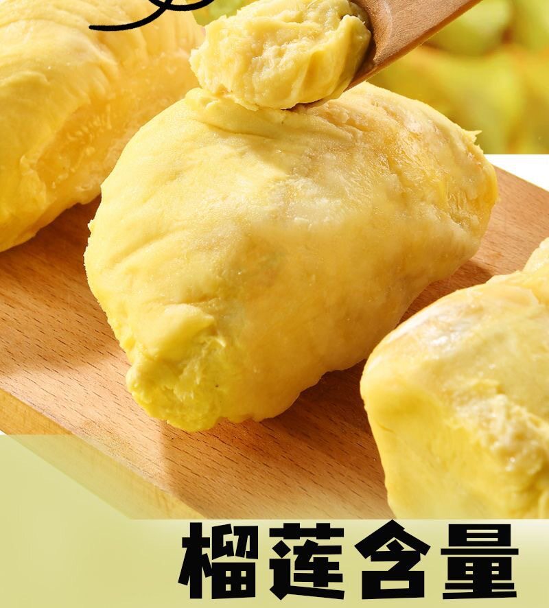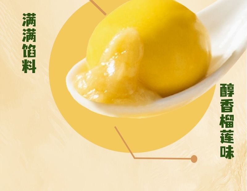 | Raw materials and ingredients | : white glutinous rice flour, water, durian (≥10%), big yellow rice (2.5% added), wheat flour, starch, β-carotene |