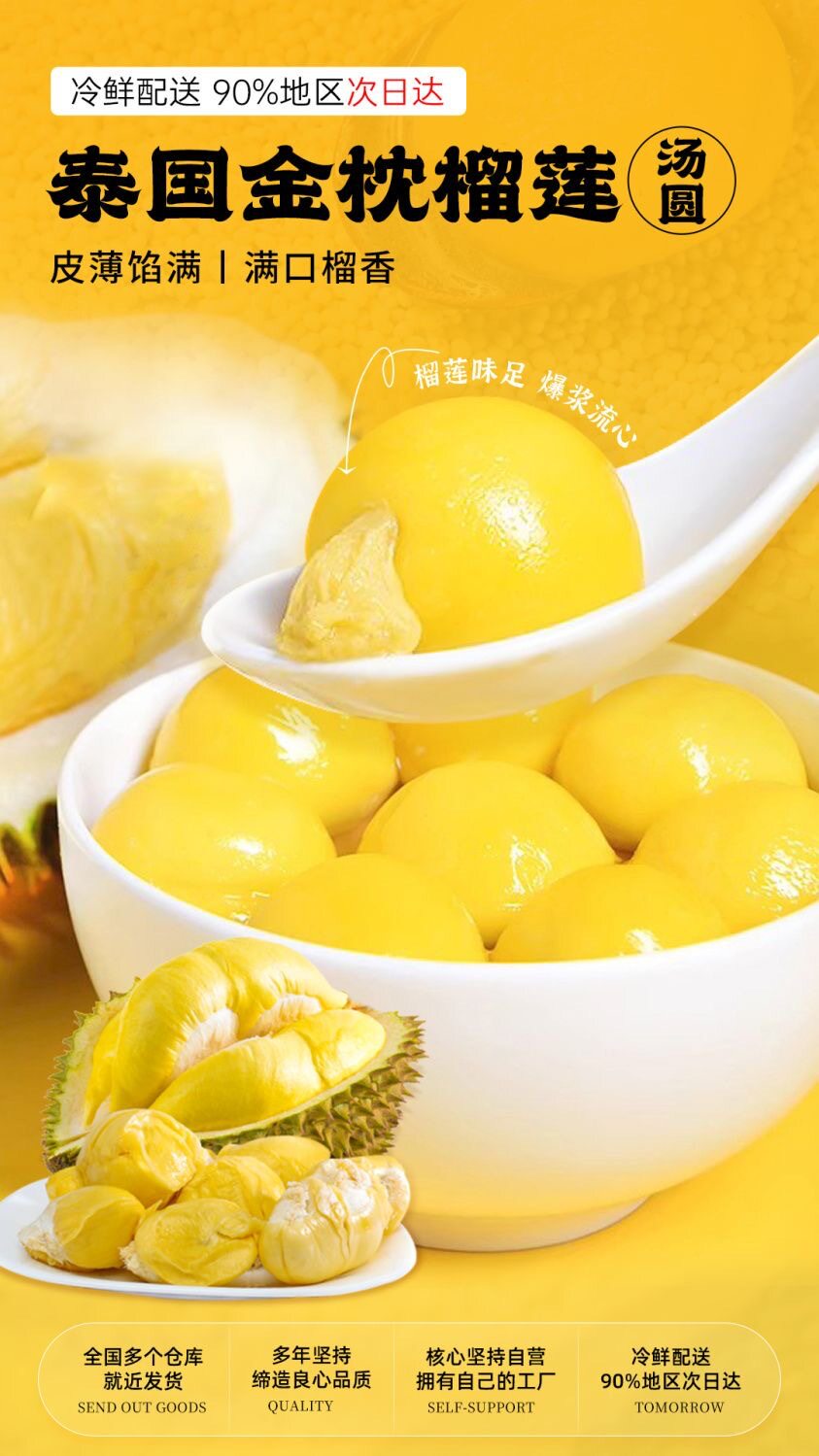 | Packaging specifications | 1 bag of durian rhubarb rice glutinous rice balls,2 bags of durian rhubarb rice glutinous rice balls,3 bags of durian rhubarb rice glutinous rice balls |