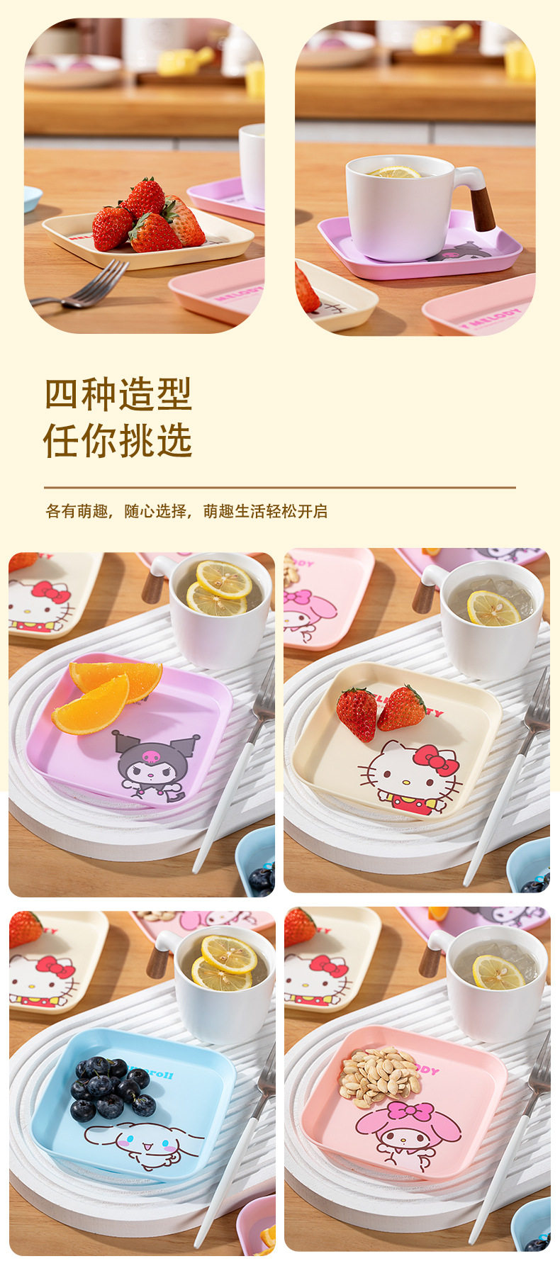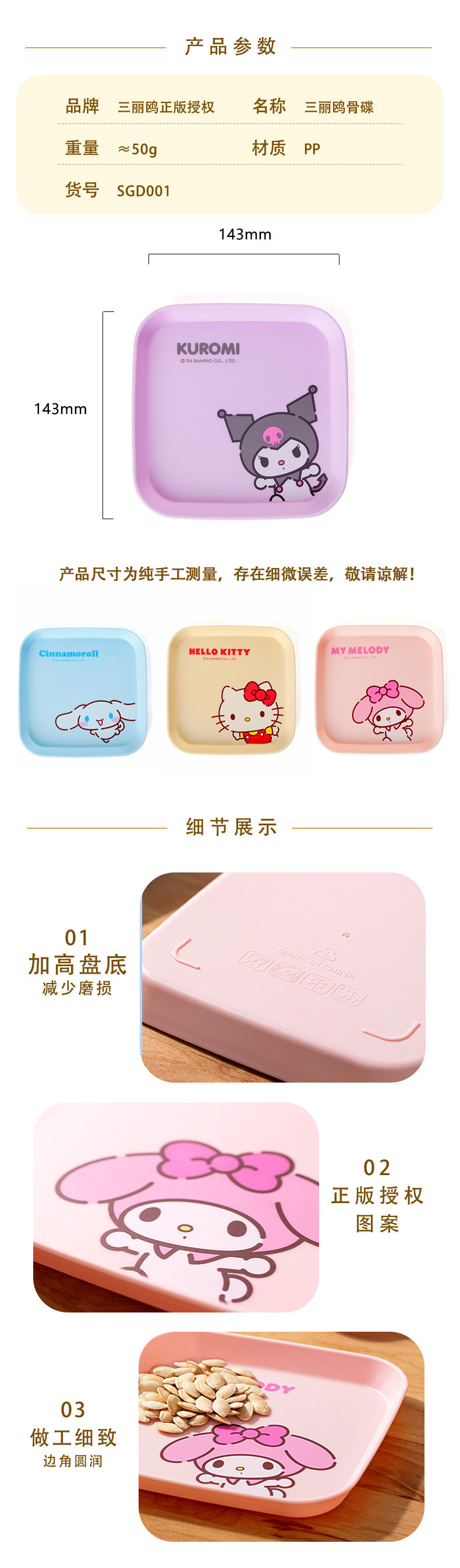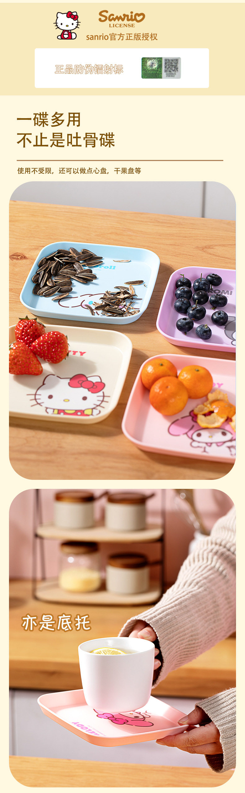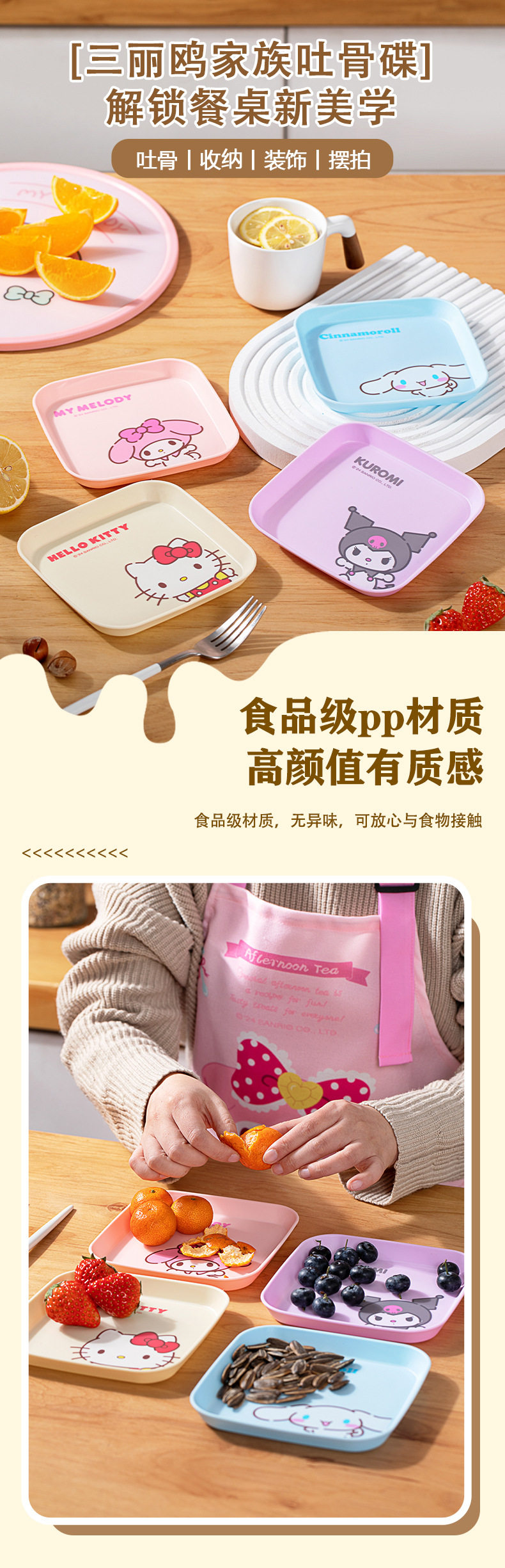 Sanrio Official Bone Dish with Candy, Cartoon Household Dining Table Trash Tray, Bone Disposal Dish, Plastic Small Dish, Co-Branded
