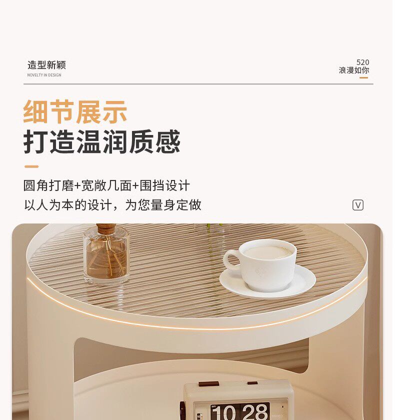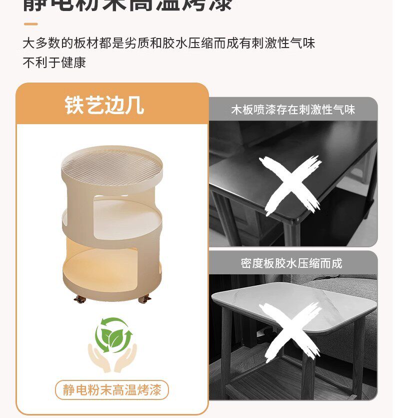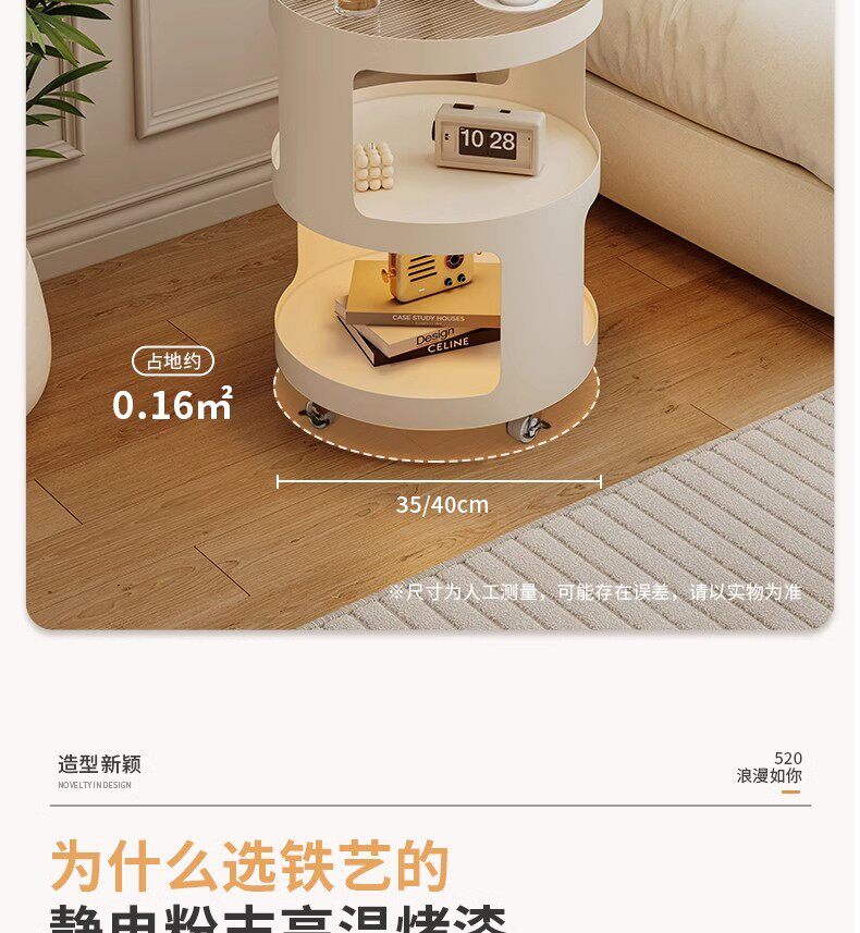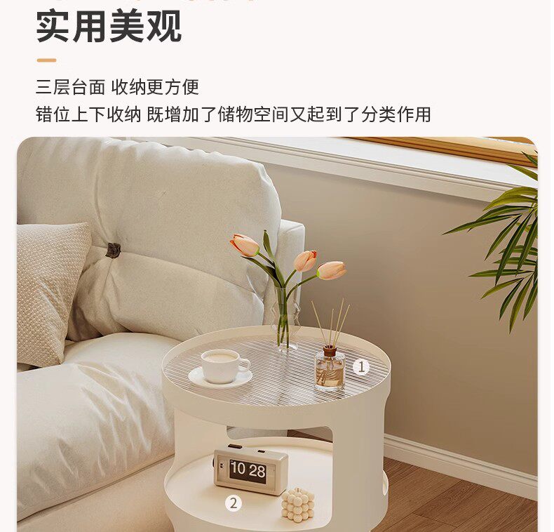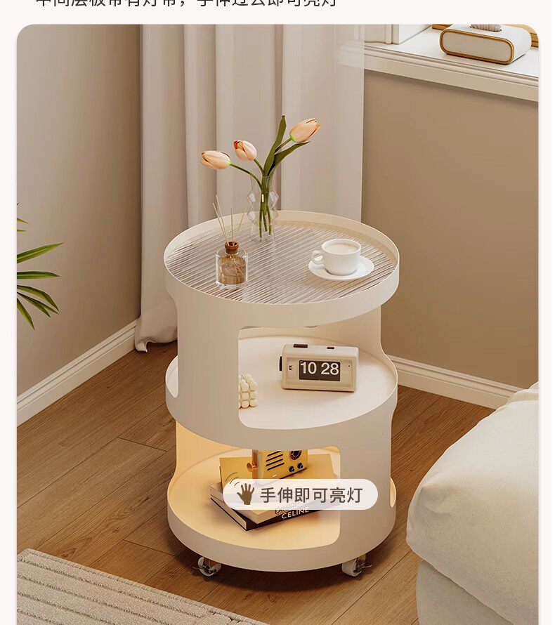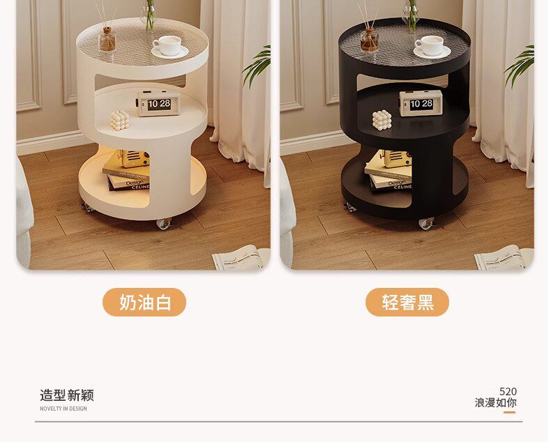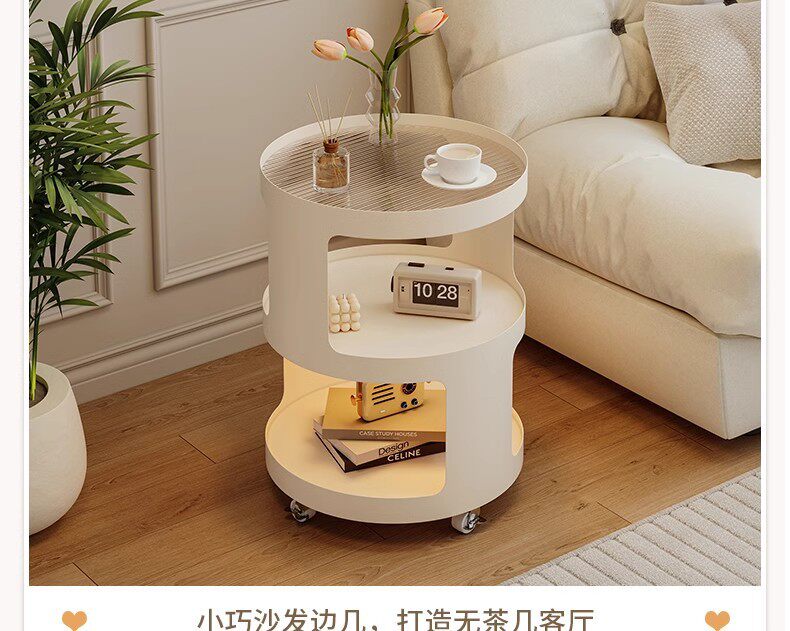 Light Luxury Side Table Bedroom Nightstand Side Cabinet Living Room Simple Coffee Table Cream Style Sofa Corner Table Mobile Trolley