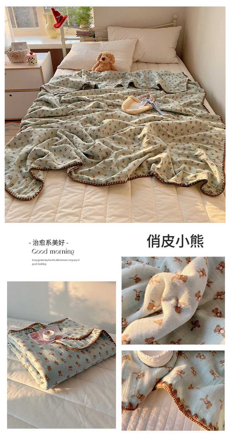 | Dimensions | 80*105cm newborn swaddle/stroller blanket,105*130cm office nap blanket/shawl blanket,150*200cm single bed summer quilt/sofa blanket |