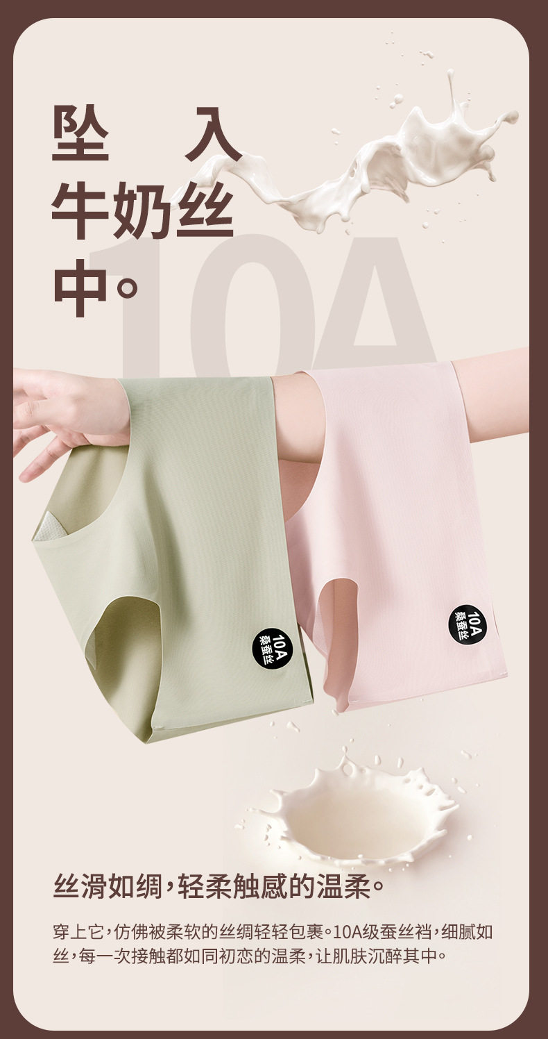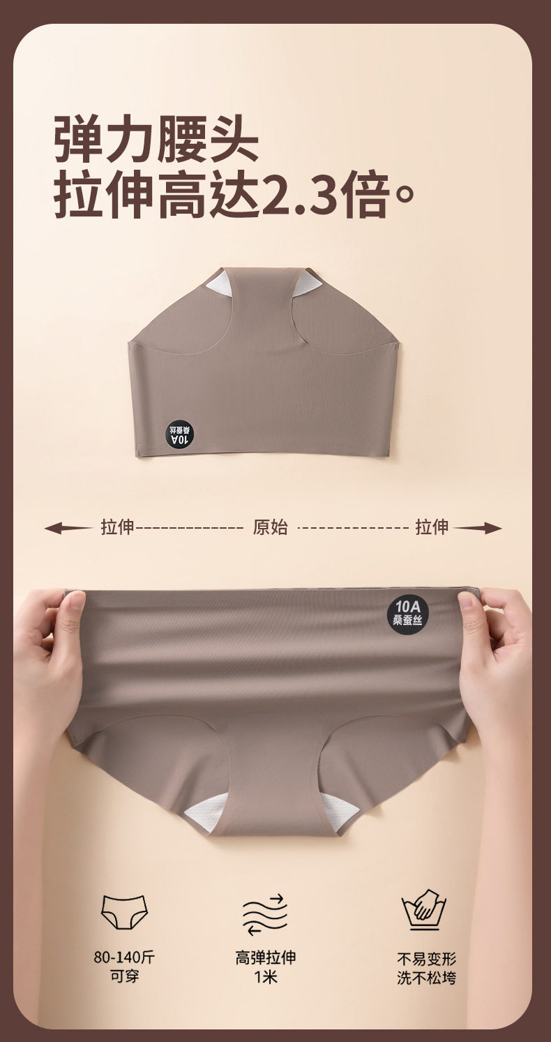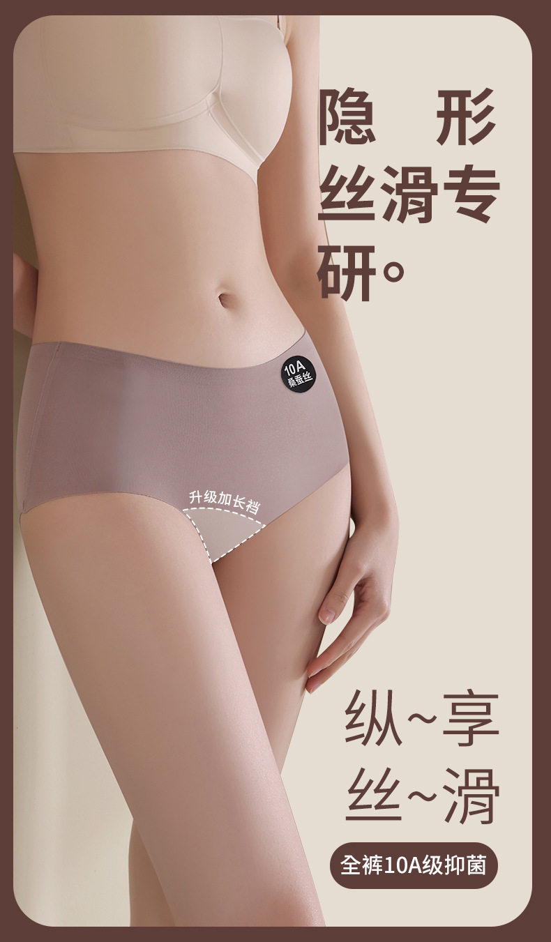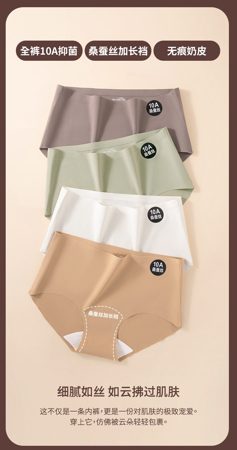 Summer Ice Silk Underwear Yoga Invisible Traceless Underwear Women's 10A Antibacterial Mulberry Silk Mid-waist Women's Briefs