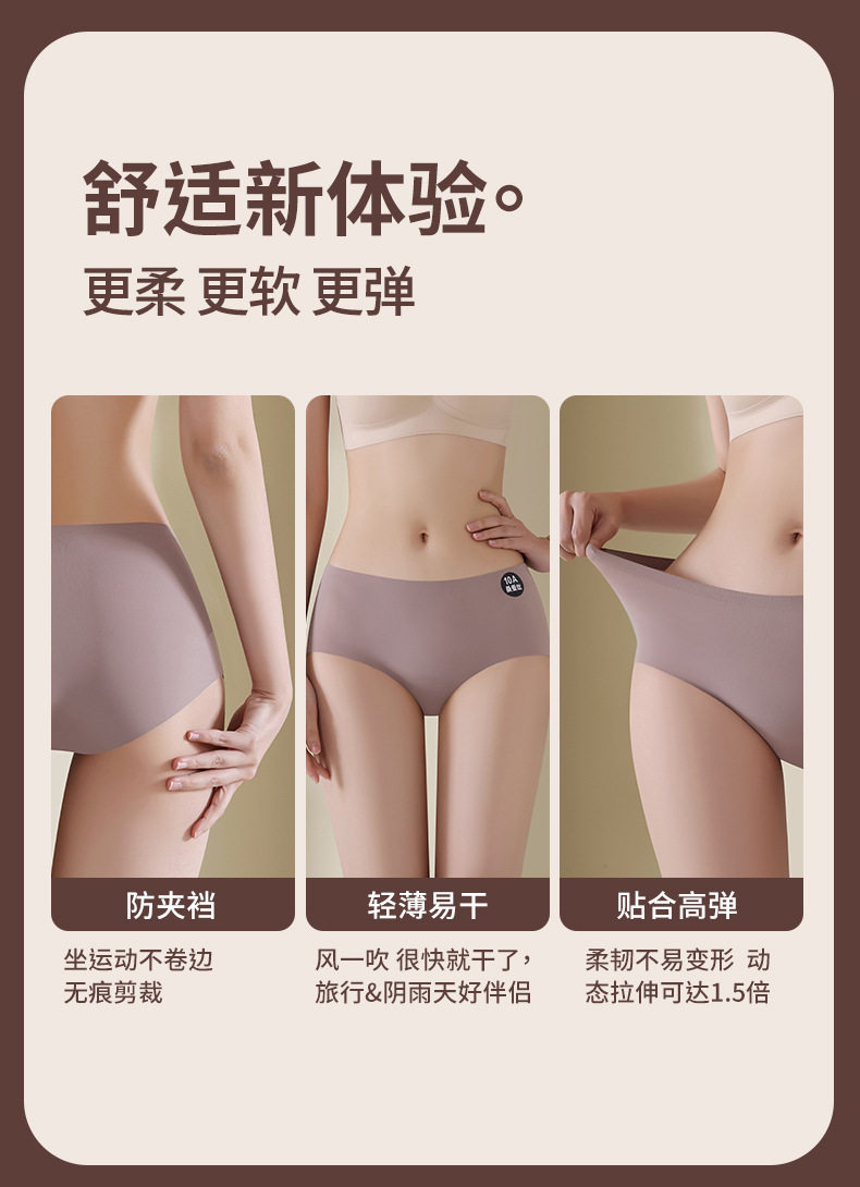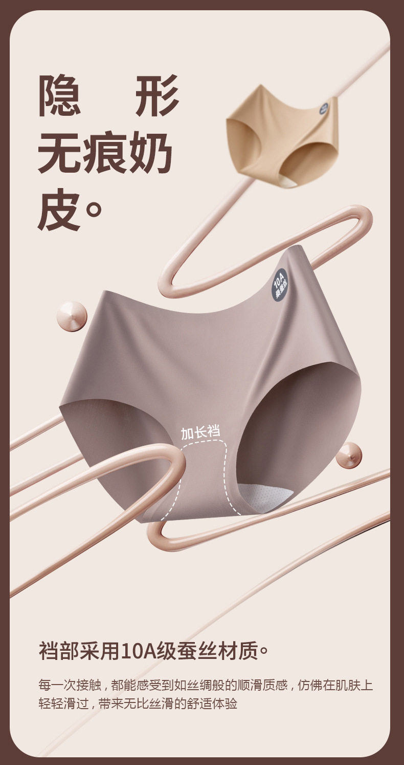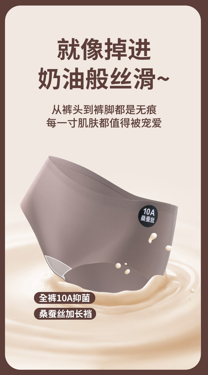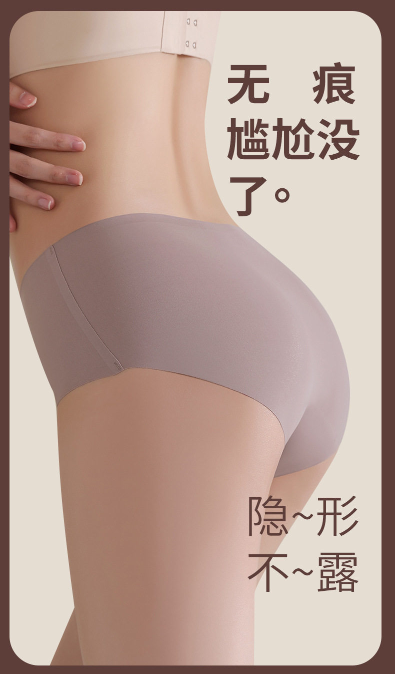 Summer Ice Silk Underwear Yoga Invisible Traceless Underwear Women's 10A Antibacterial Mulberry Silk Mid-waist Women's Briefs