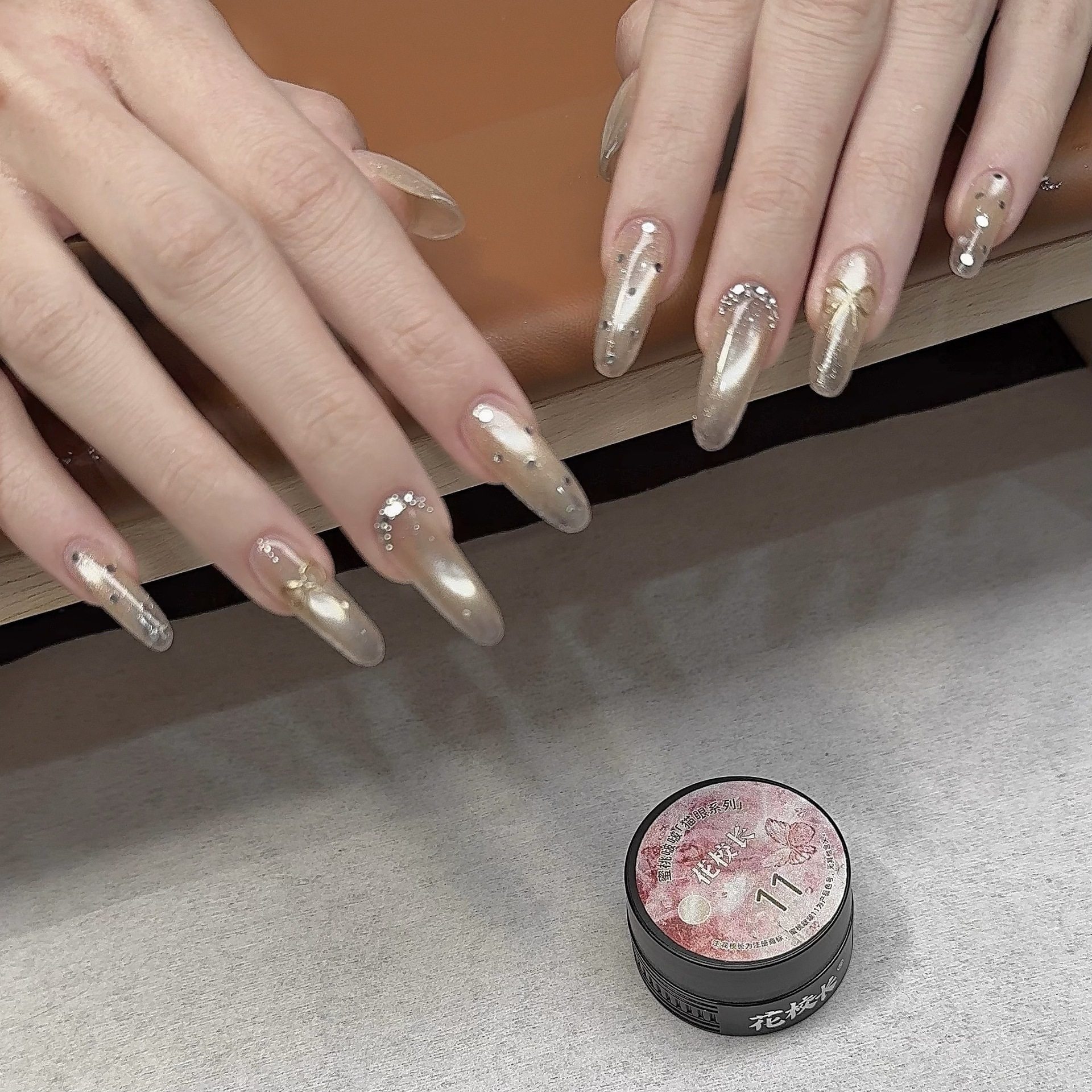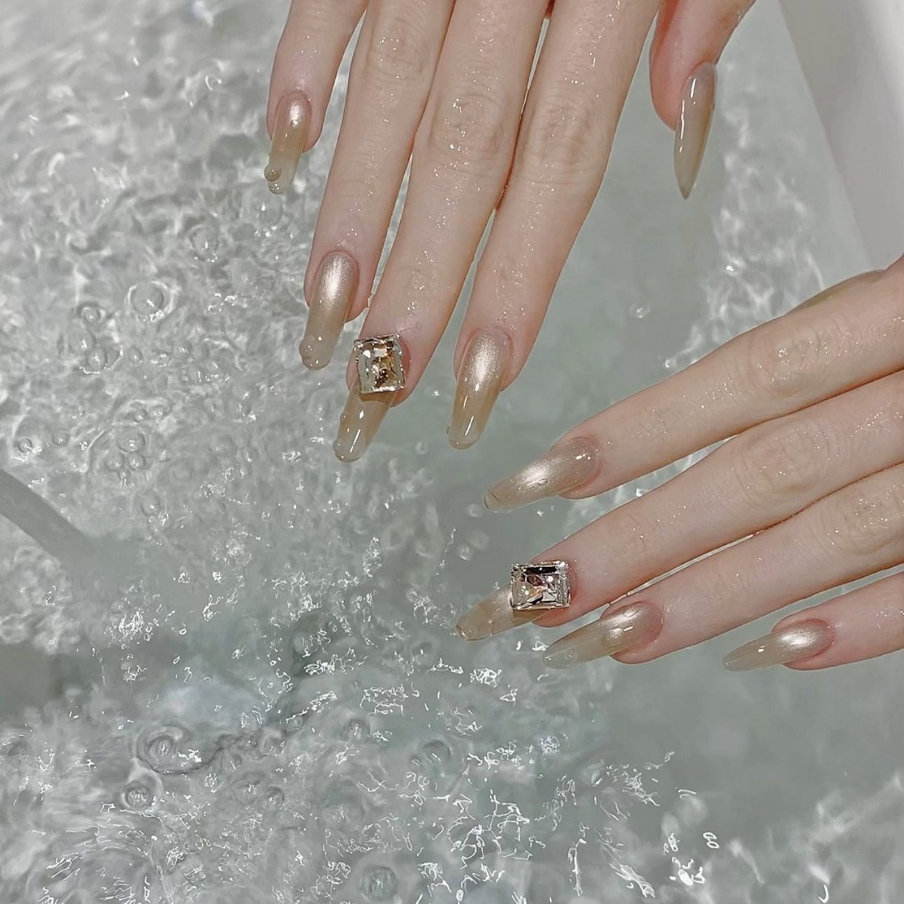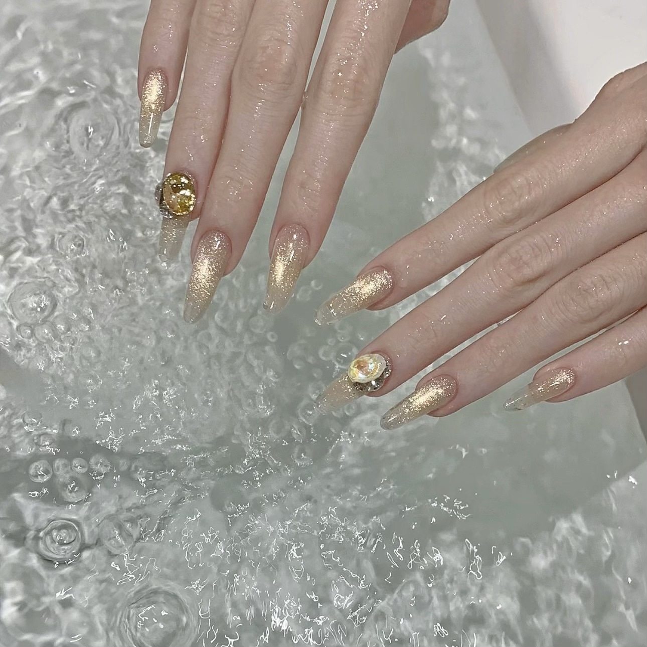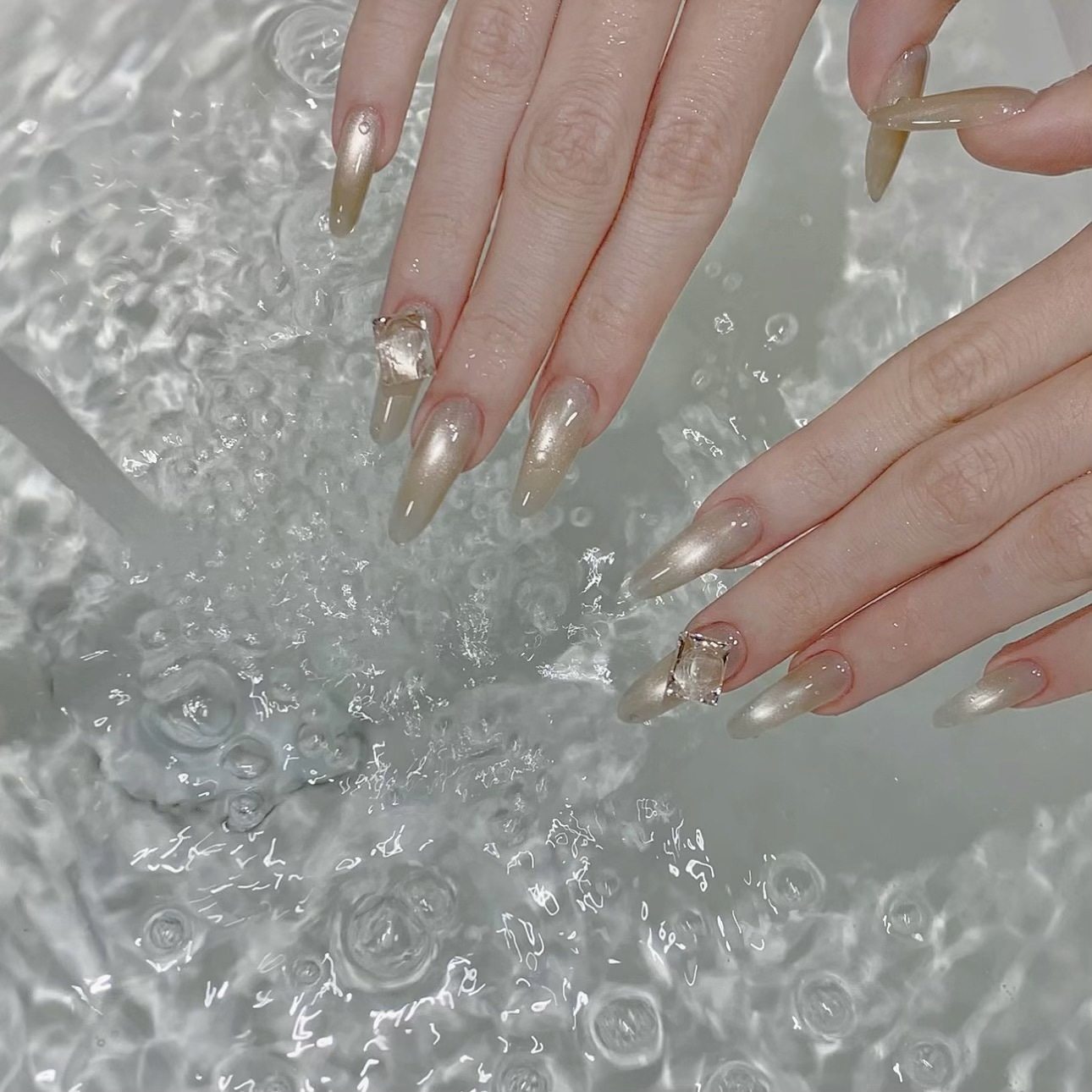 [Principal Hua] Peach Bubble Light Flashes Cat's Eye Ice Crystal White Ice Permeable Glass Bead Stone Nail Oil Gel