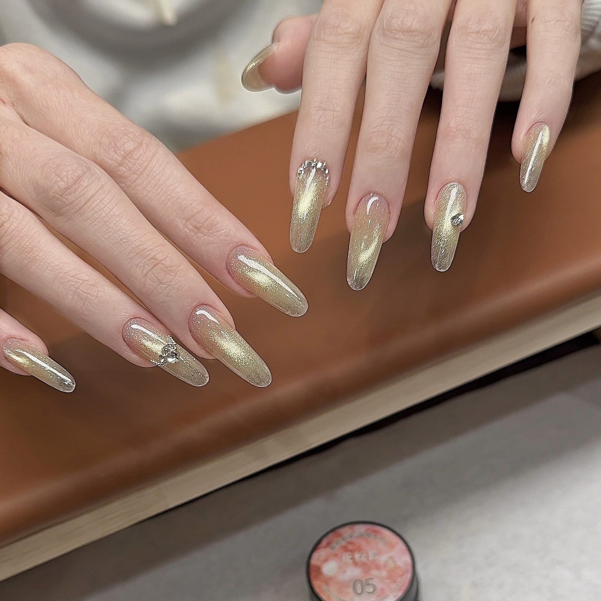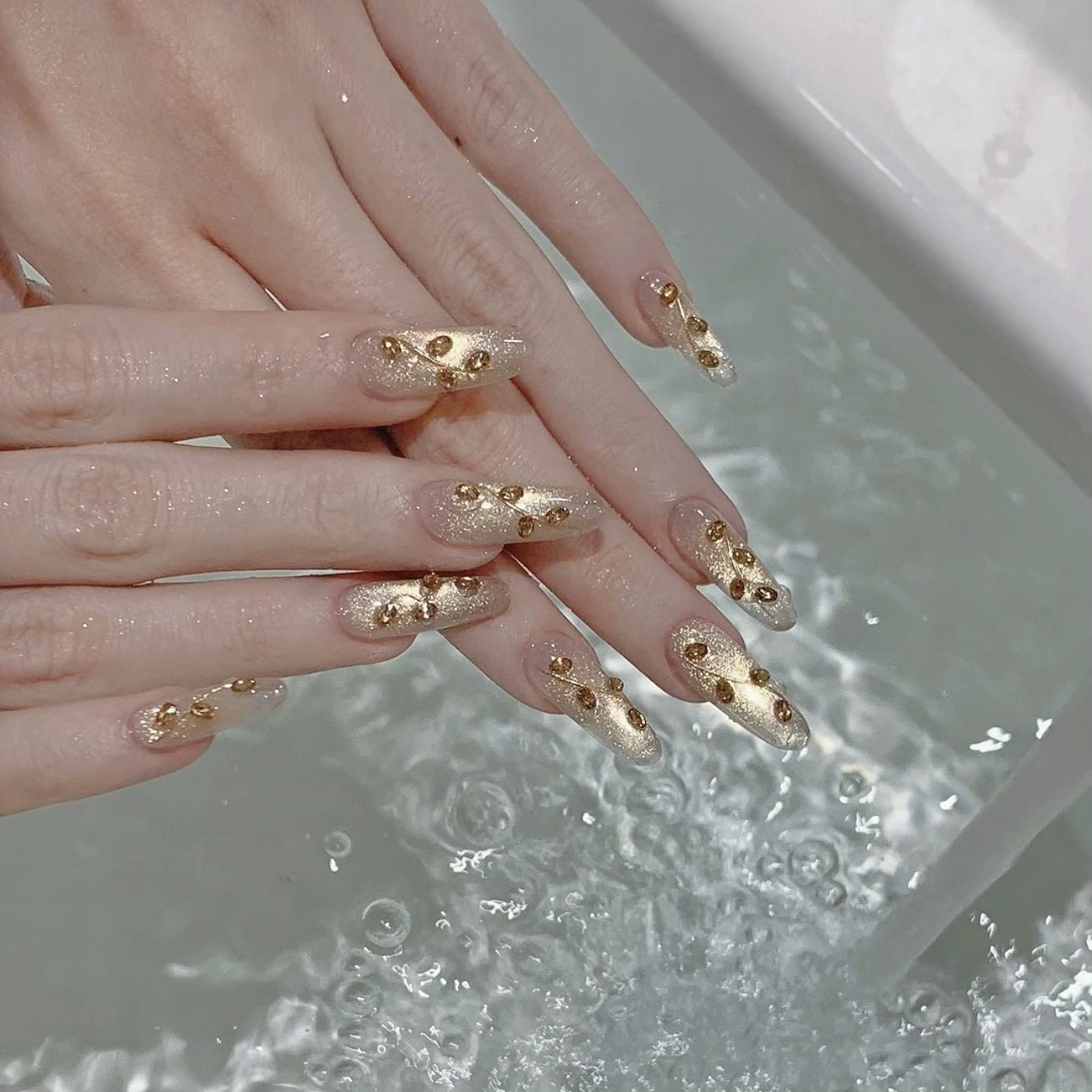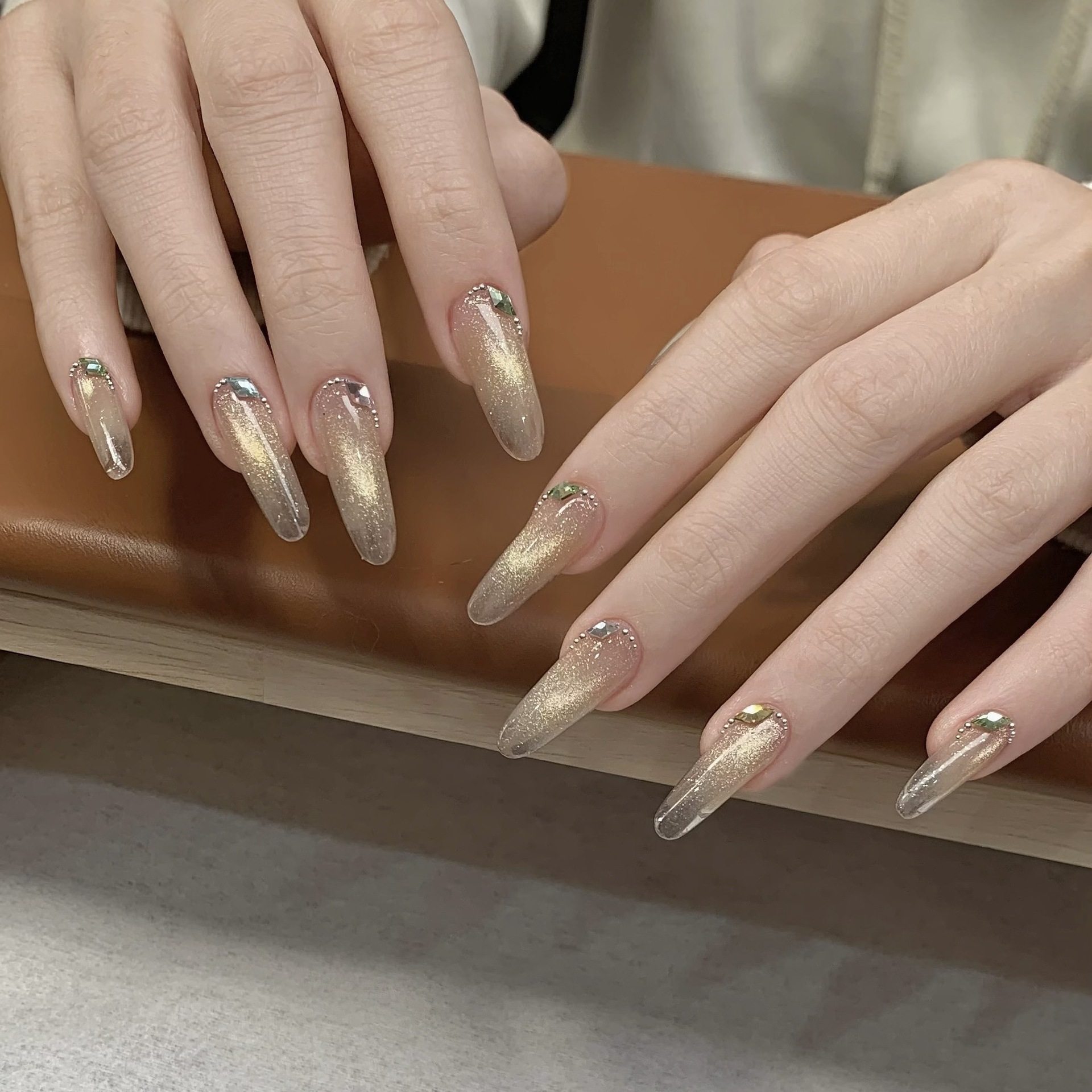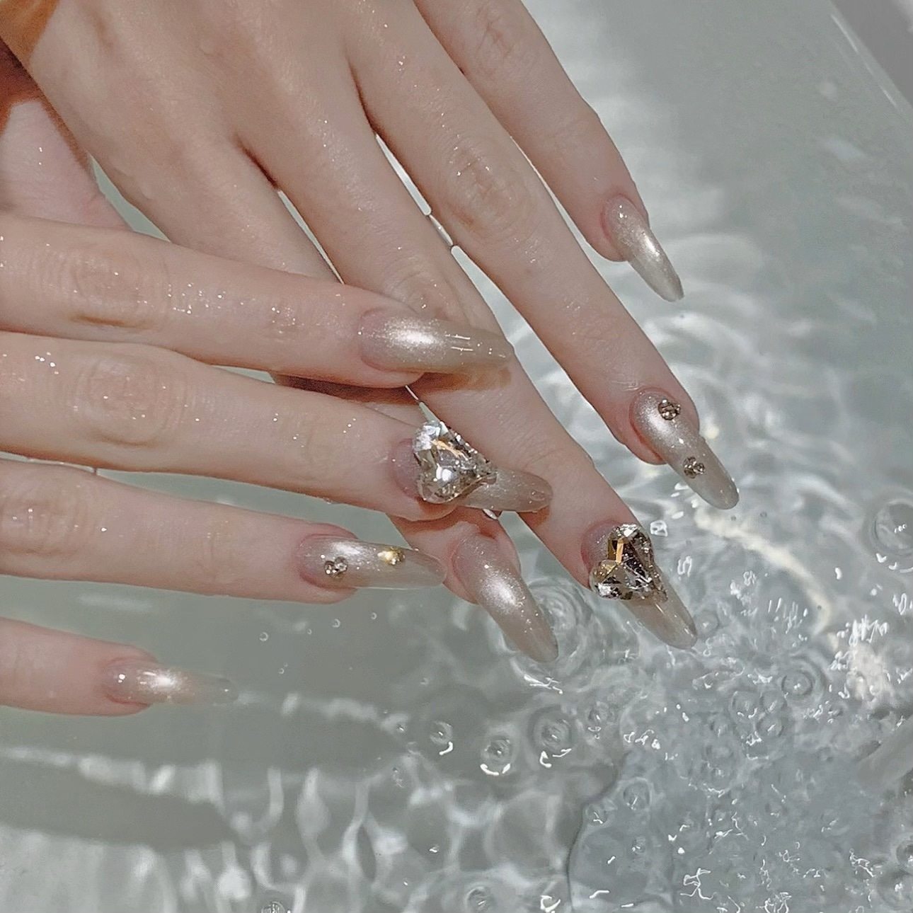 [Principal Hua] Peach Bubble Light Flashes Cat's Eye Ice Crystal White Ice Permeable Glass Bead Stone Nail Oil Gel
