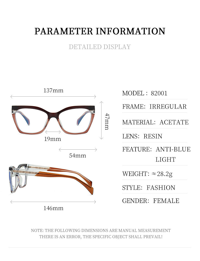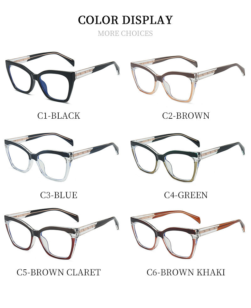 | Frame color | C1 black frame,C2 gradually tea frame,C3 gradually blue frame,C4 gradually green frame,C5 tea frame,C6 upper tea and lower khaki frame |