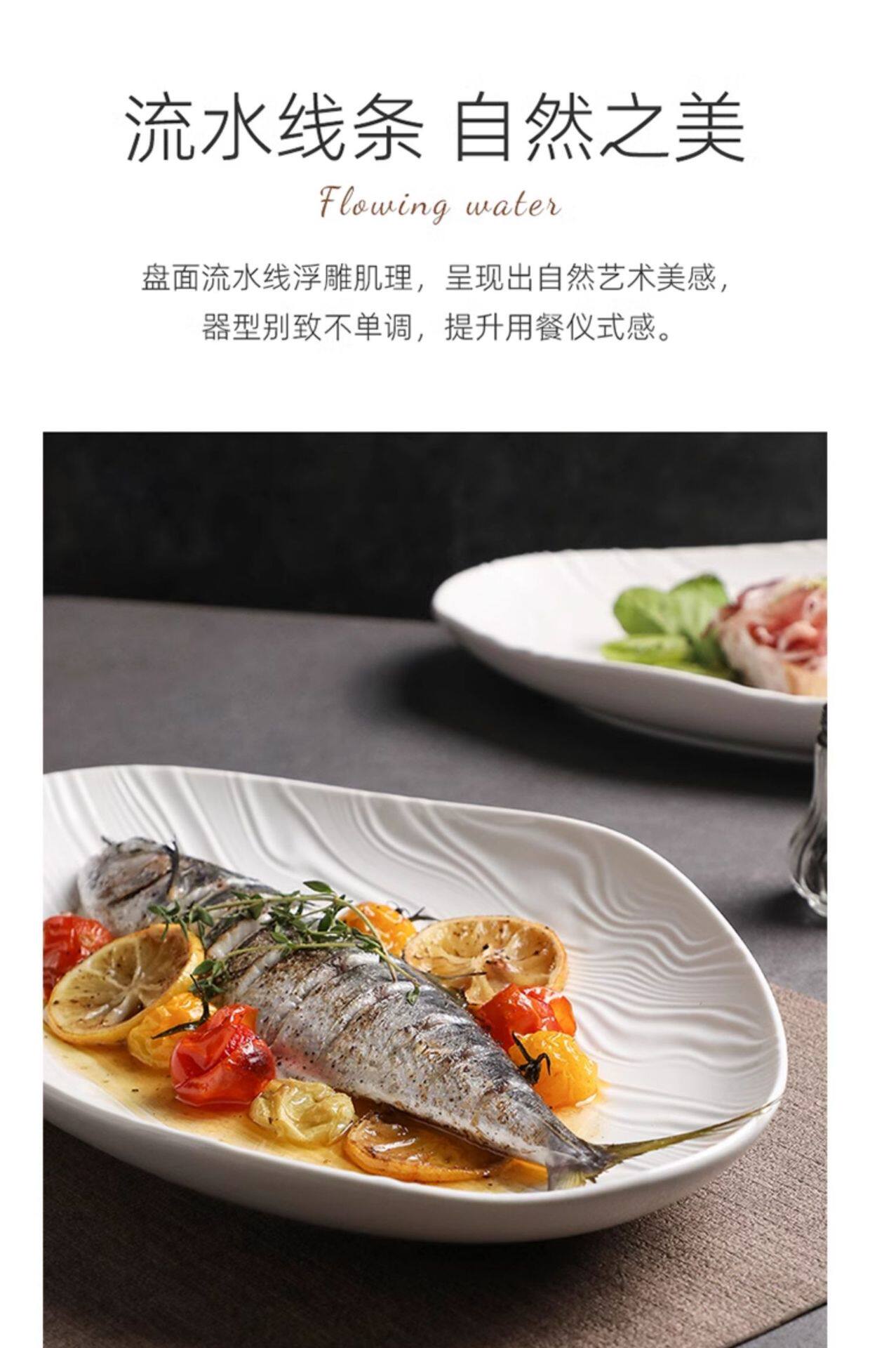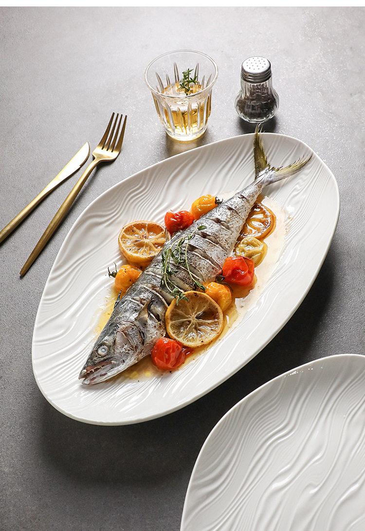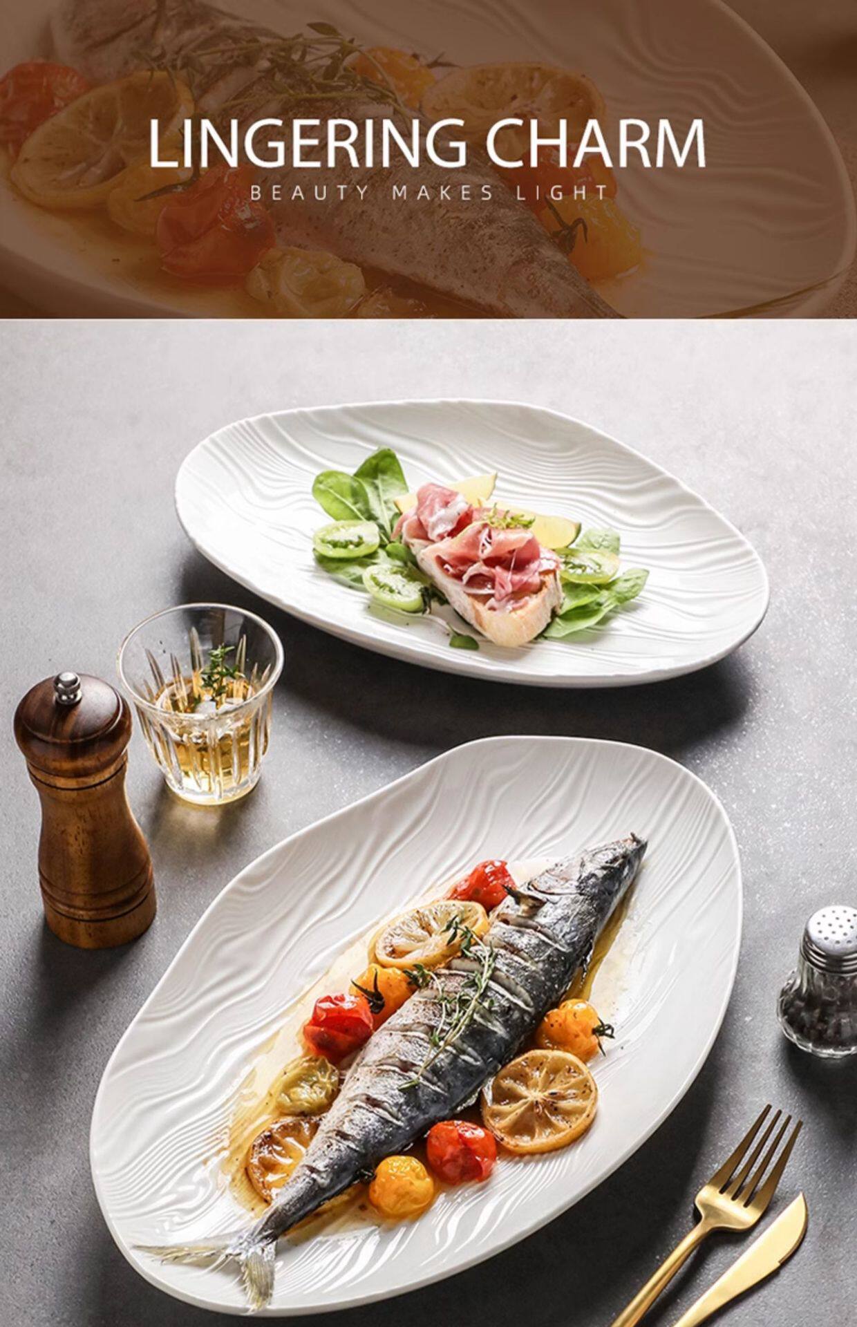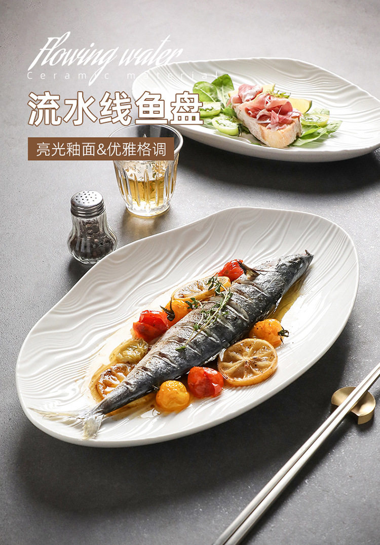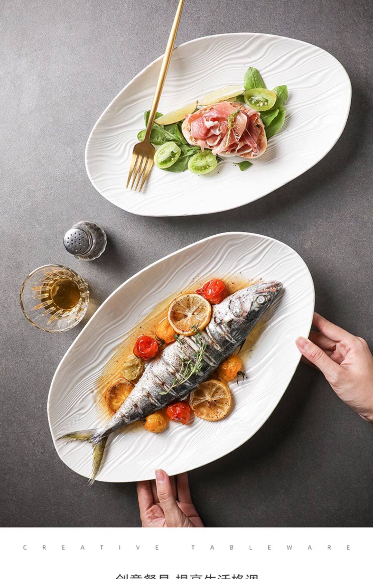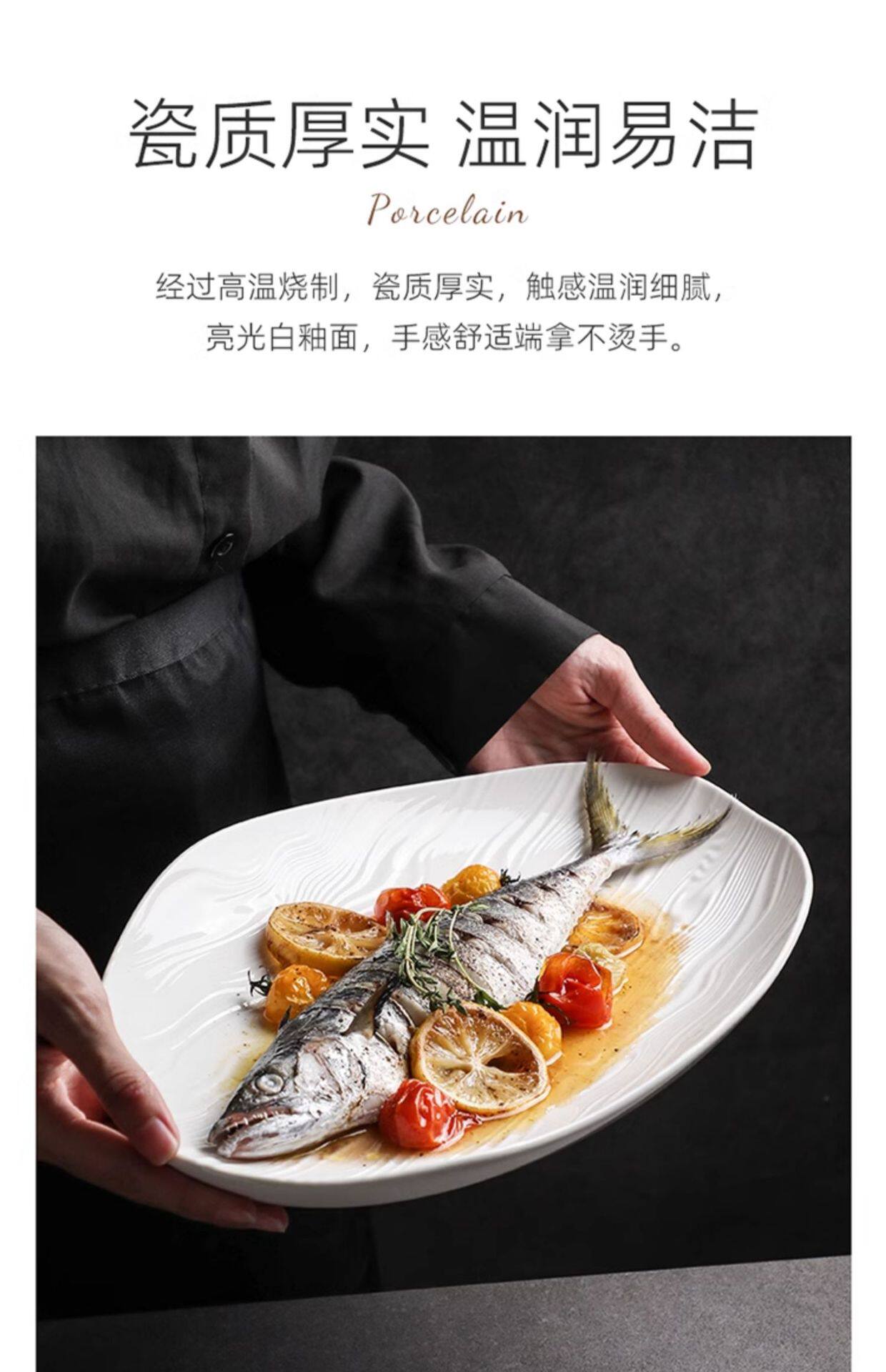 Simple Ceramic Fish Plate Large Household High-end Feeling Steamed Fish Plate High Temperature Resistant Creative Plate Irregular Oval Plate