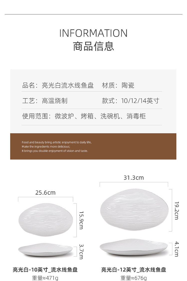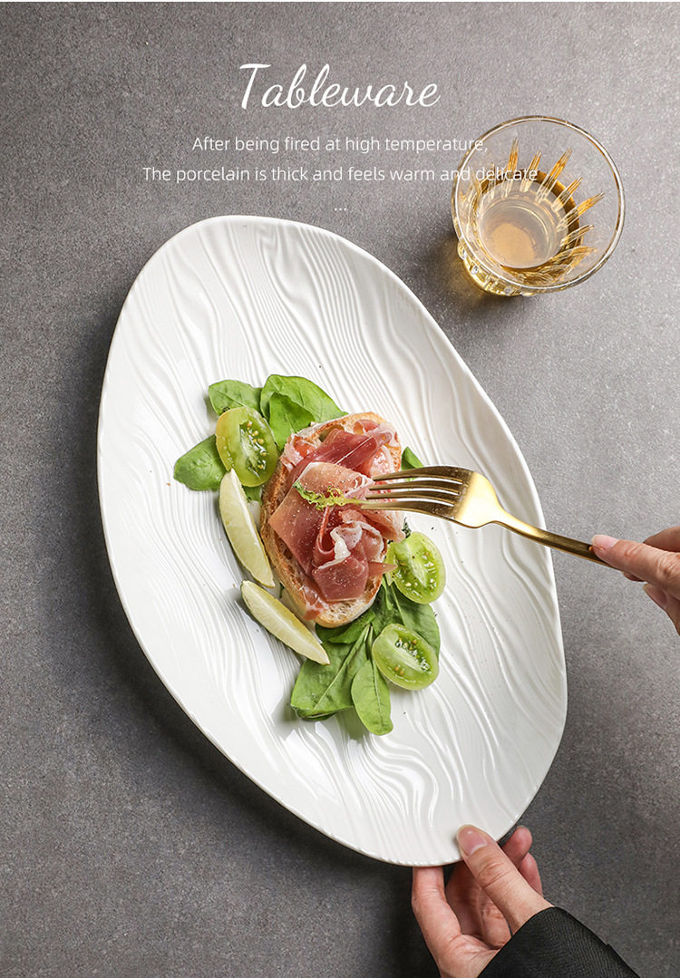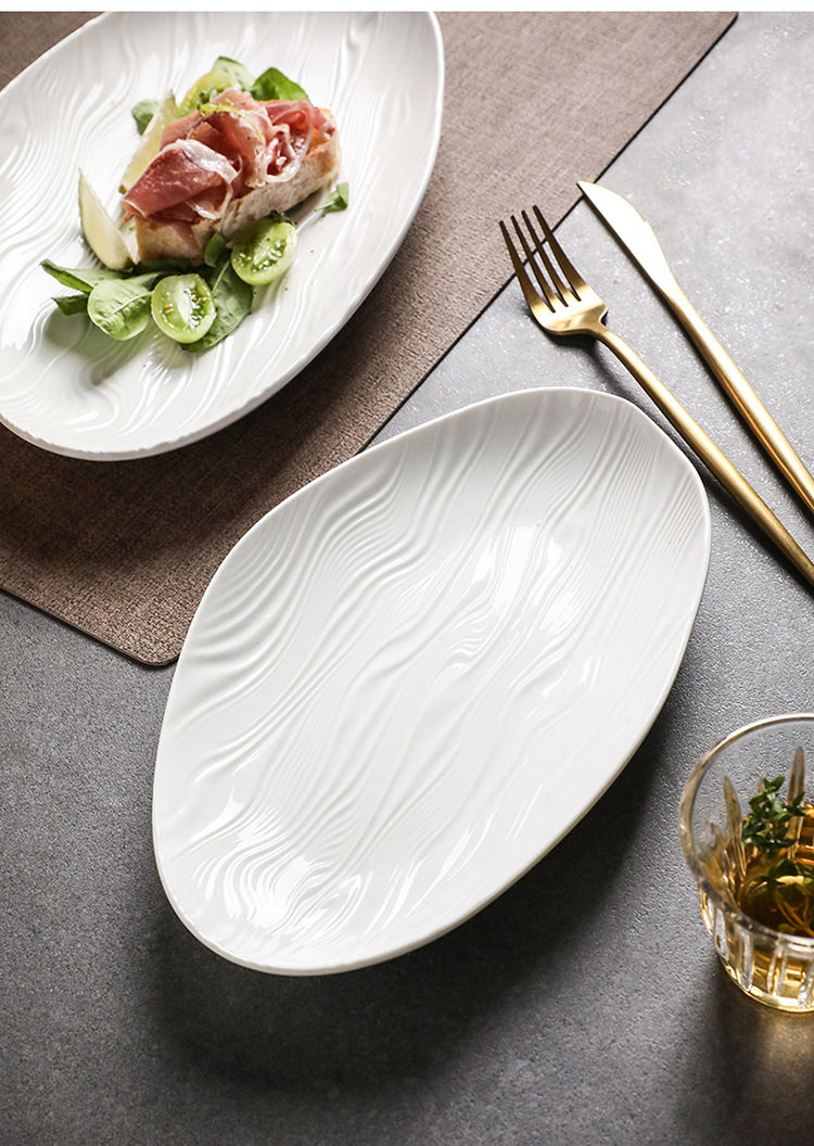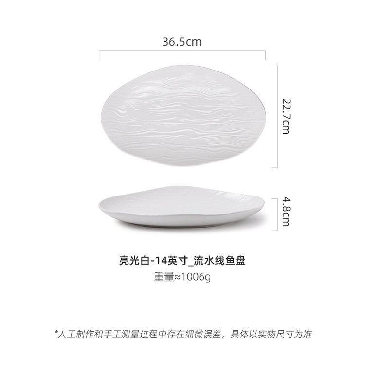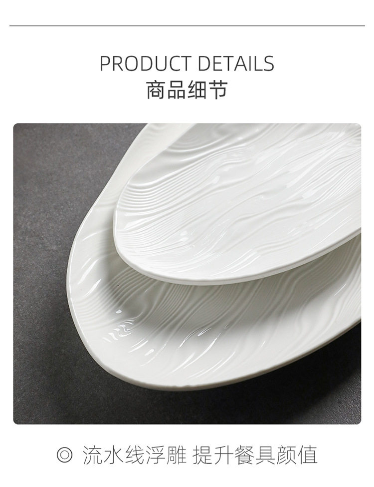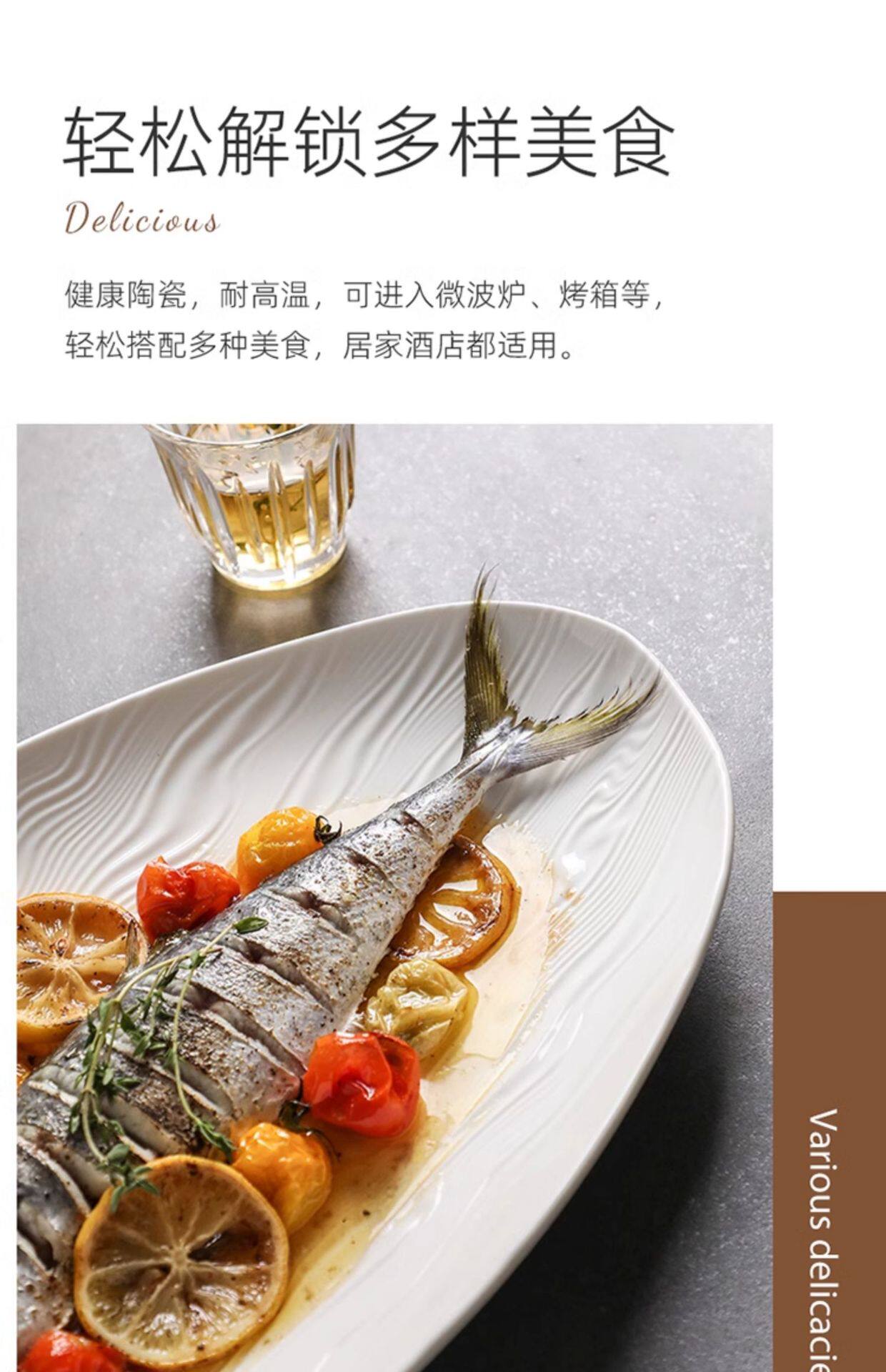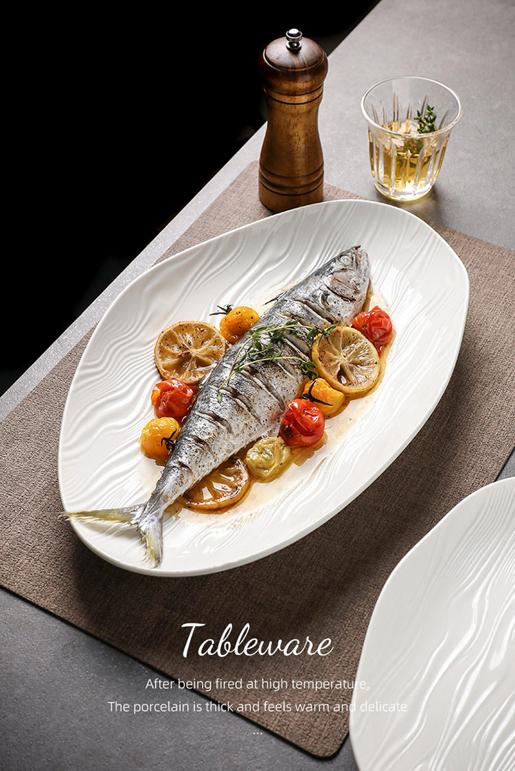 Simple Ceramic Fish Plate Large Household High-end Feeling Steamed Fish Plate High Temperature Resistant Creative Plate Irregular Oval Plate