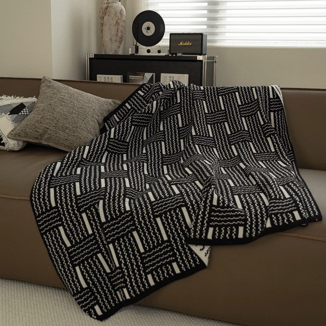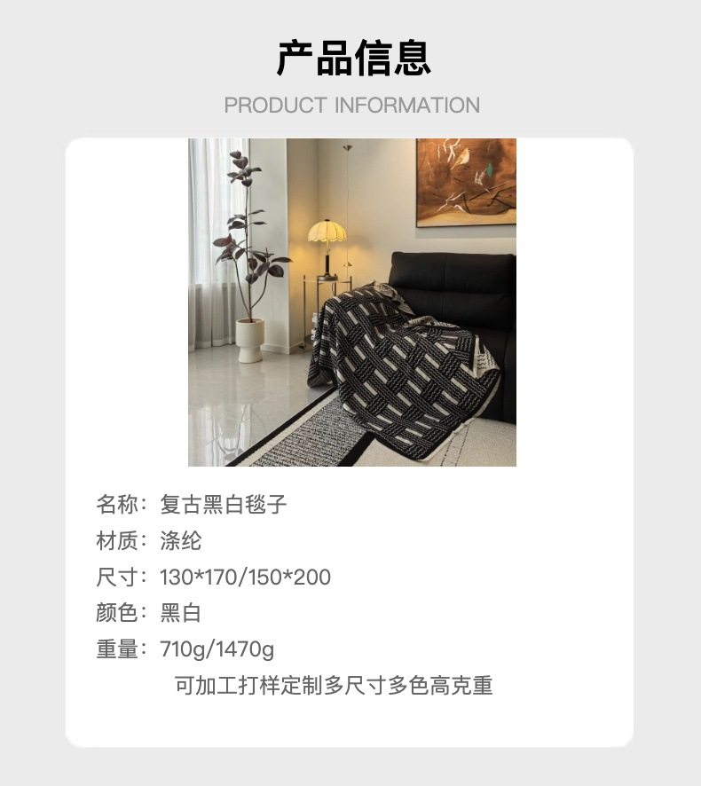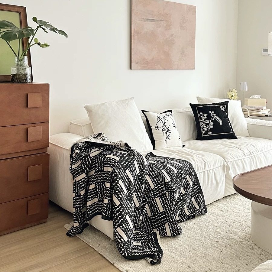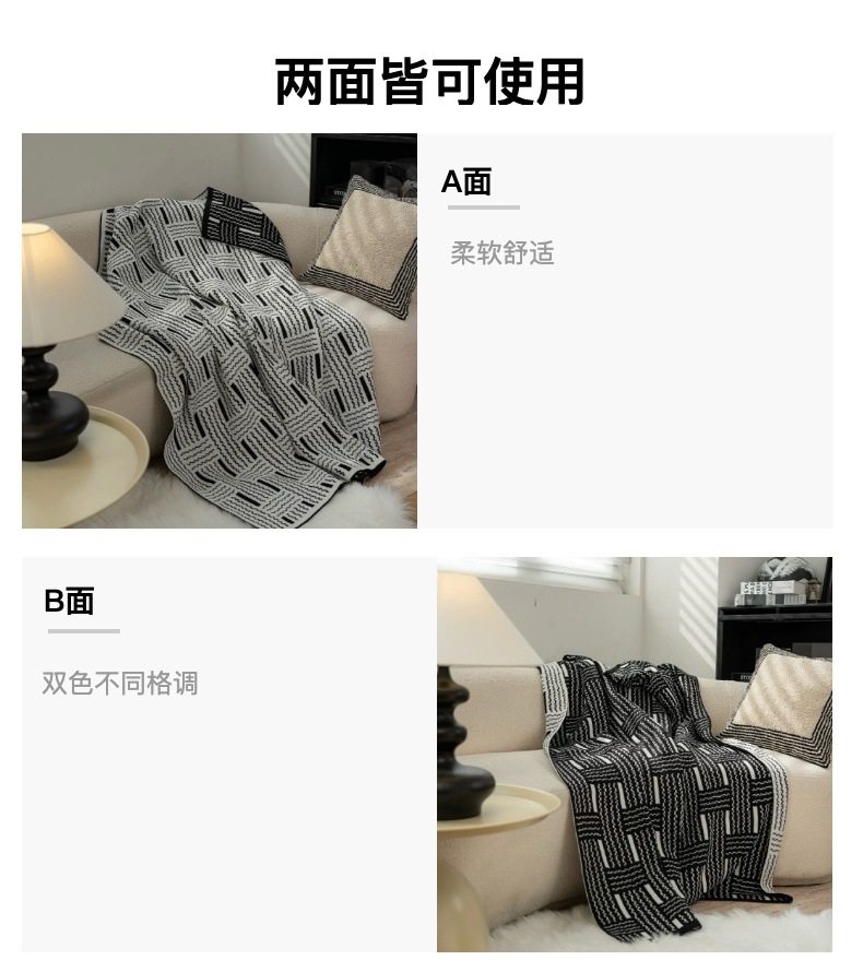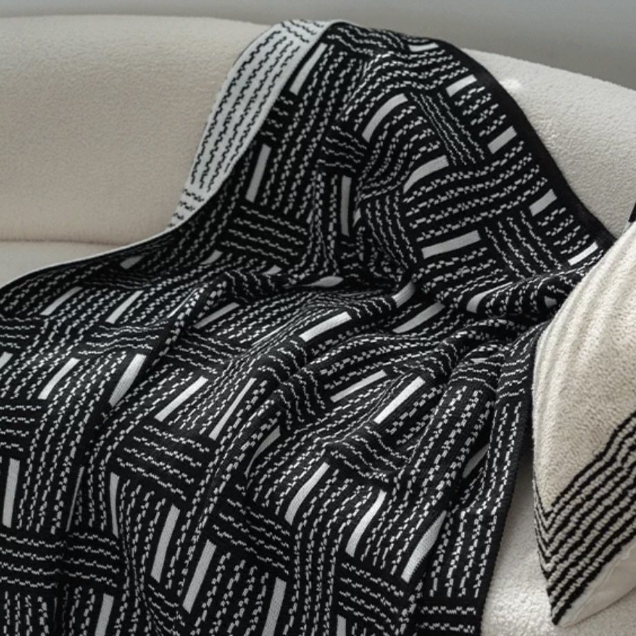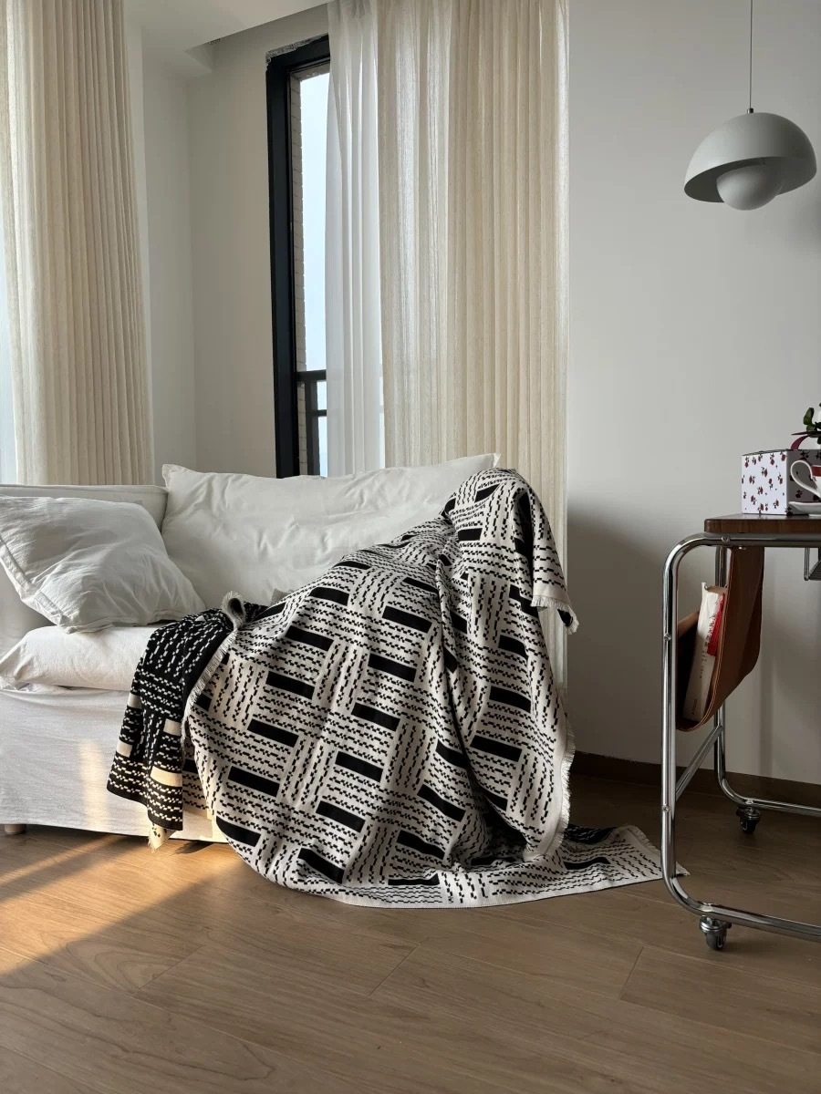 Vintage Black and White Woven High-end Sofa Blanket Office Nap Blanket Blanket Knitted Blanket Air-conditioning Quilting
