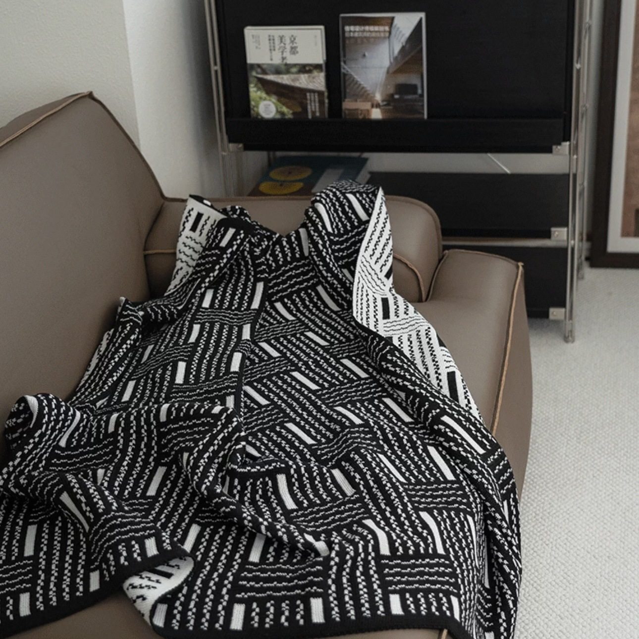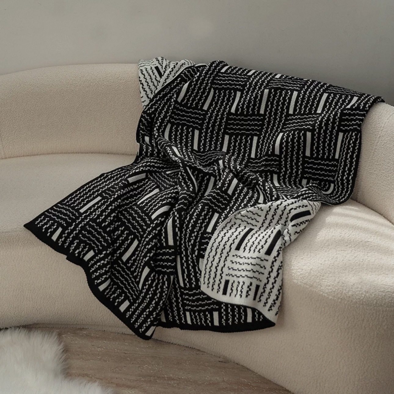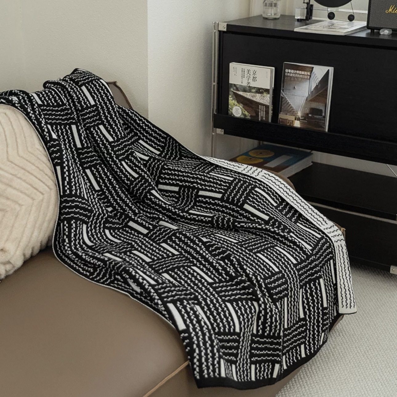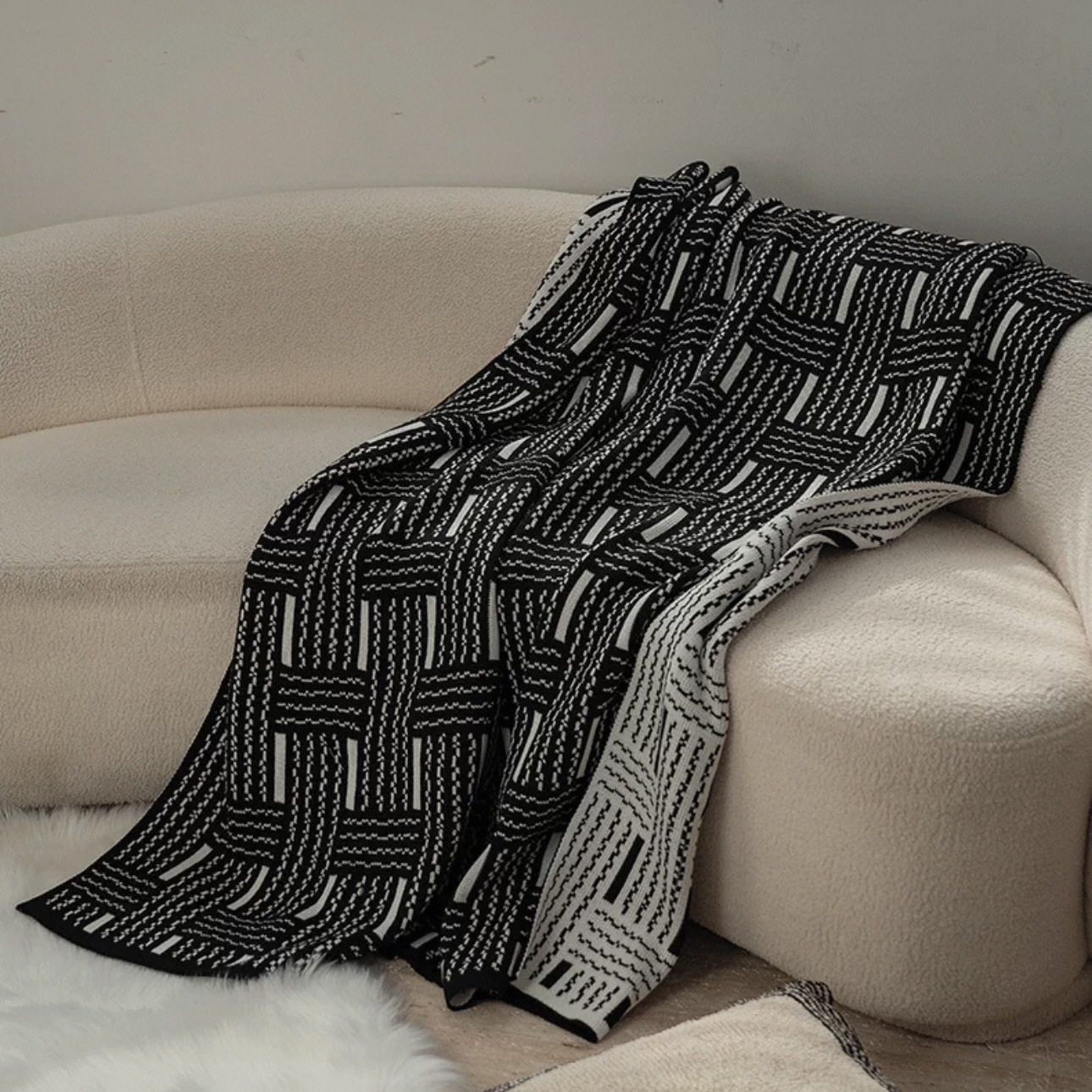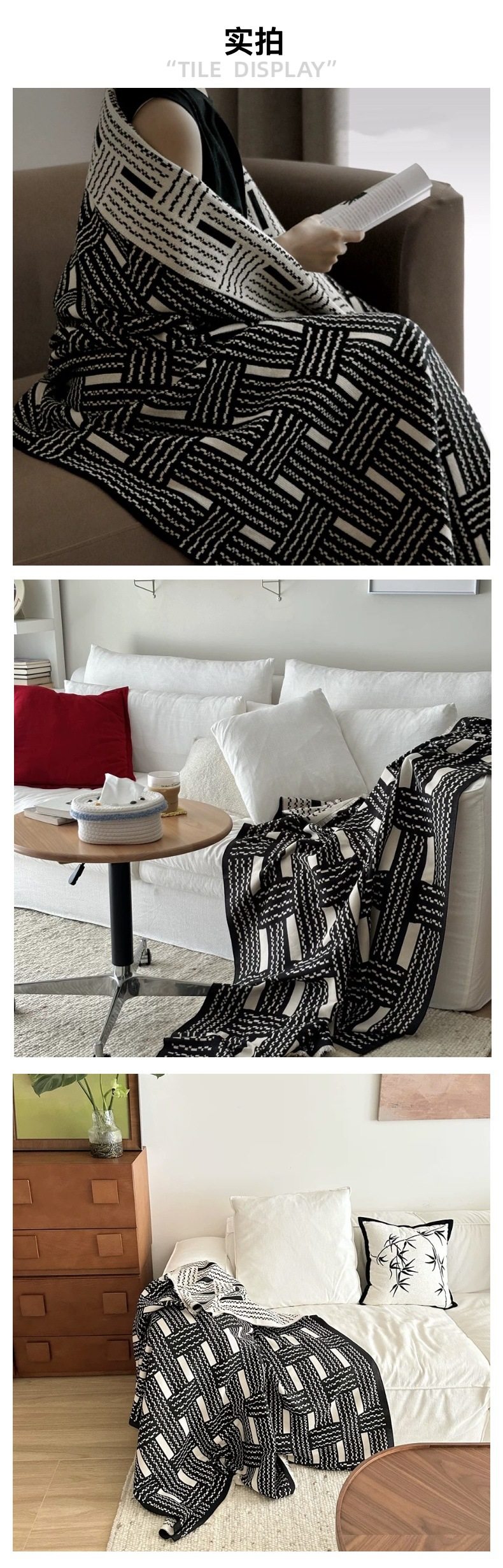 Vintage Black and White Woven High-end Sofa Blanket Office Nap Blanket Blanket Knitted Blanket Air-conditioning Quilting