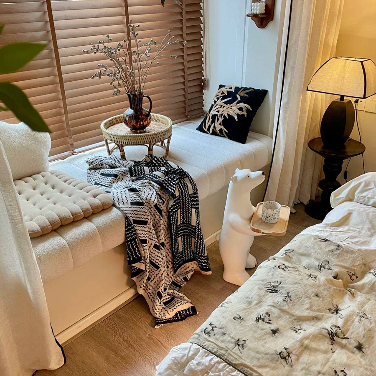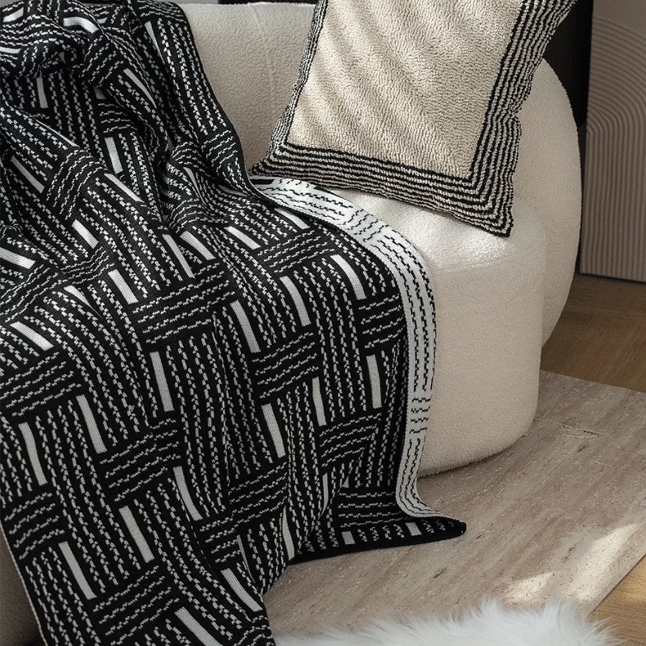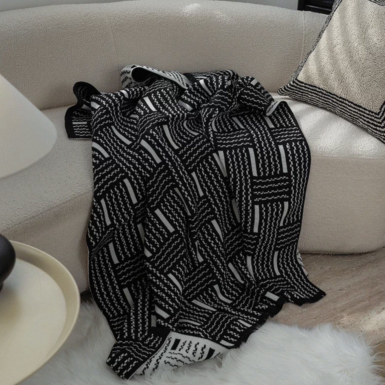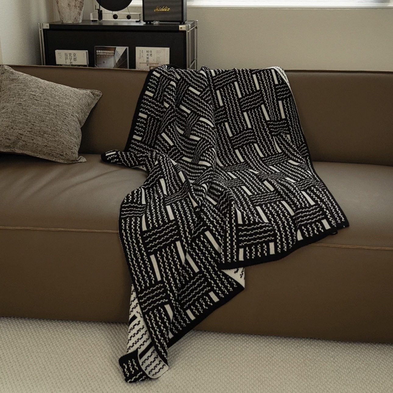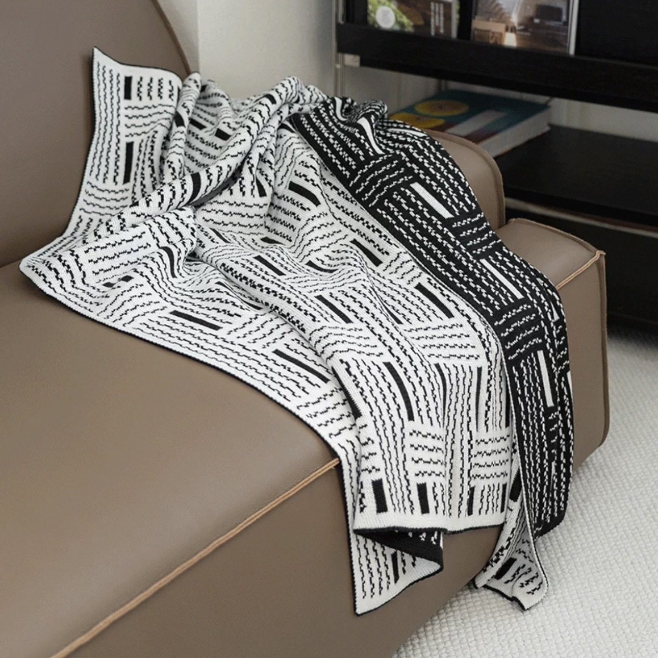 Vintage Black and White Woven High-end Sofa Blanket Office Nap Blanket Blanket Knitted Blanket Air-conditioning Quilting