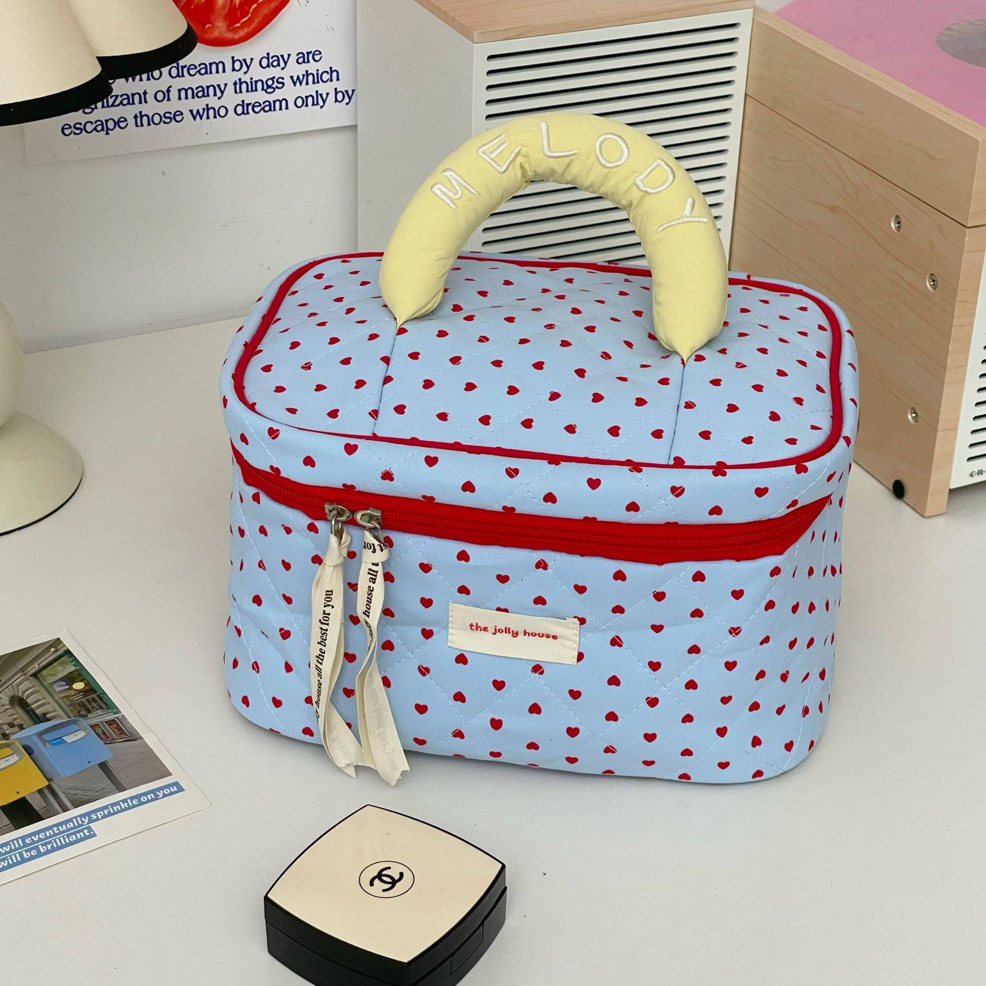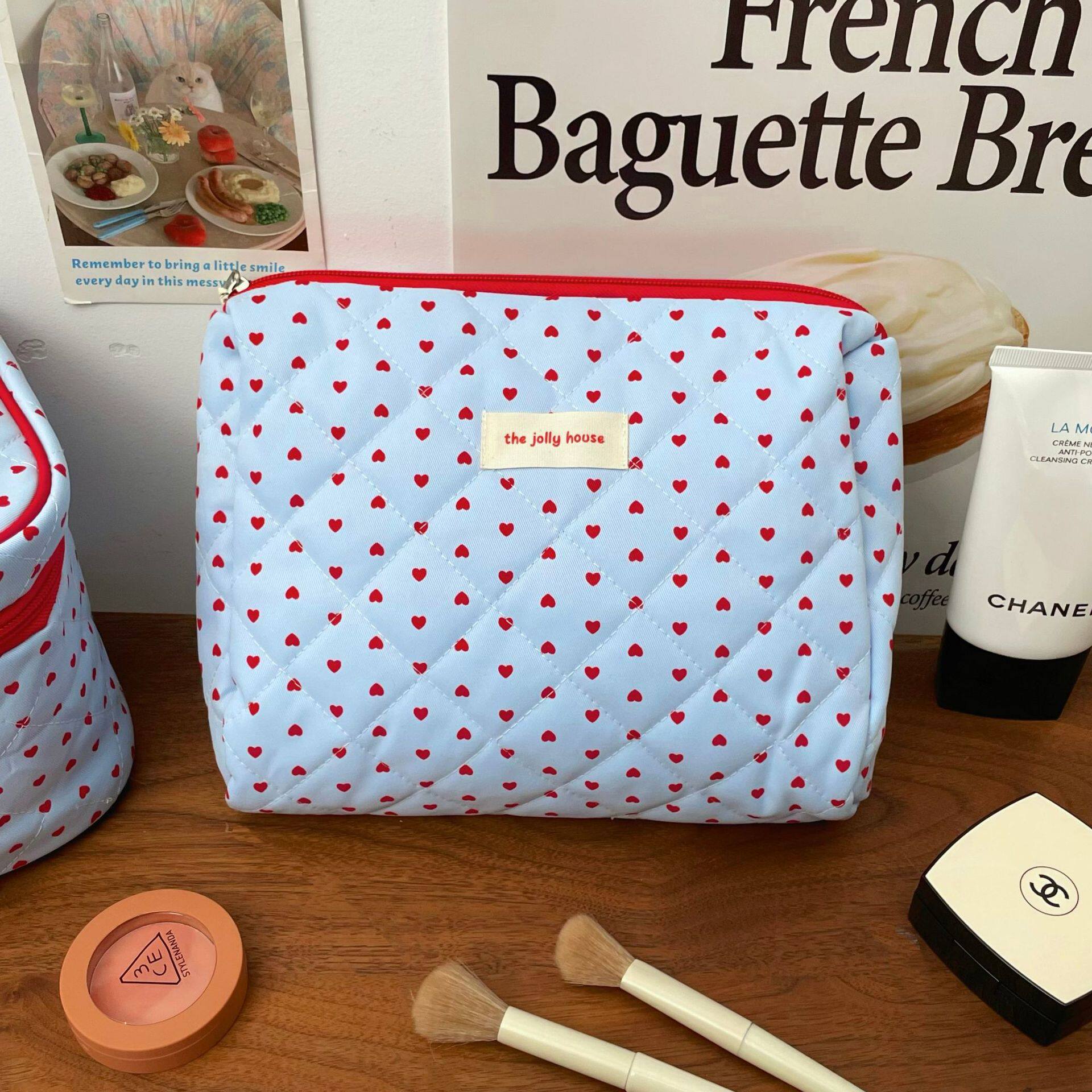 Blue Love Cosmetic Bag Women's One Piece 2025 New Portable Large Capacity Cosmetic Storage Bag Handbag