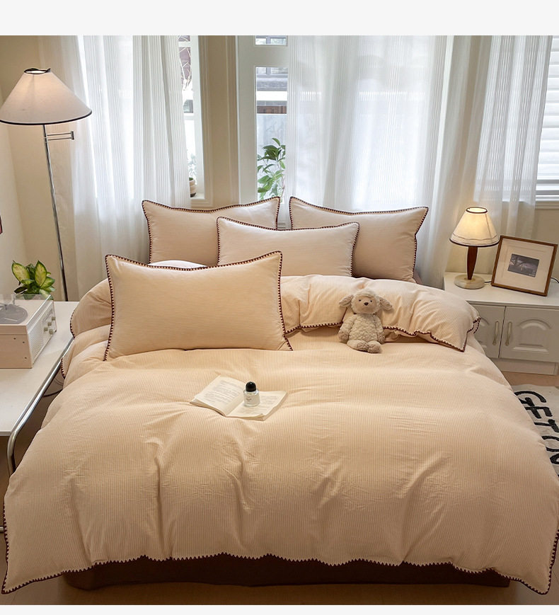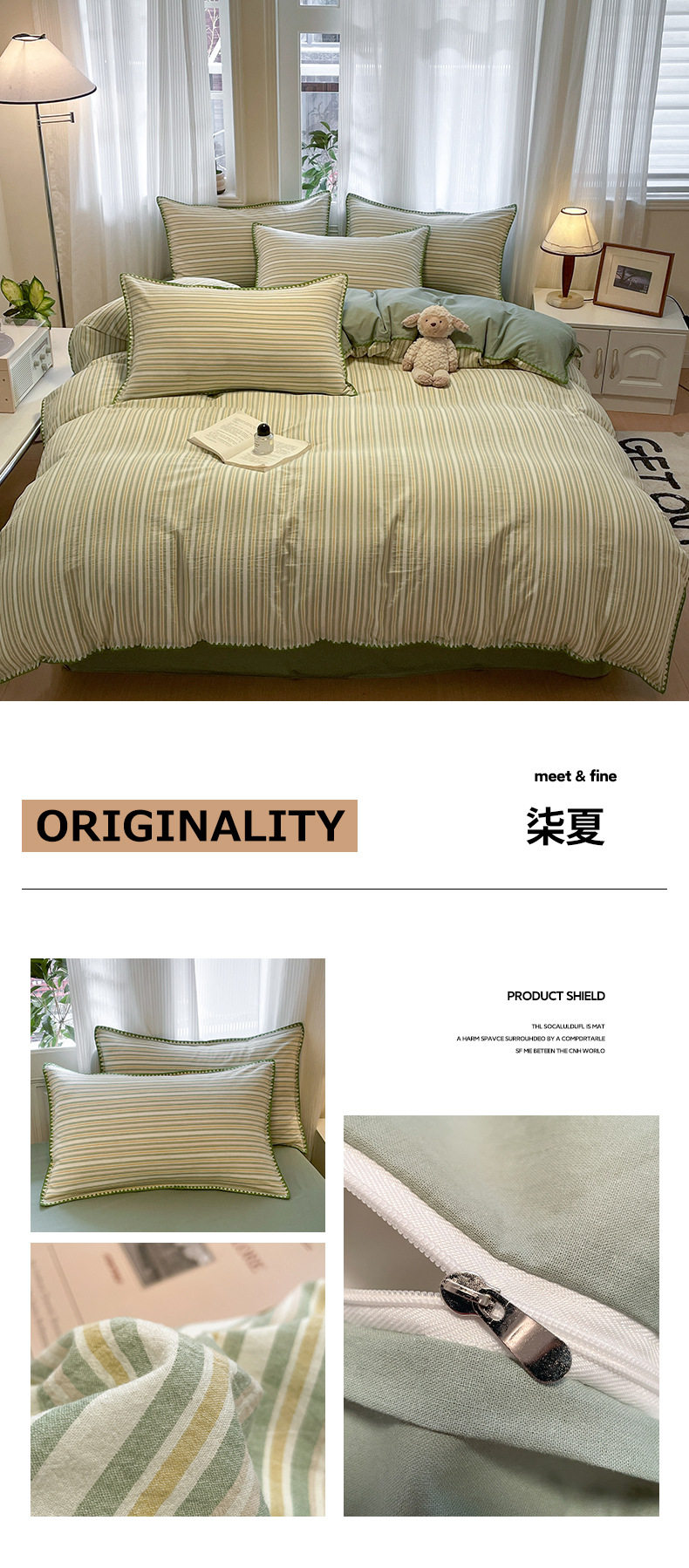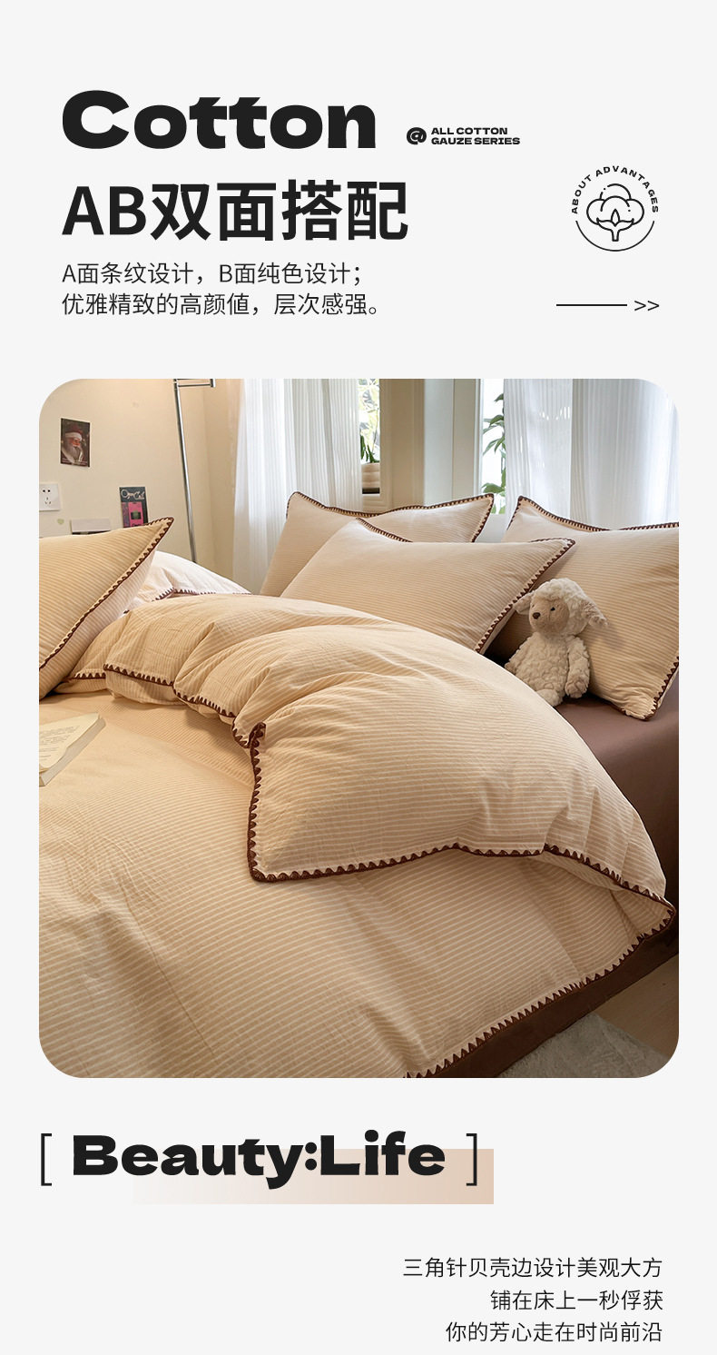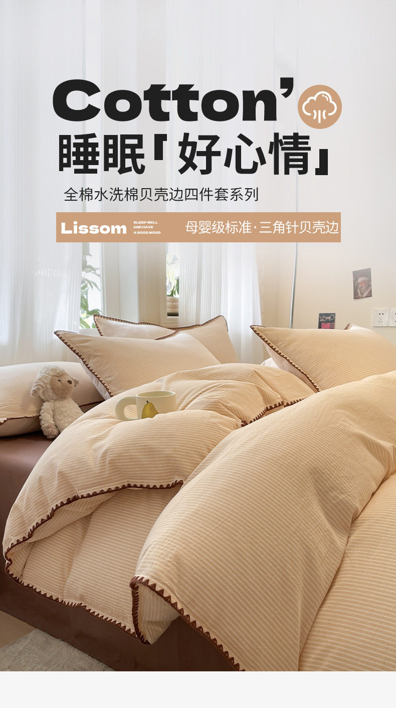 Spring Cotton Four-piece Set Class A Shell Edge Cotton Quilt Cover Nantong Bedding Wash Cotton Bed Sheet Three-piece Set