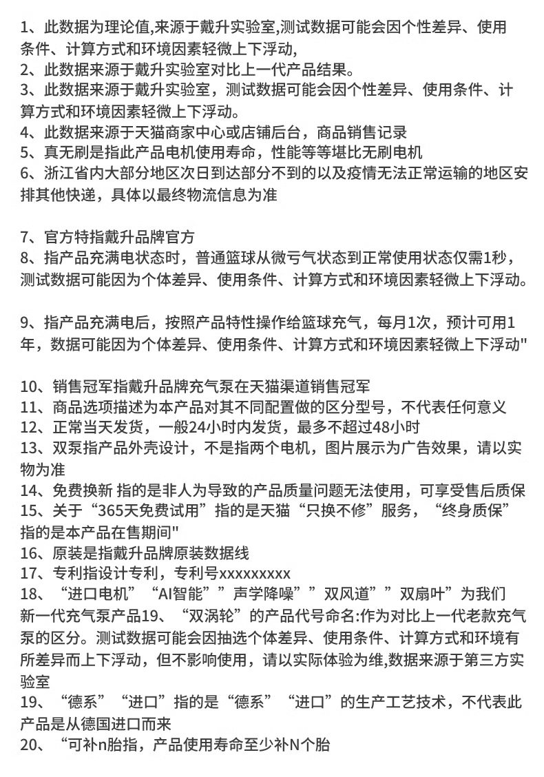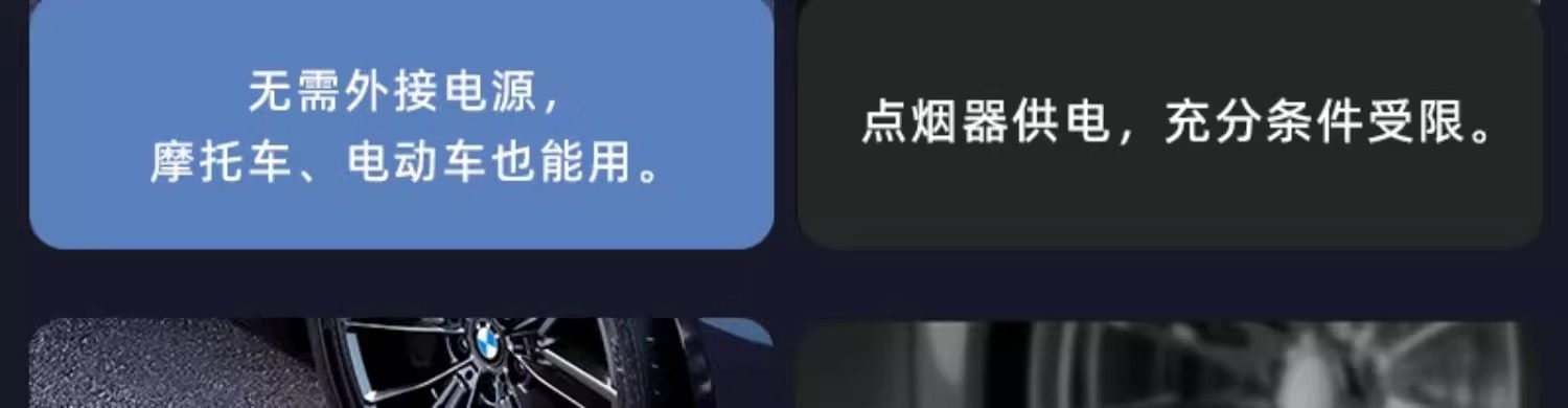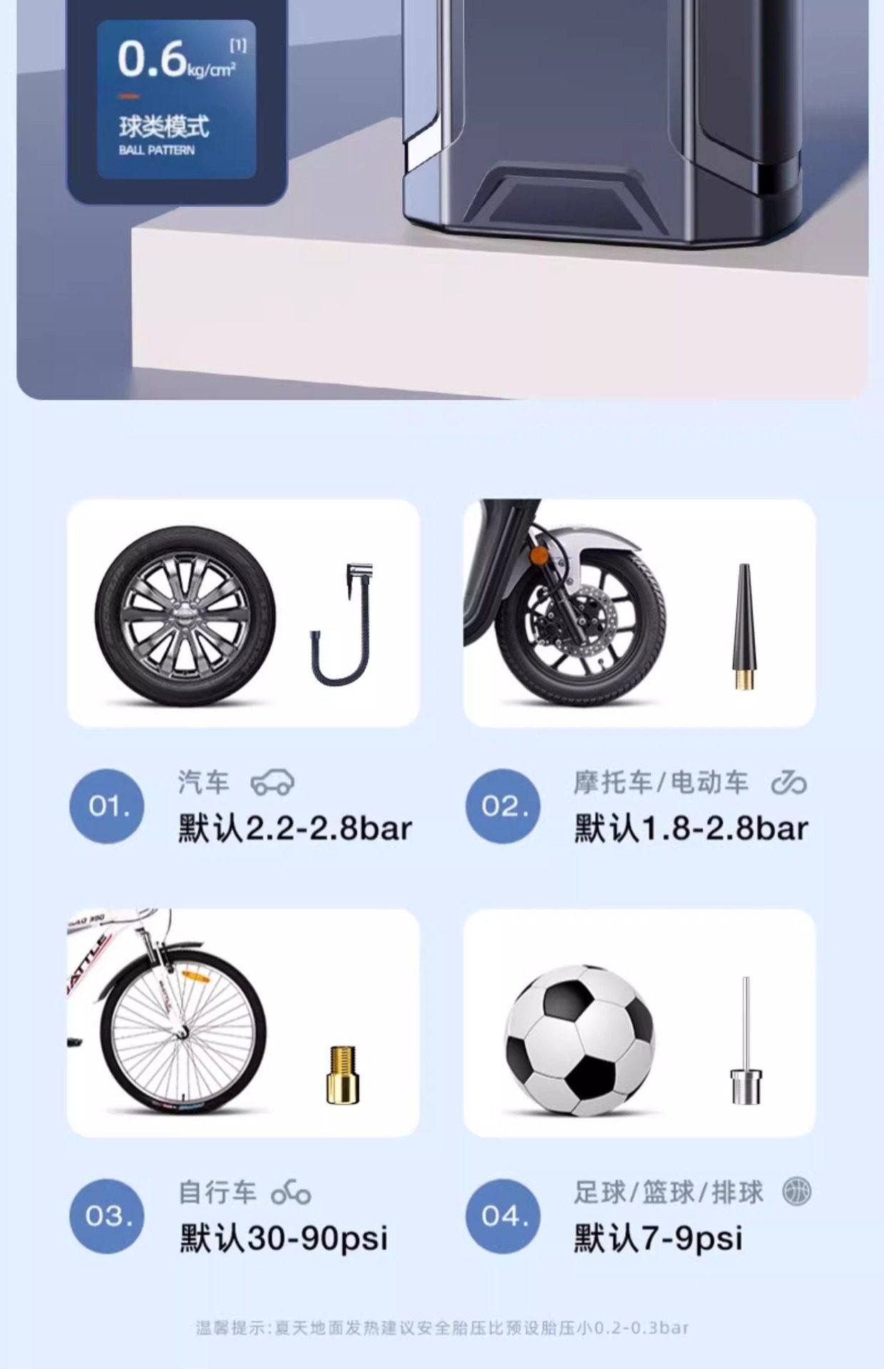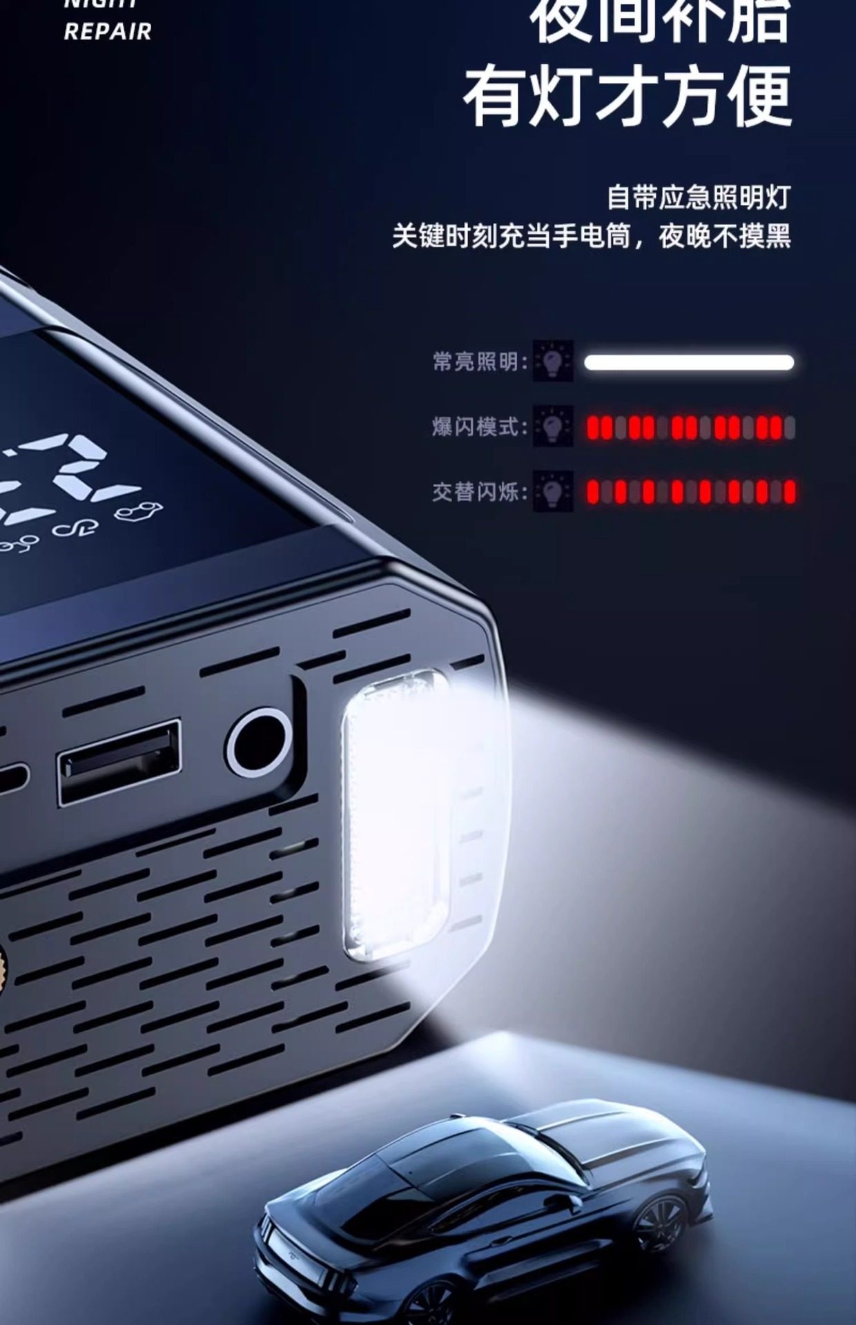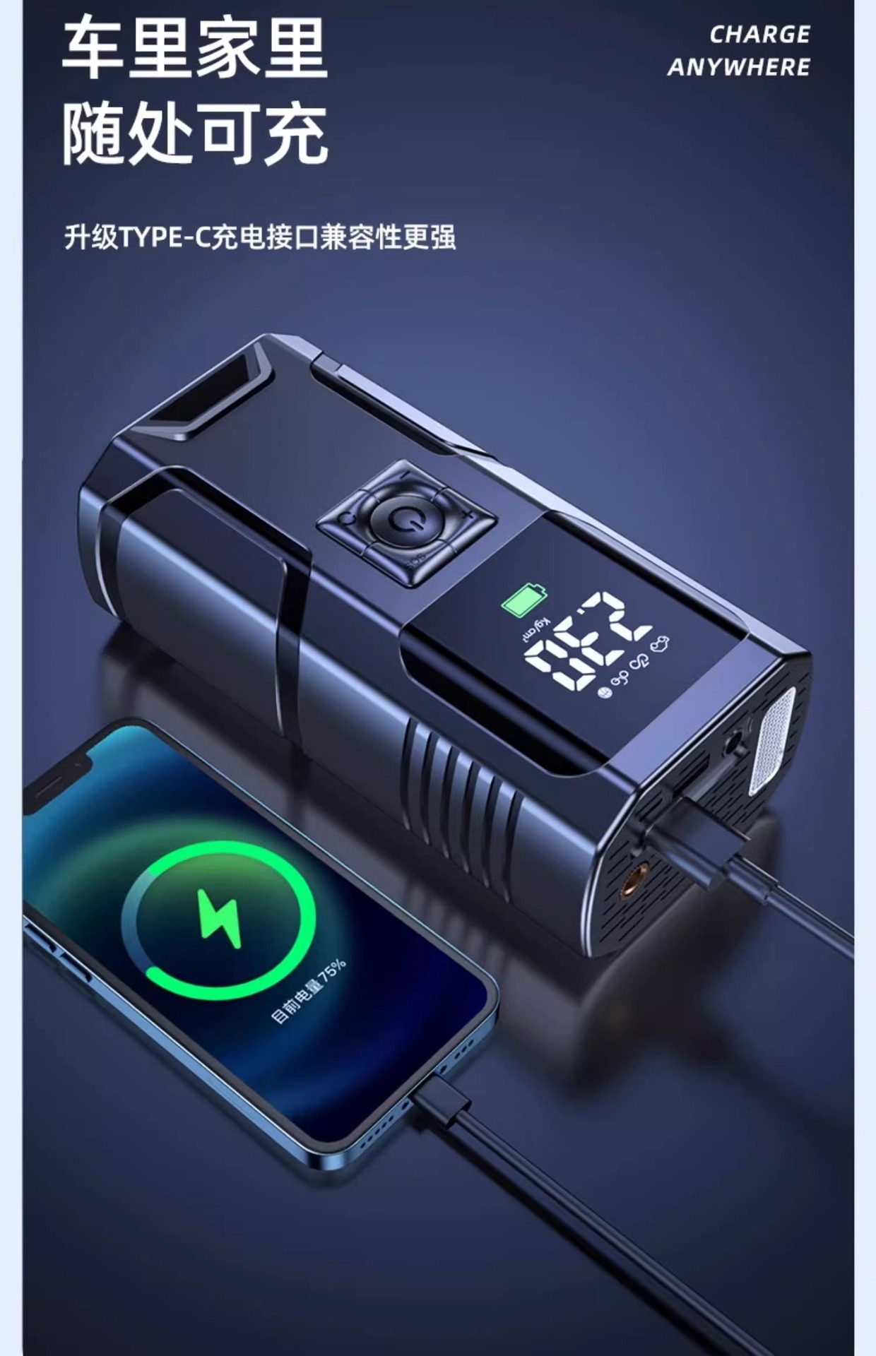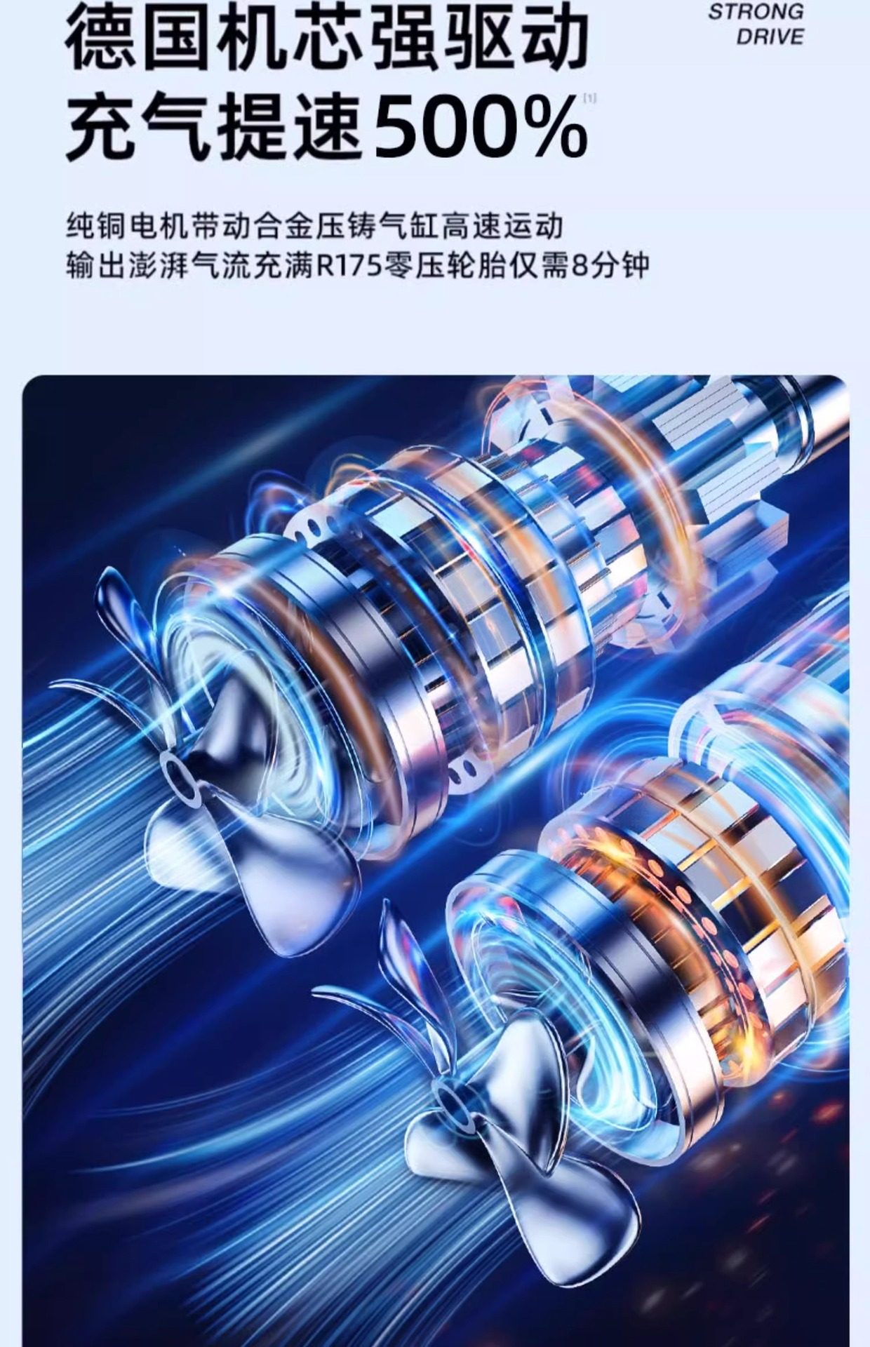 | Specification | [german wired digital display model] pump driving force, quick air replenishment in 5 seconds, free inflation kit (used by plugging in the cigarette lighter),[brushless luxury model can be used as a power bank] 5 seconds fast charging, speed increased by 100%, german ai battery, emergency lighting, cold nitrogen tire protection, automatic charging and stopping,[wireless classic model] german ai battery cell, cold nitrogen-filled tire protection, 2-second fast charging, poly-voltage lithium battery fast charging, automatic charging and stopping, free inflation kit,[can be used wirelessly or wired] german ai battery cell, cold nitrogen-filled tire protection, 2-second fast charging, poly-voltage lithium battery fast charging, automatic charging and stopping, free inflation kit,[brushless three-purpose luxury model] plug-in/rechargeable dual-use, speed increased by 150%, german ai battery core, cold nitrogen tire protection, used as power bank, emergency lighting |