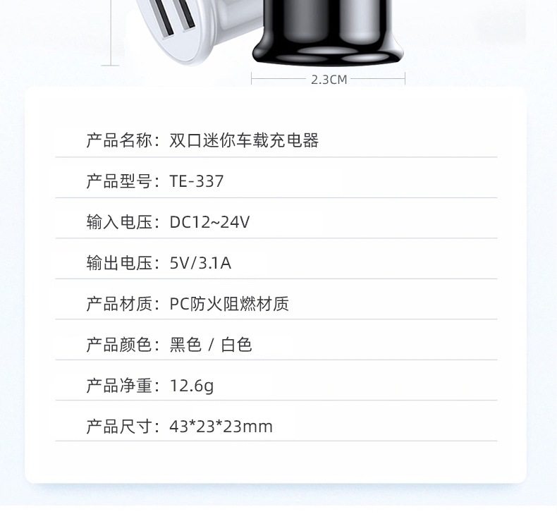 | Selling point 1 | Super mini car charger takes up no space |