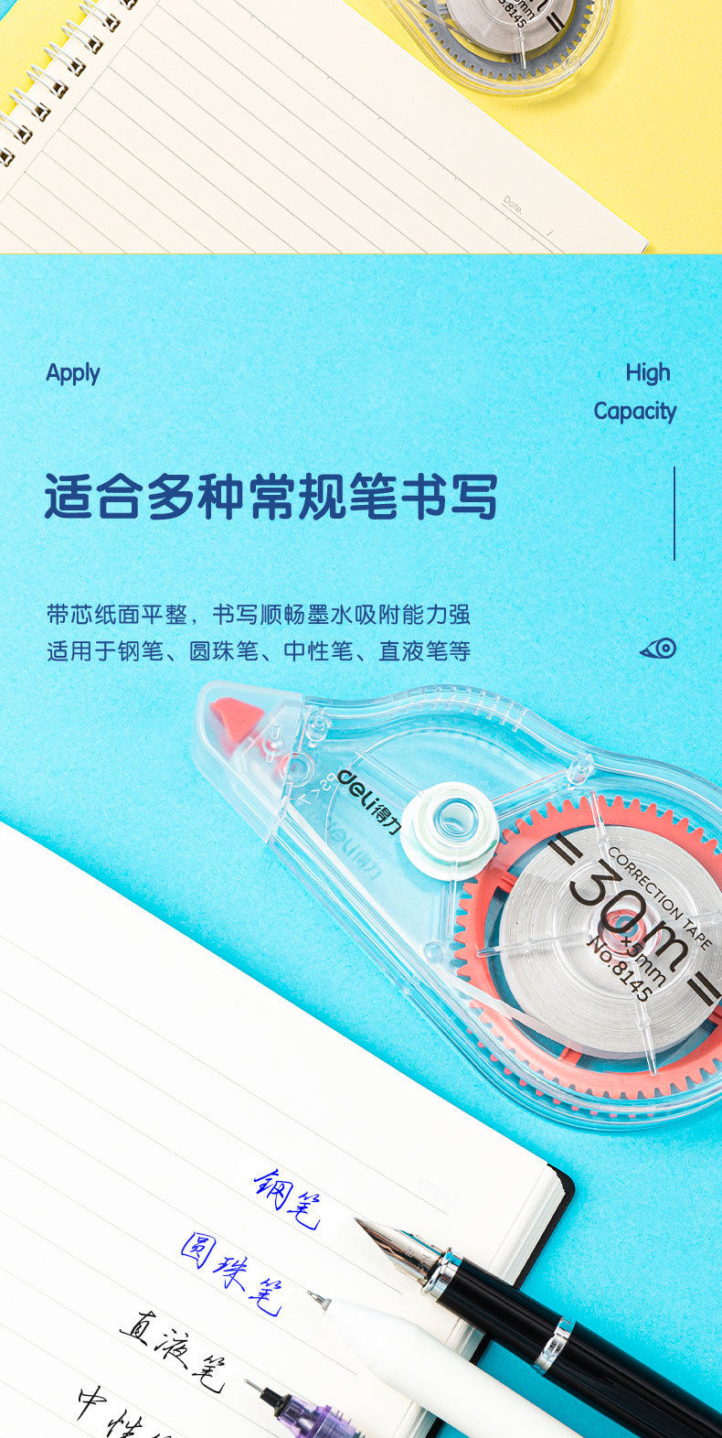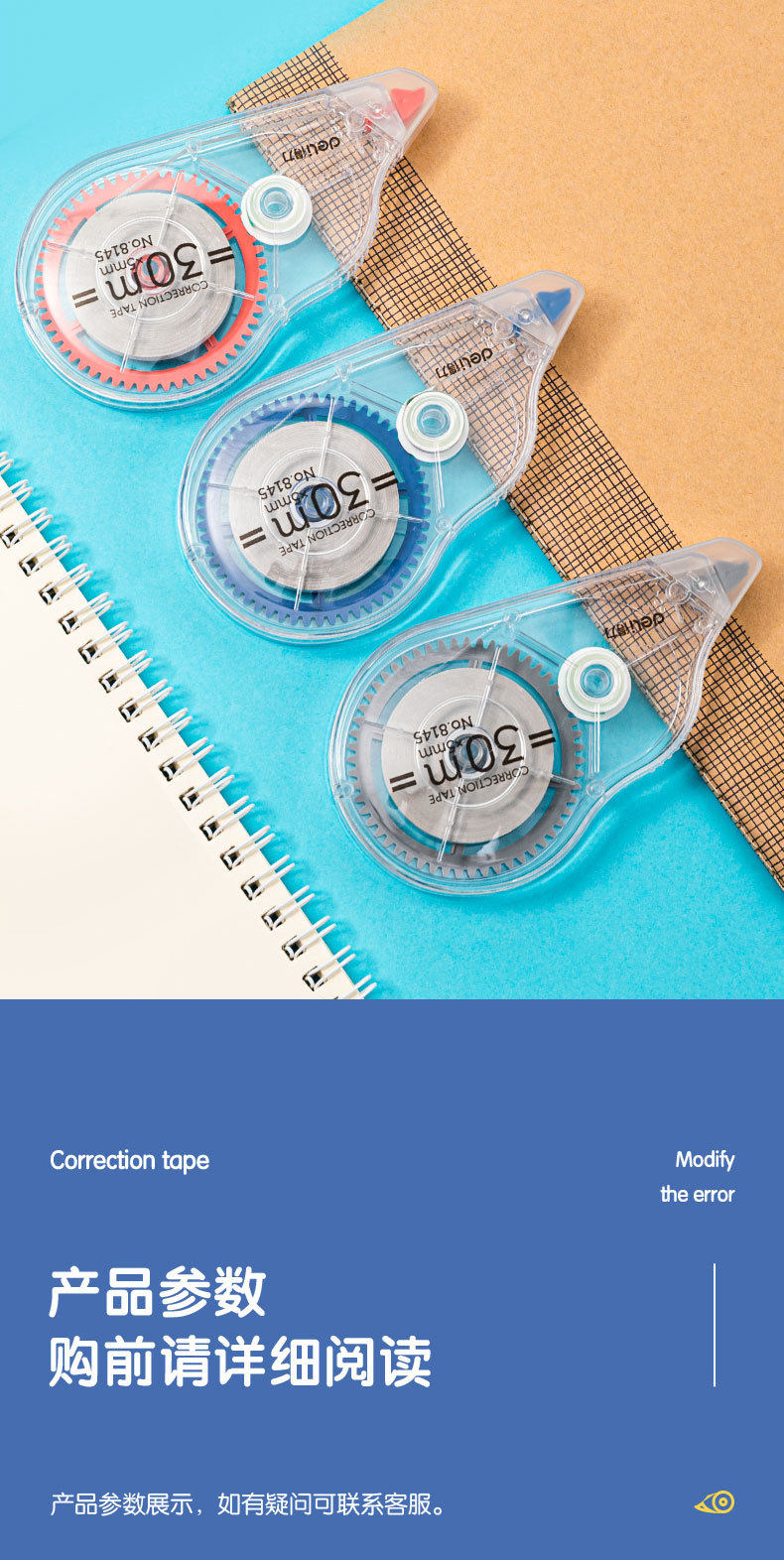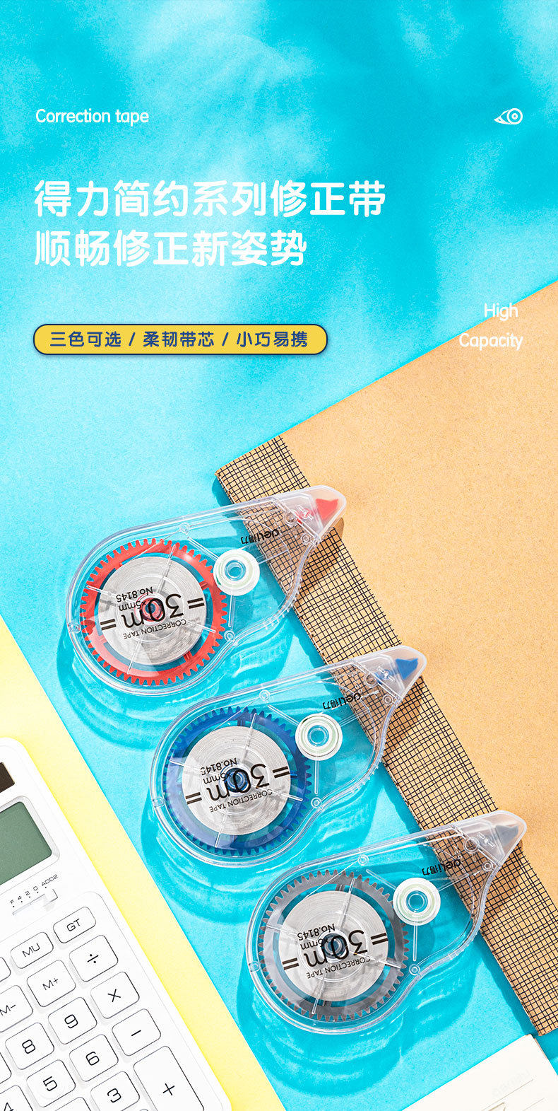 Deli 8145 Student Correction Belt Large Capacity 30 m Not Easy to Break Correction Belt Office Correction Belt Stationery