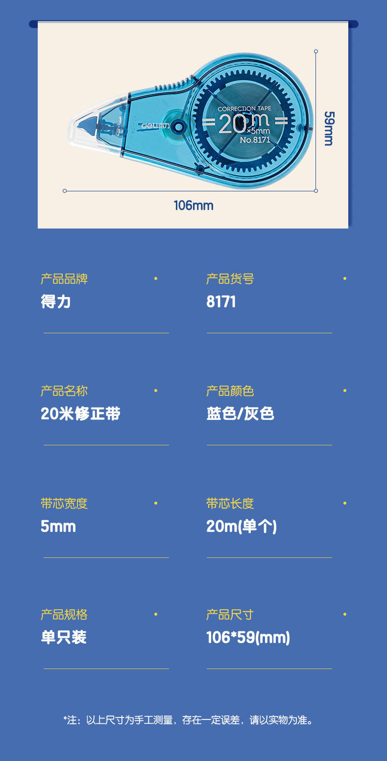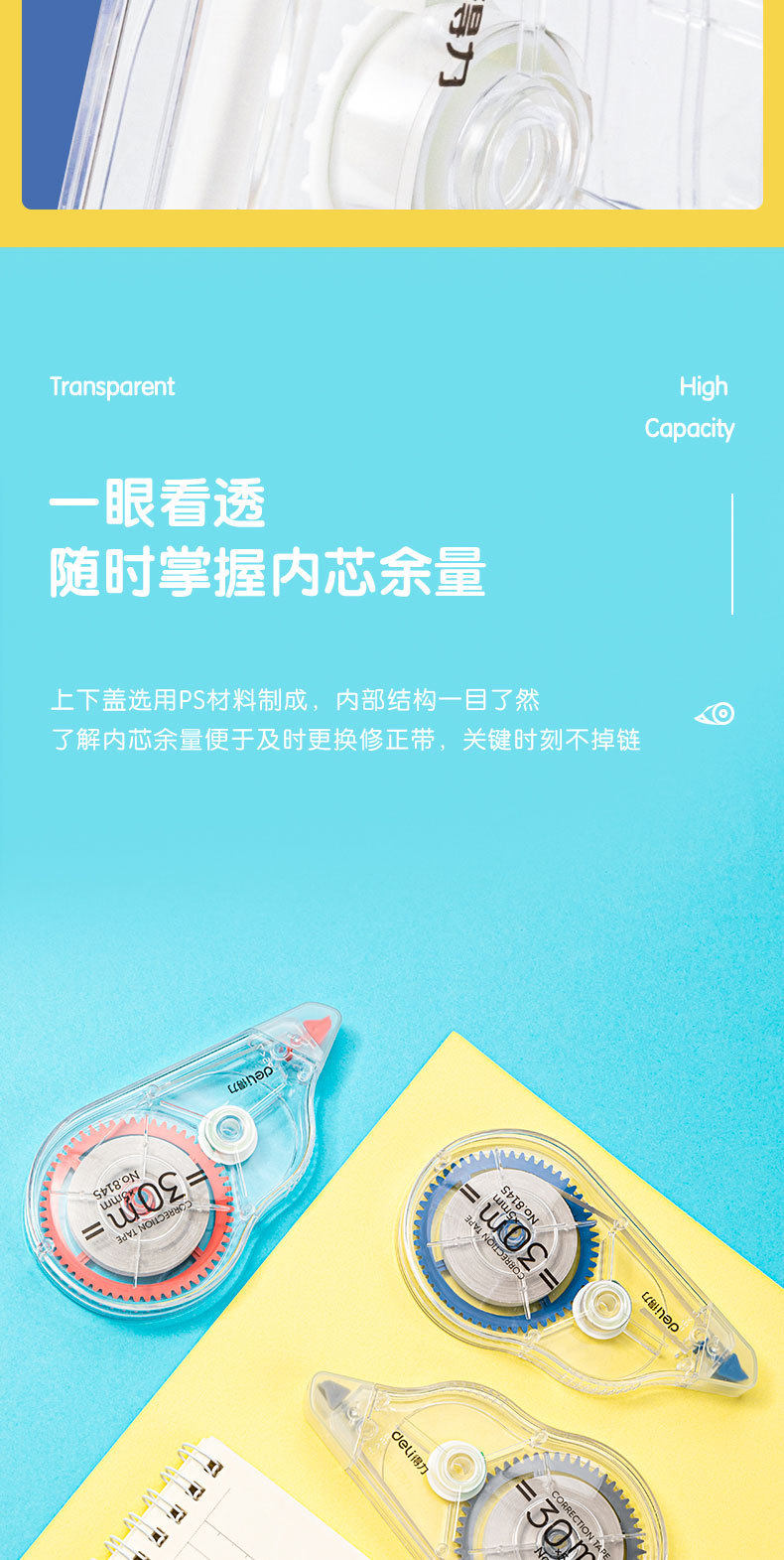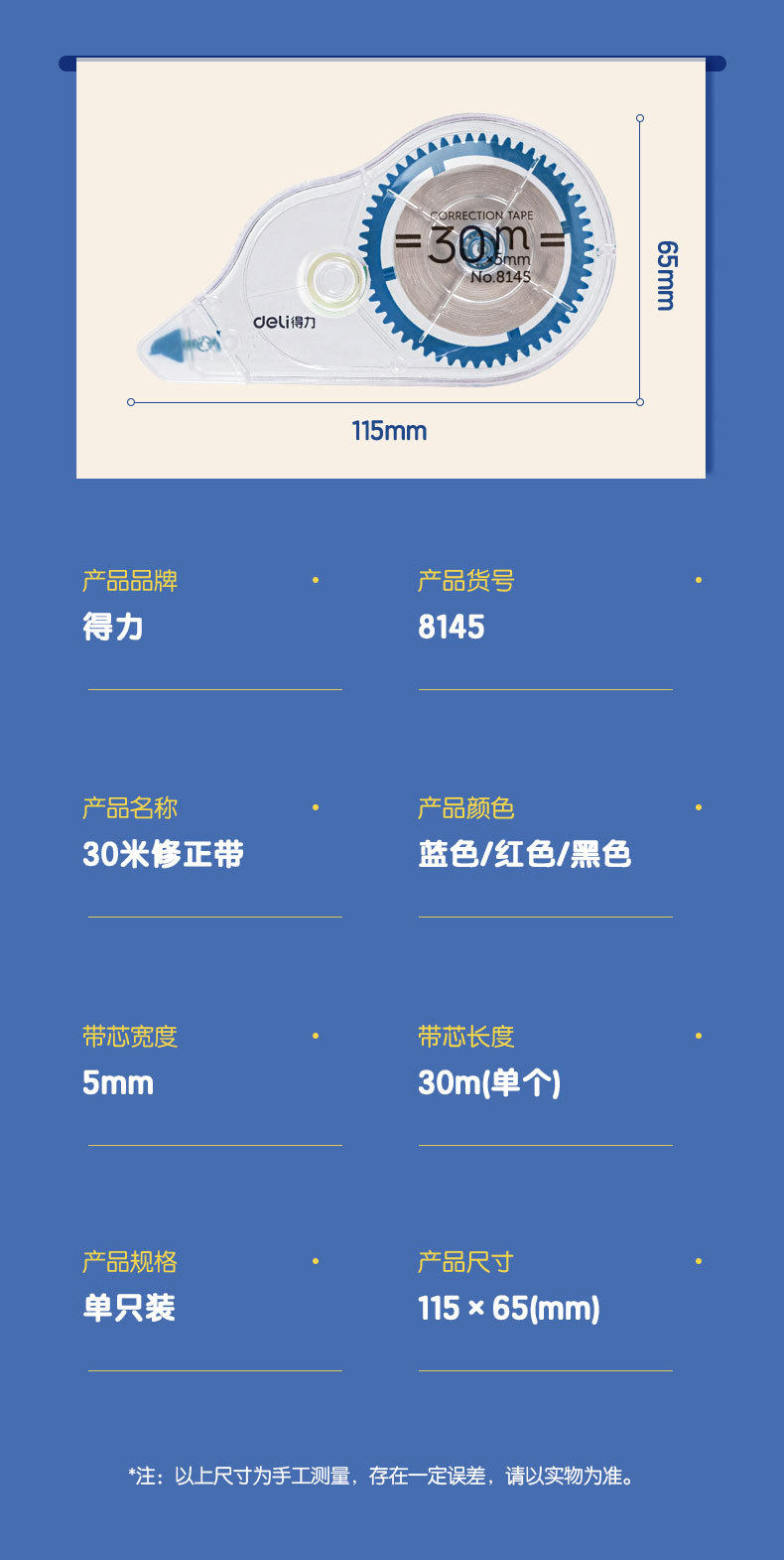 Deli 8145 Student Correction Belt Large Capacity 30 m Not Easy to Break Correction Belt Office Correction Belt Stationery