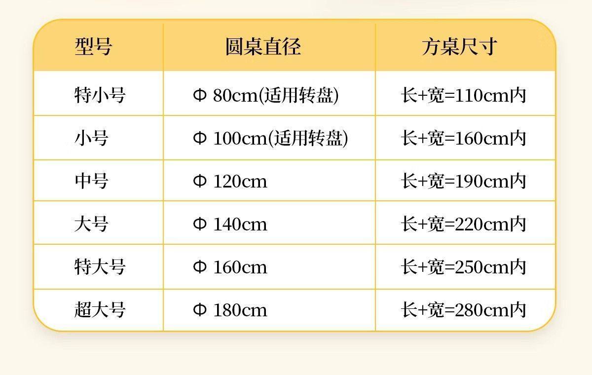| Specification | [universal for square and round tables] pack of 10 pieces. round table: diameter 0.8mcm. square table length and width less than 110cm,[universal for square and round tables] pack of 10 pieces. round table: diameter 1mcm. square table length and width less than 140cm,[universal for square and round tables] pack of 10 pieces. round table: diameter 1.2mcm. square table length and width less than 170cm,[universal for square and round tables] pack of 10 pieces. round table: diameter 1.3mcm. square table length and width less than 180cm,[universal for square and round tables] pack of 10 pieces. round table: diameter 1.4mcm. square table length and width less than 200cm,[universal for square and round tables] pack of 10 pieces. round table: diameter 1.5mcm. square table length and width less than 220cm,[universal for square and round tables] pack of 10 pieces. round table: diameter 1.6mcm. square table length and width less than 230cm,[universal for square and round tables] pack of 10 pieces. round table: diameter 1.8mcm. square table length and width less than 260cm,[universal for square and round tables] pack of 10 pieces. round table: diameter 2mcm. square table length and width less than 300cm,[universal for square and round tables] pack of 10 pieces. round table: diameter 2.2mcm. square table length and width less than 330cm |