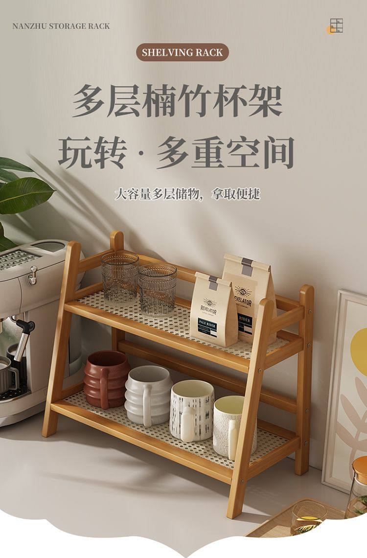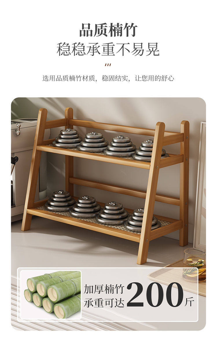 Rattan Trapezoidal Storage Rack Simple Bookshelf Bedroom Living Room Balcony Storage Rack Floor Multi-layer Storage Rack