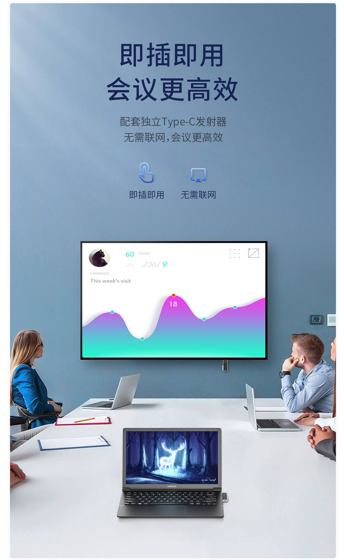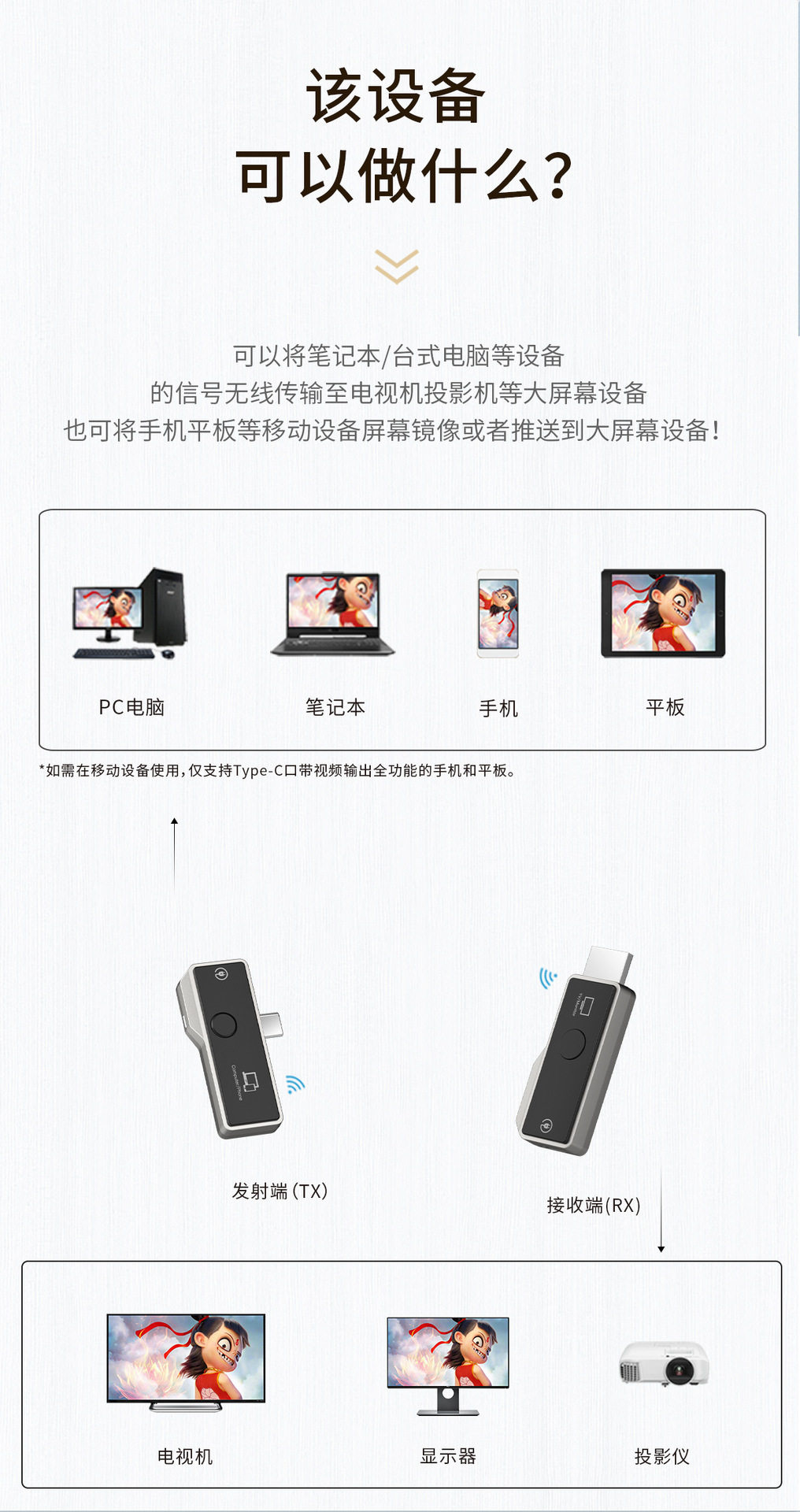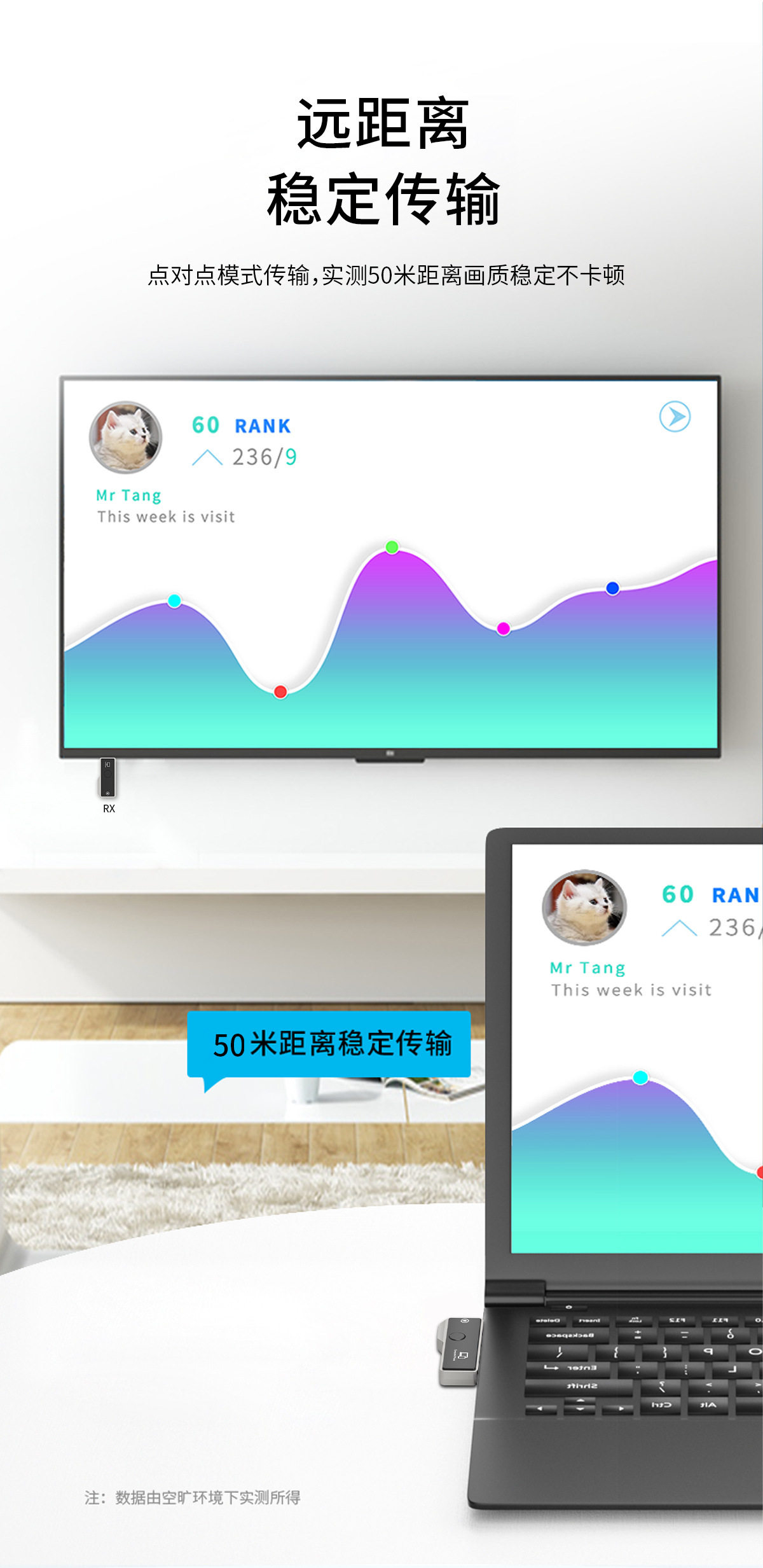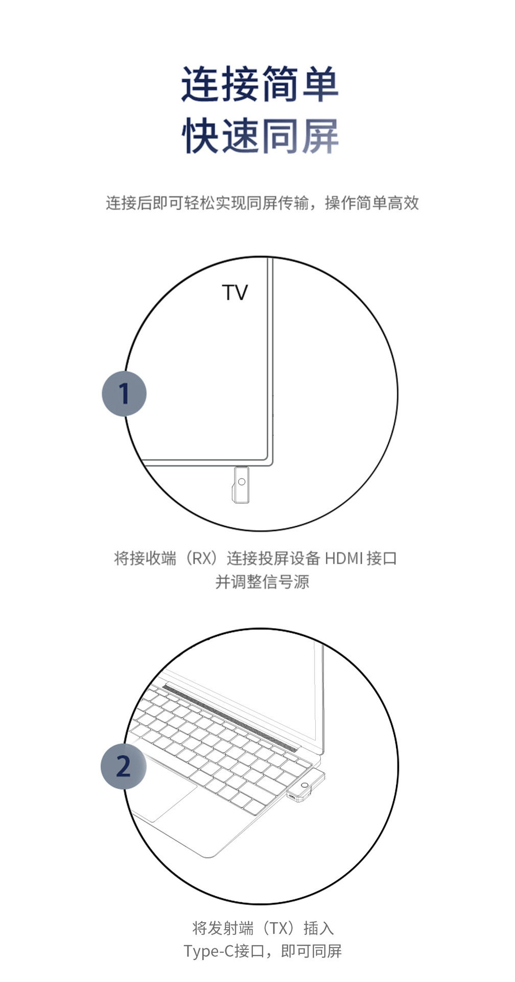 Wireless HDMI point-to-point screen projection, no wiring, no need to drive app, plug and play