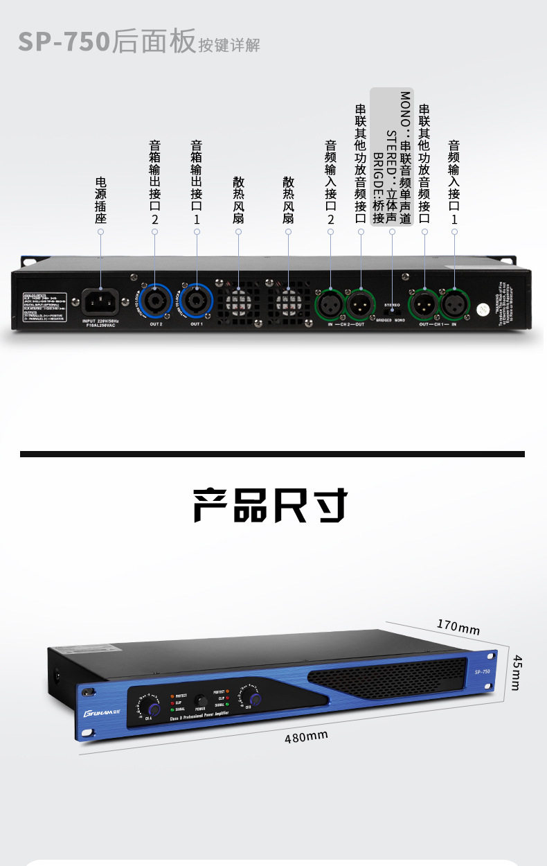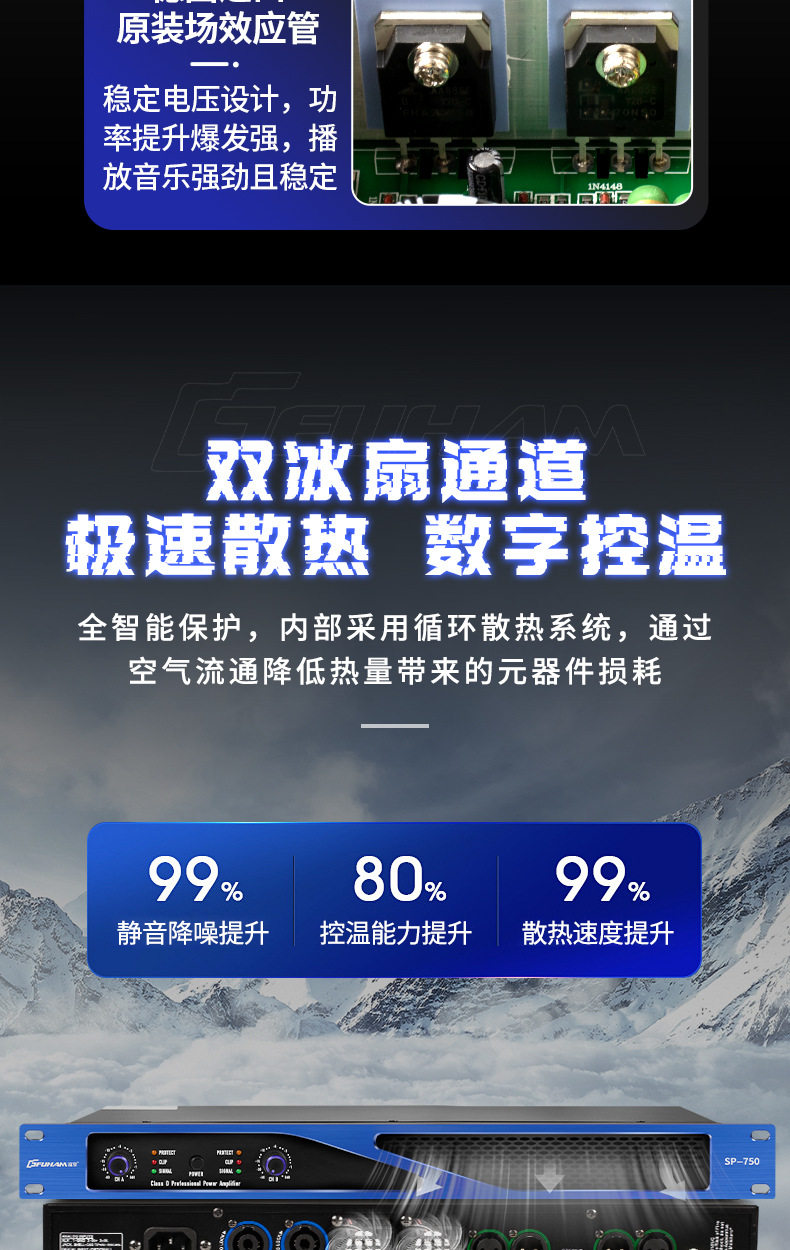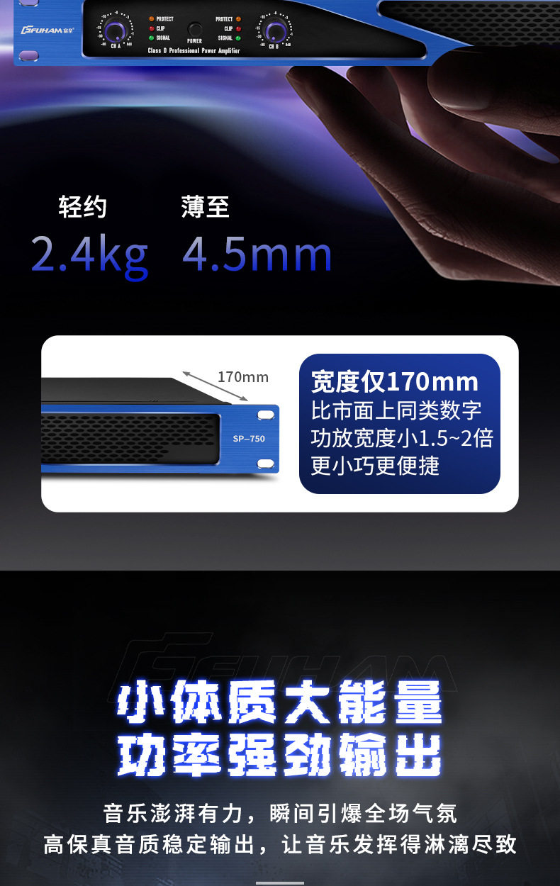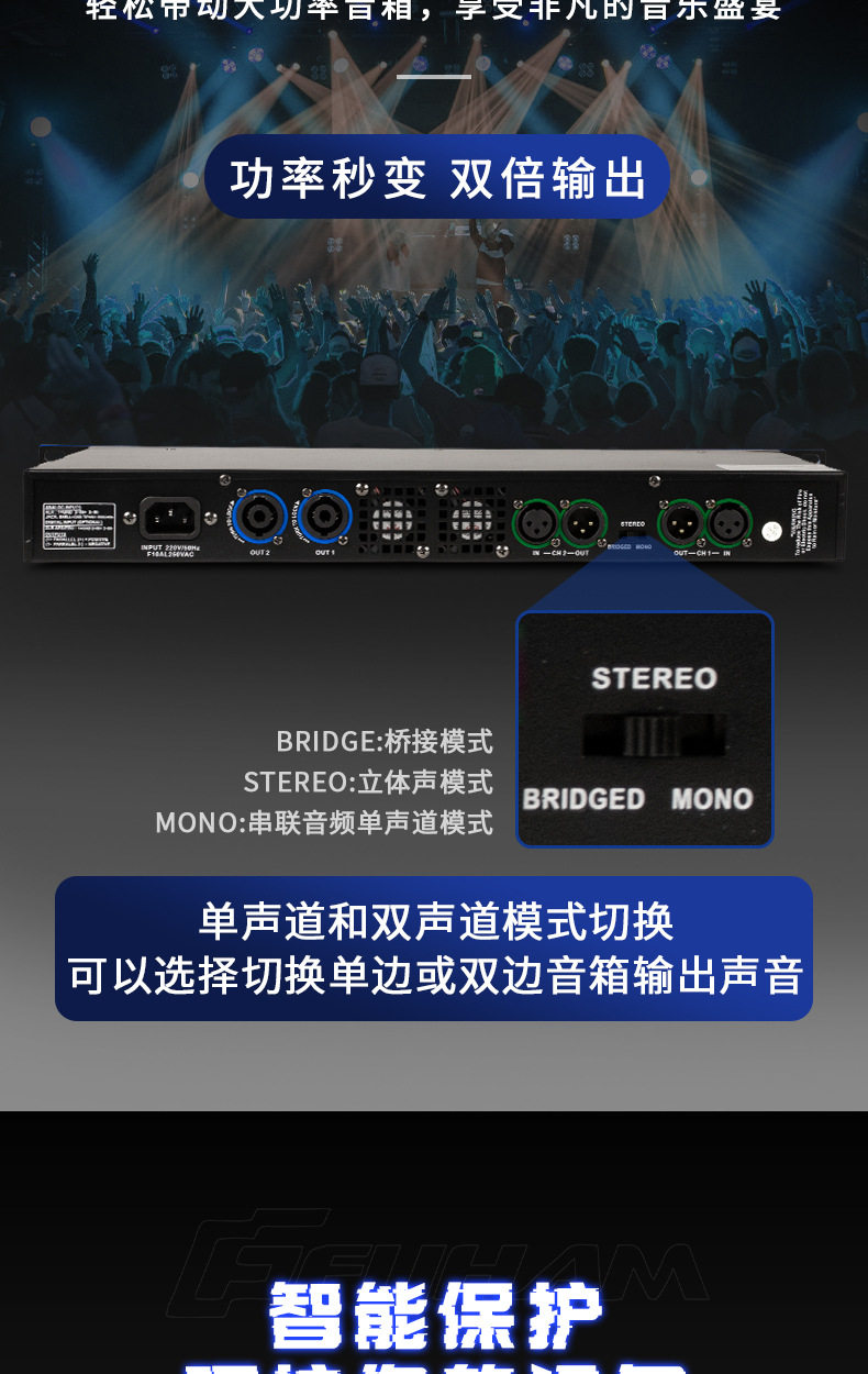 Cross-border digital power amplifier professional post-stage high-power bass two-channel family ktv stage factory outlet