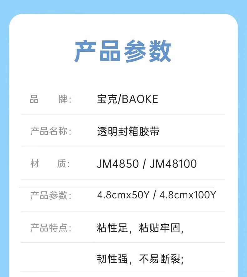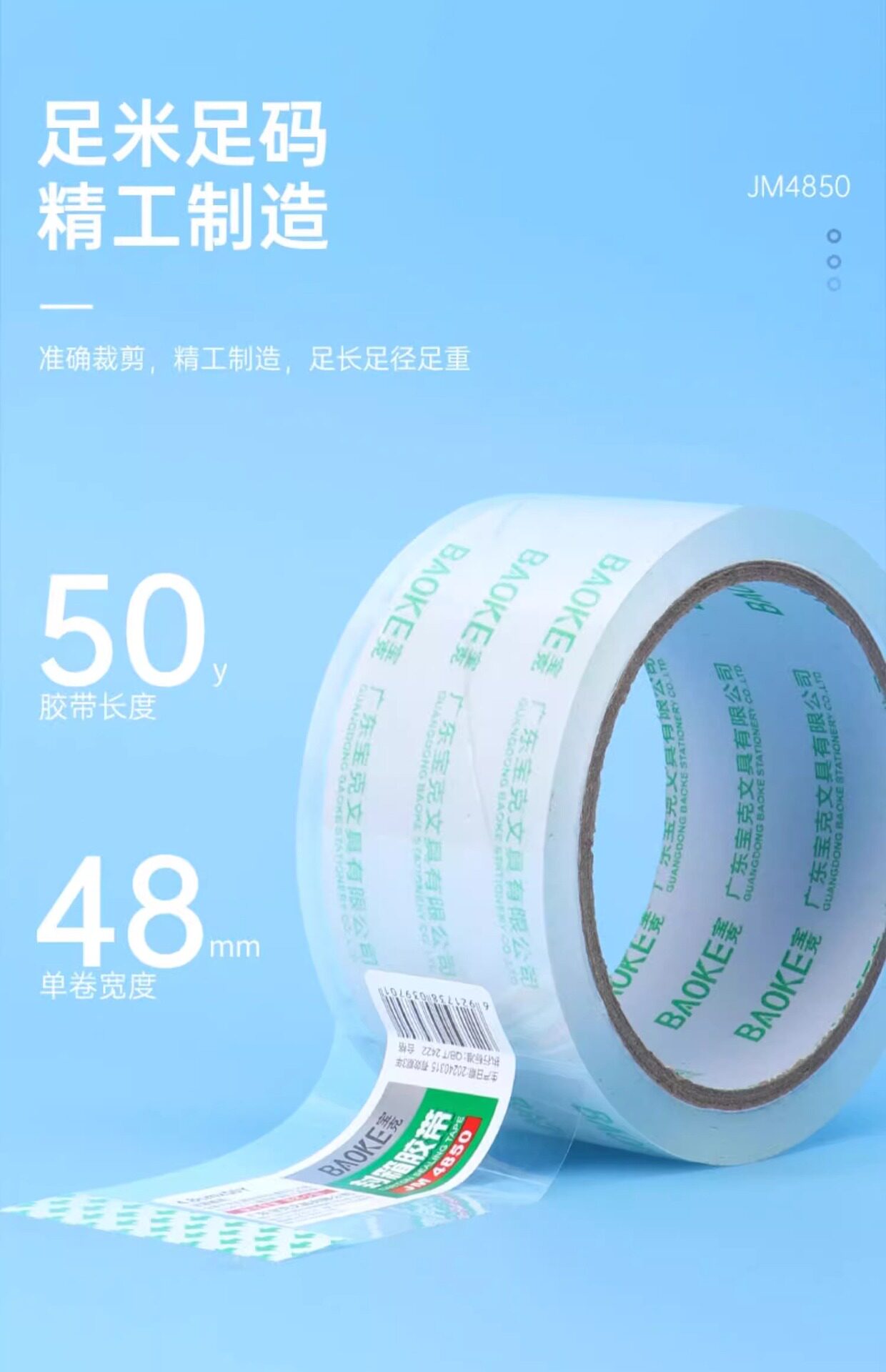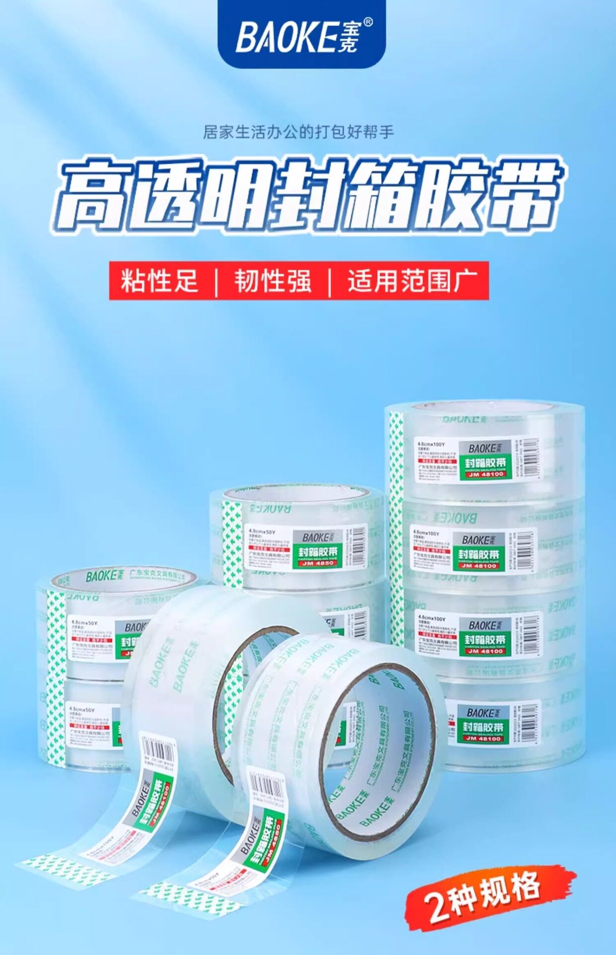 Baoke High Transparent Tape Sealing Express Packaging Large Roll Tape Daily Office 4.8/6cm Wide Extra Long Tape