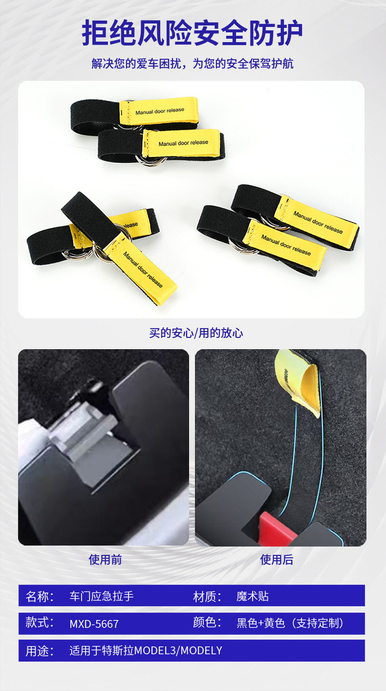 Tesla ModlY/ModlY3 door emergency safety pull rope physical door lock rear door emergency handle