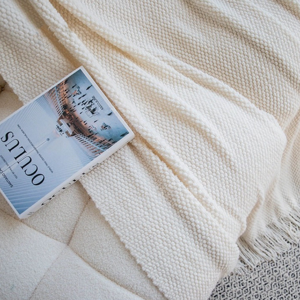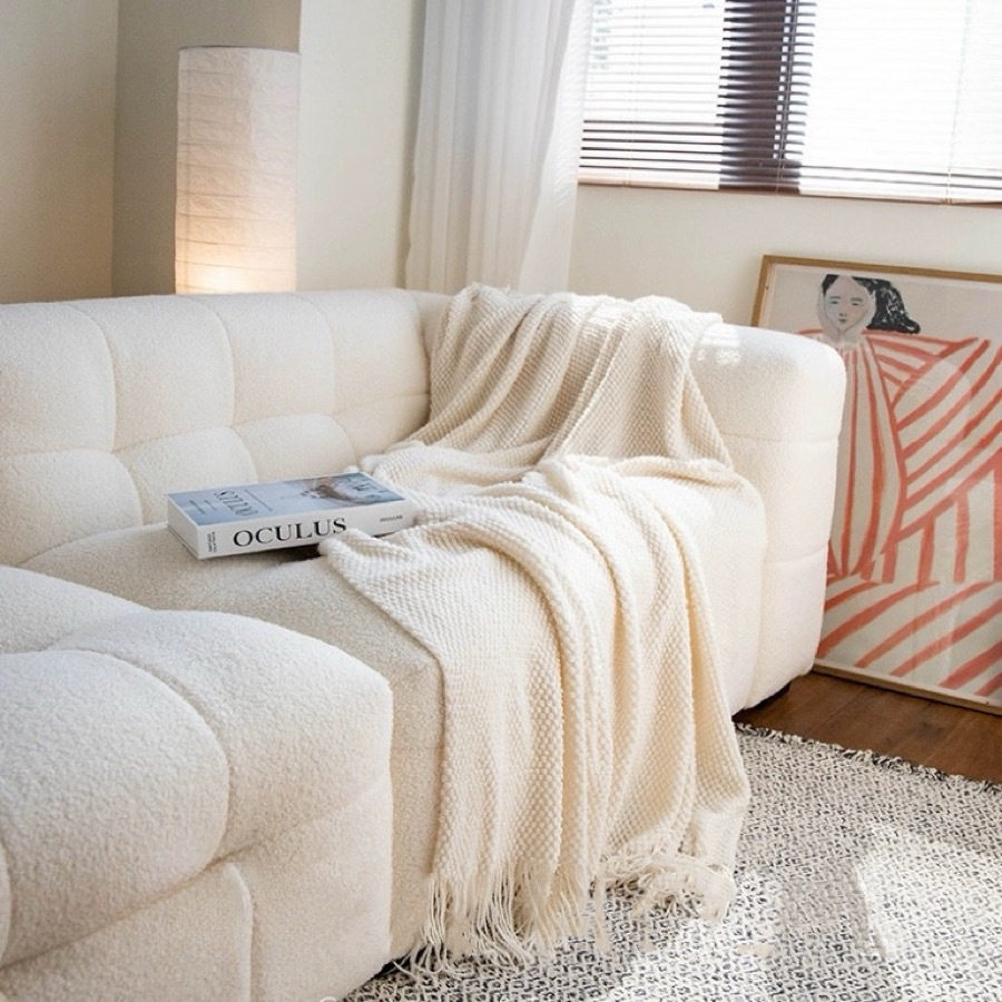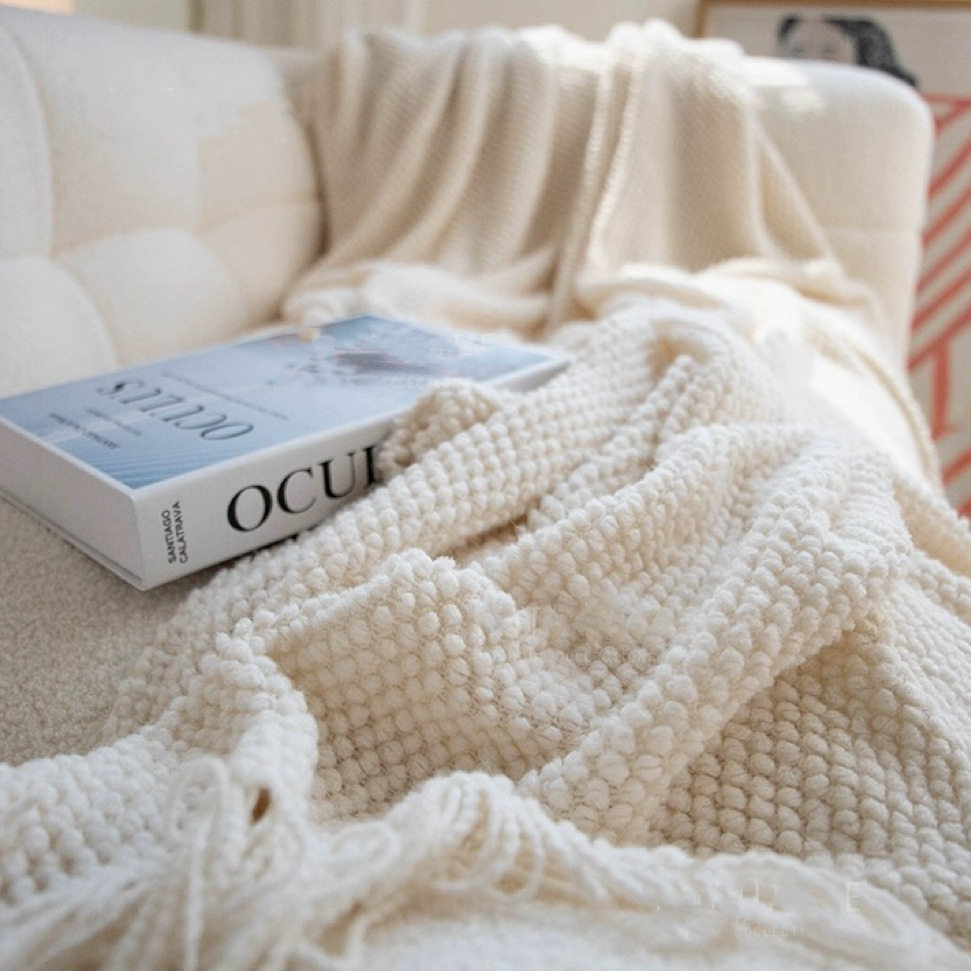 Nordic Simple Solid Color Tassel Knitted Blanket Nap Blanket Air-conditioning Blanket Bed End Towel Knitted Blanket Sofa Cover Blanket Blanket