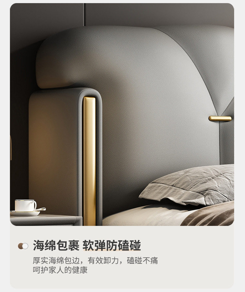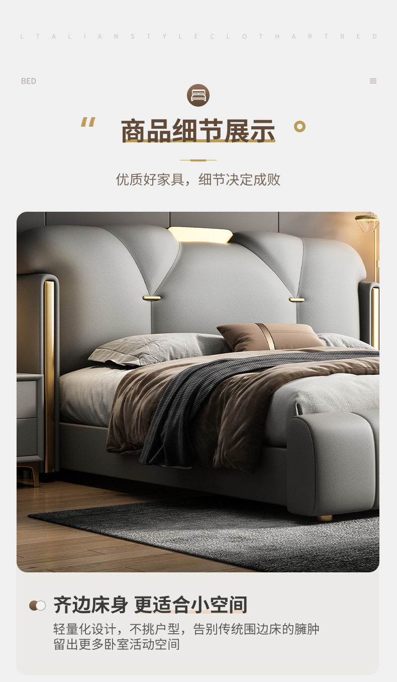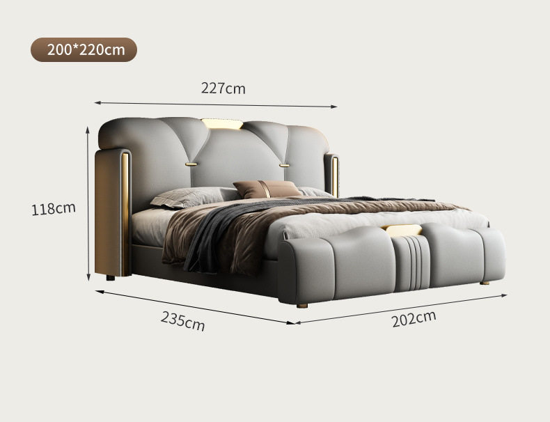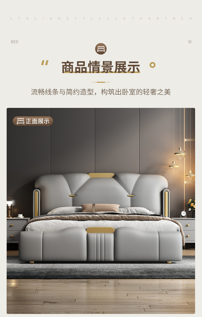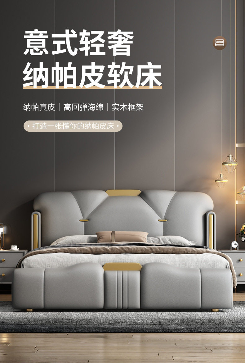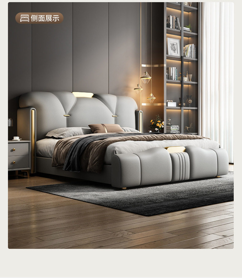 Italian-style Leather Bed Light Luxury Modern Simple Double Bed Master Bedroom Internet-famous Big Bed Multifunctional Storage Bed Soft Bag Wedding Bed