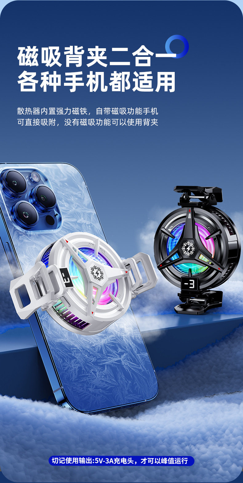 2025 new magnetic semiconductor mobile phone radiator TL07 icing digital display can turn off the lights cooling artifact