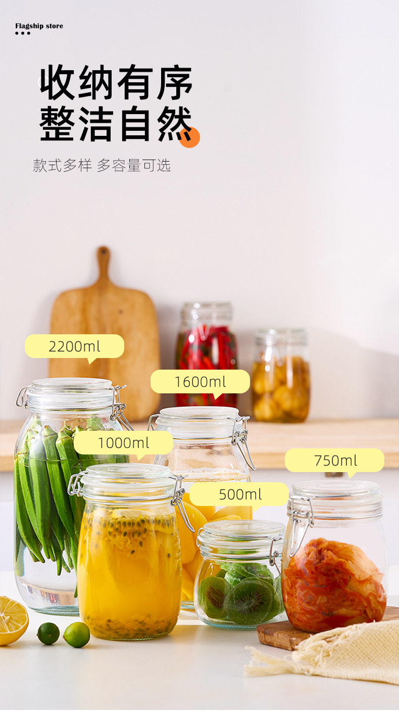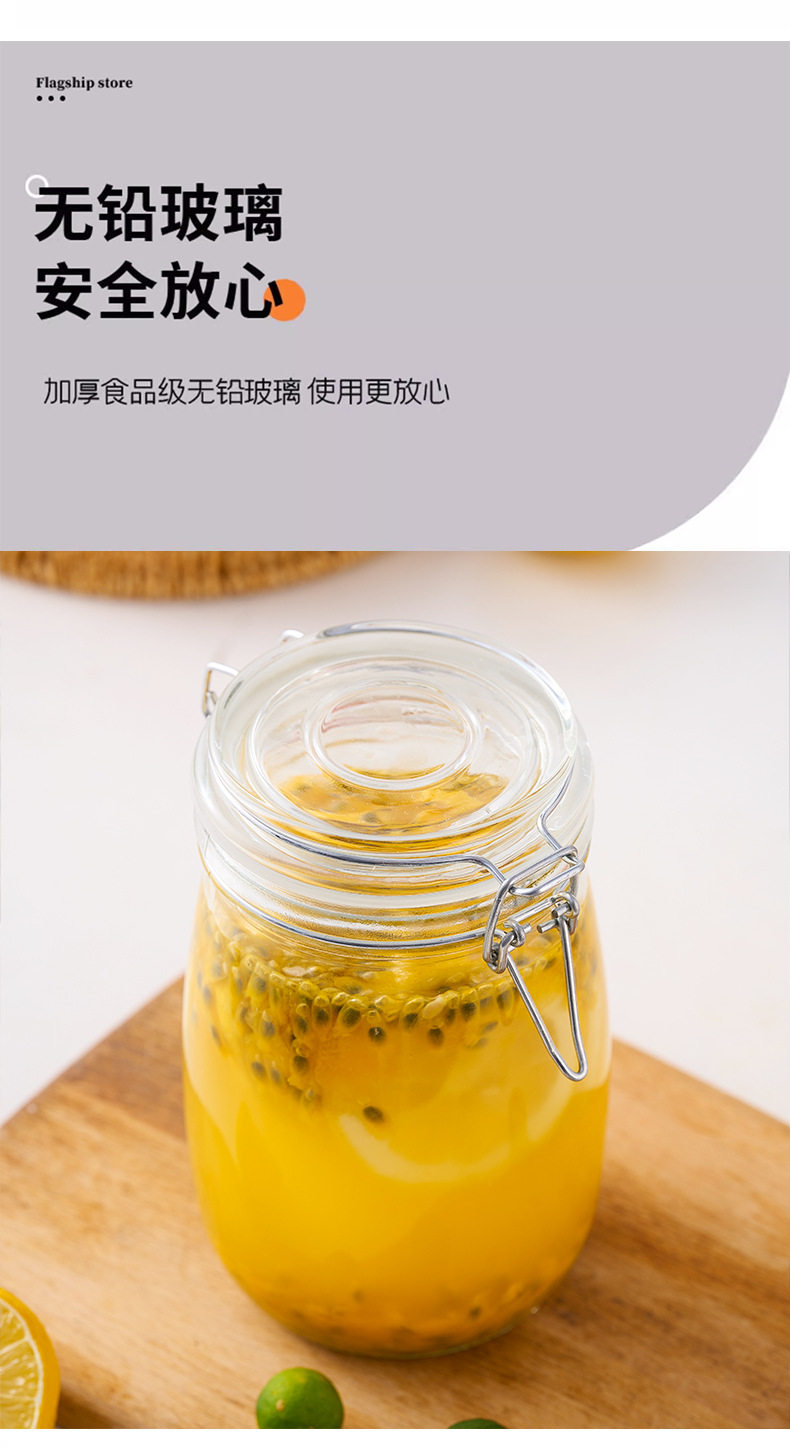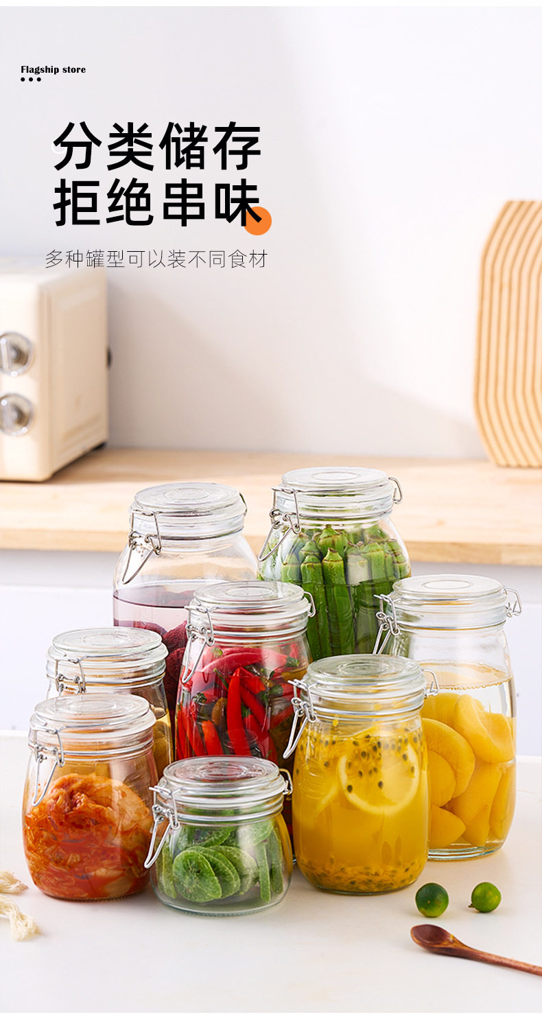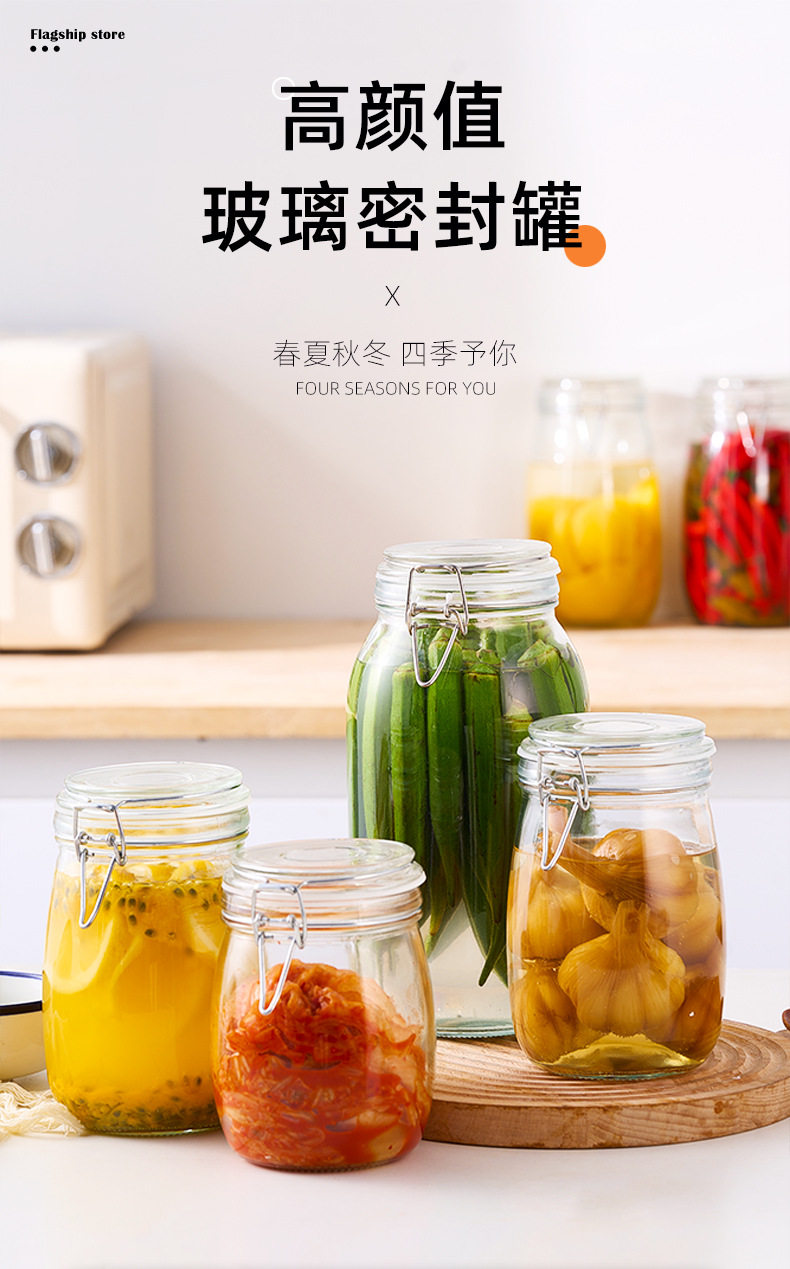 Transparent Glass Sealed Jar Food Grade Snap Lid Storage Jar Household Enzyme Jar Jam Jar Pickles Pickles Jar