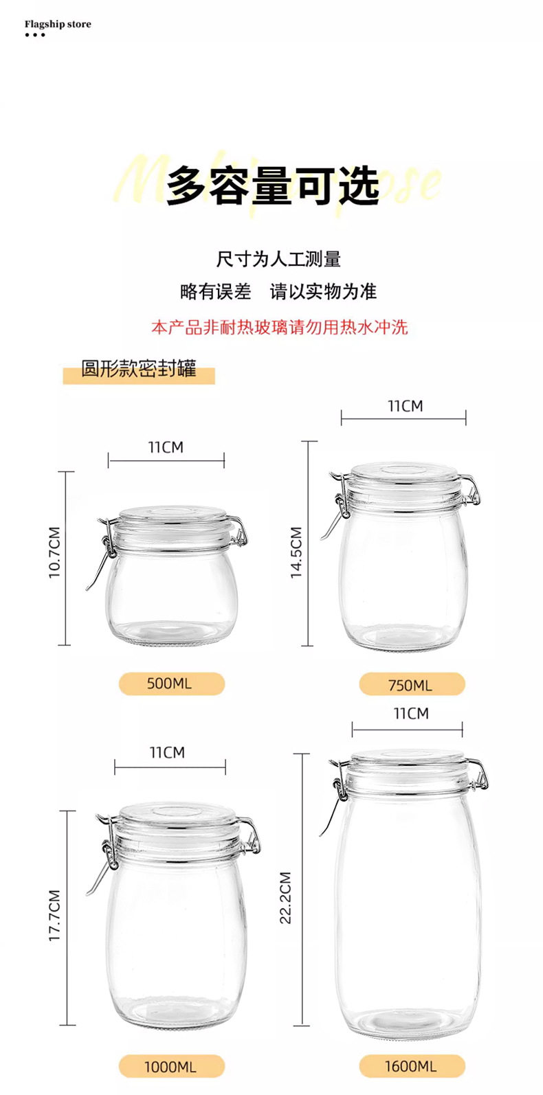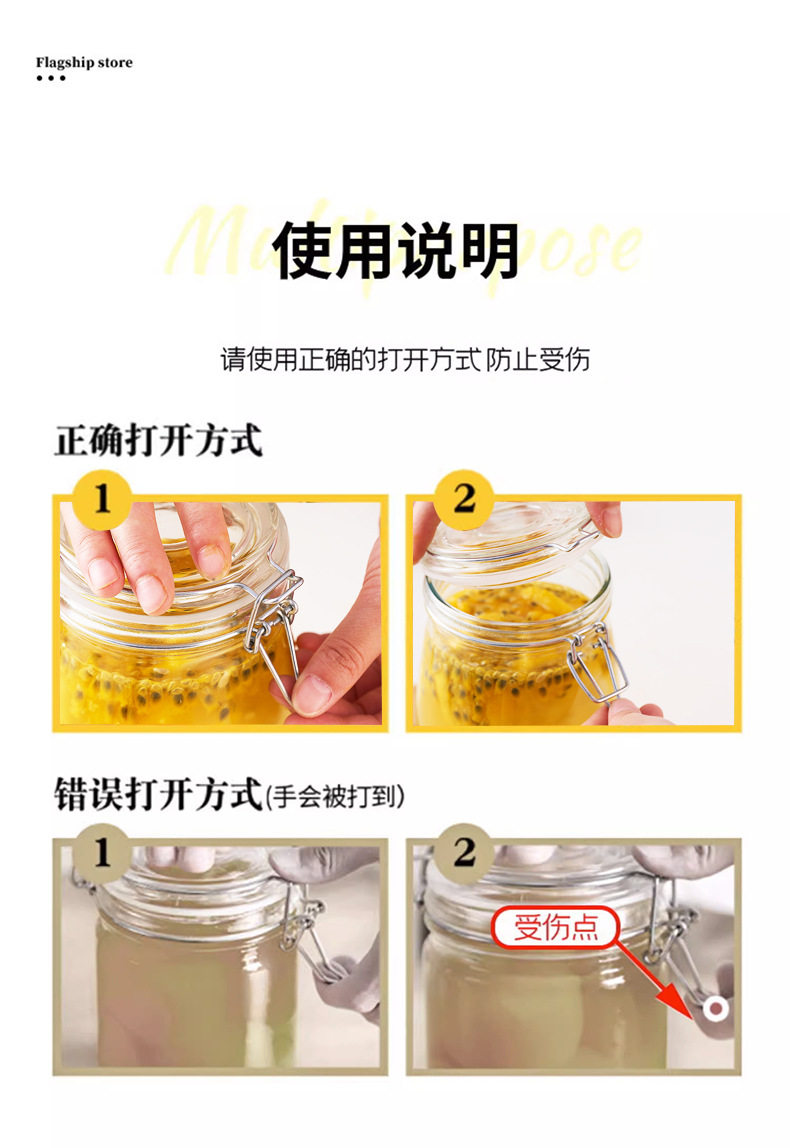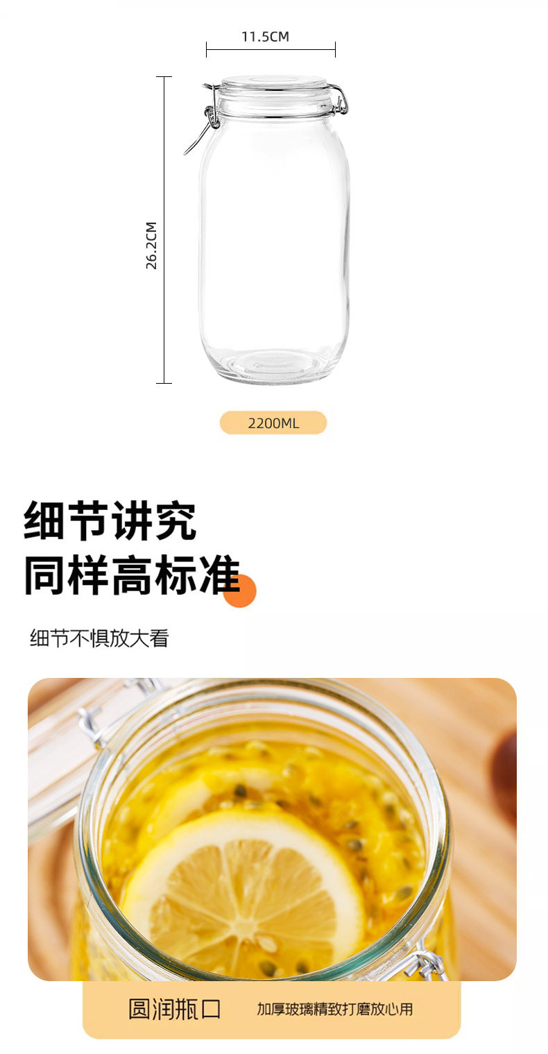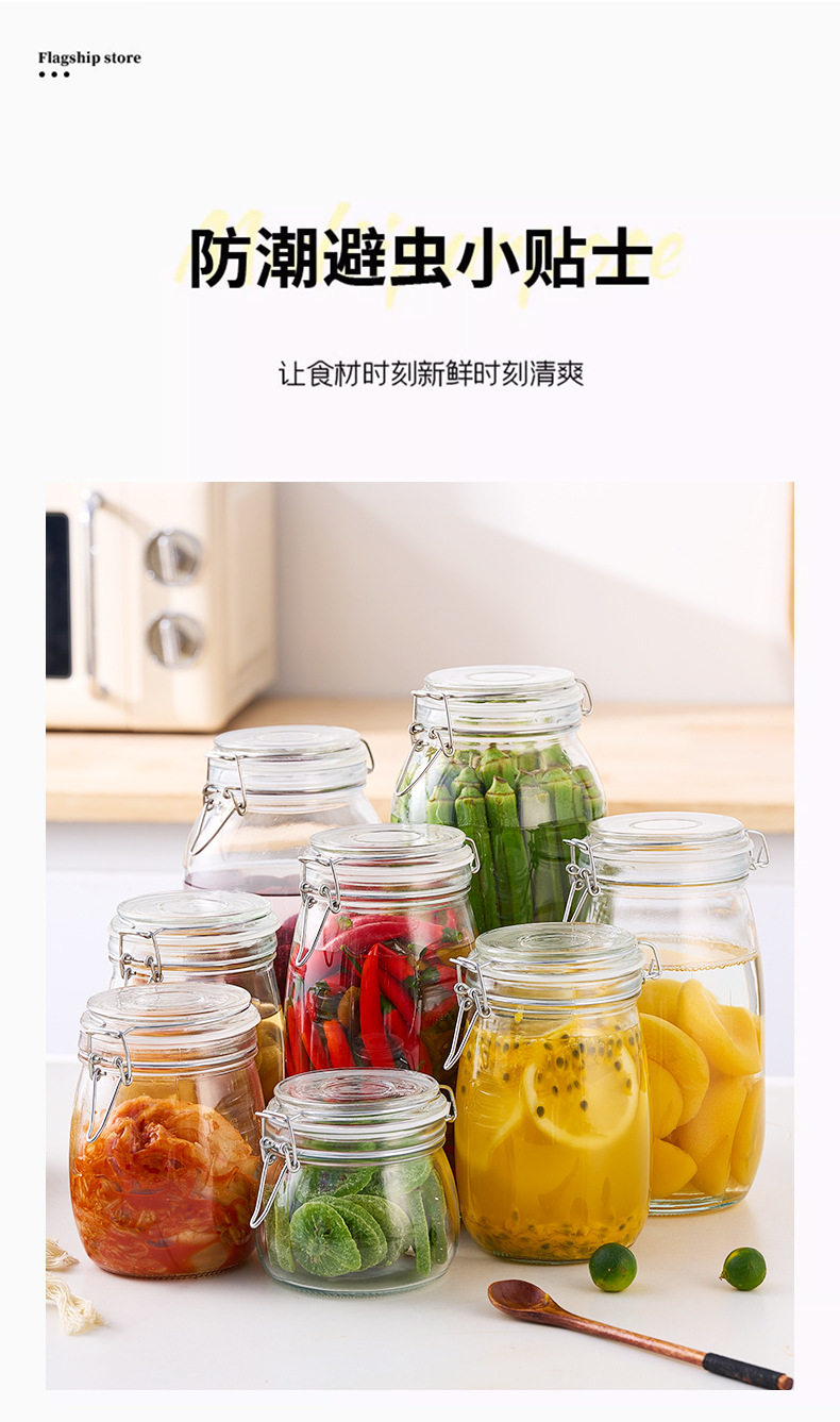 Transparent Glass Sealed Jar Food Grade Snap Lid Storage Jar Household Enzyme Jar Jam Jar Pickles Pickles Jar